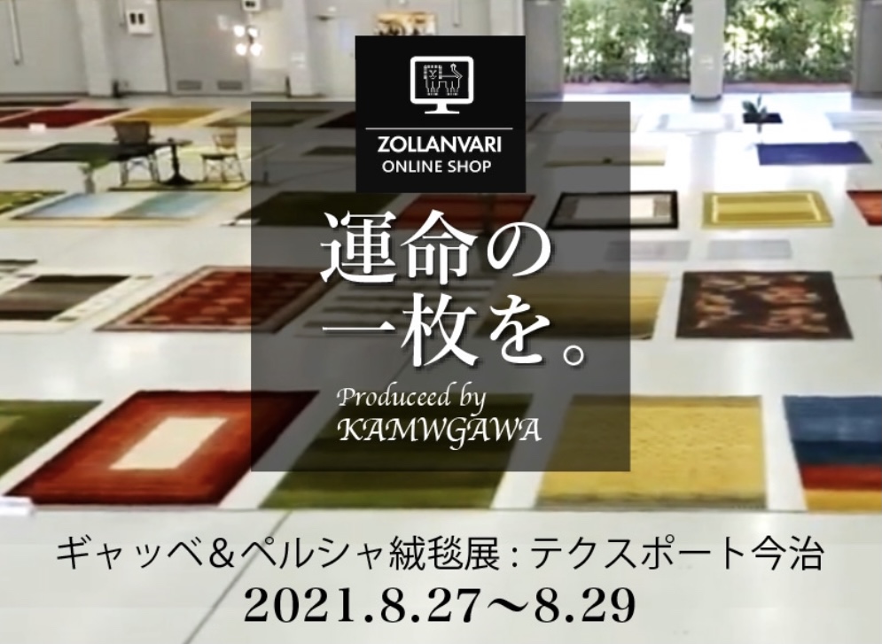 8月最終週は愛媛県今治市のテクスポート今治にてギャッベ&ペルシャじゅうたんの新作入荷フェアを開催いたします!