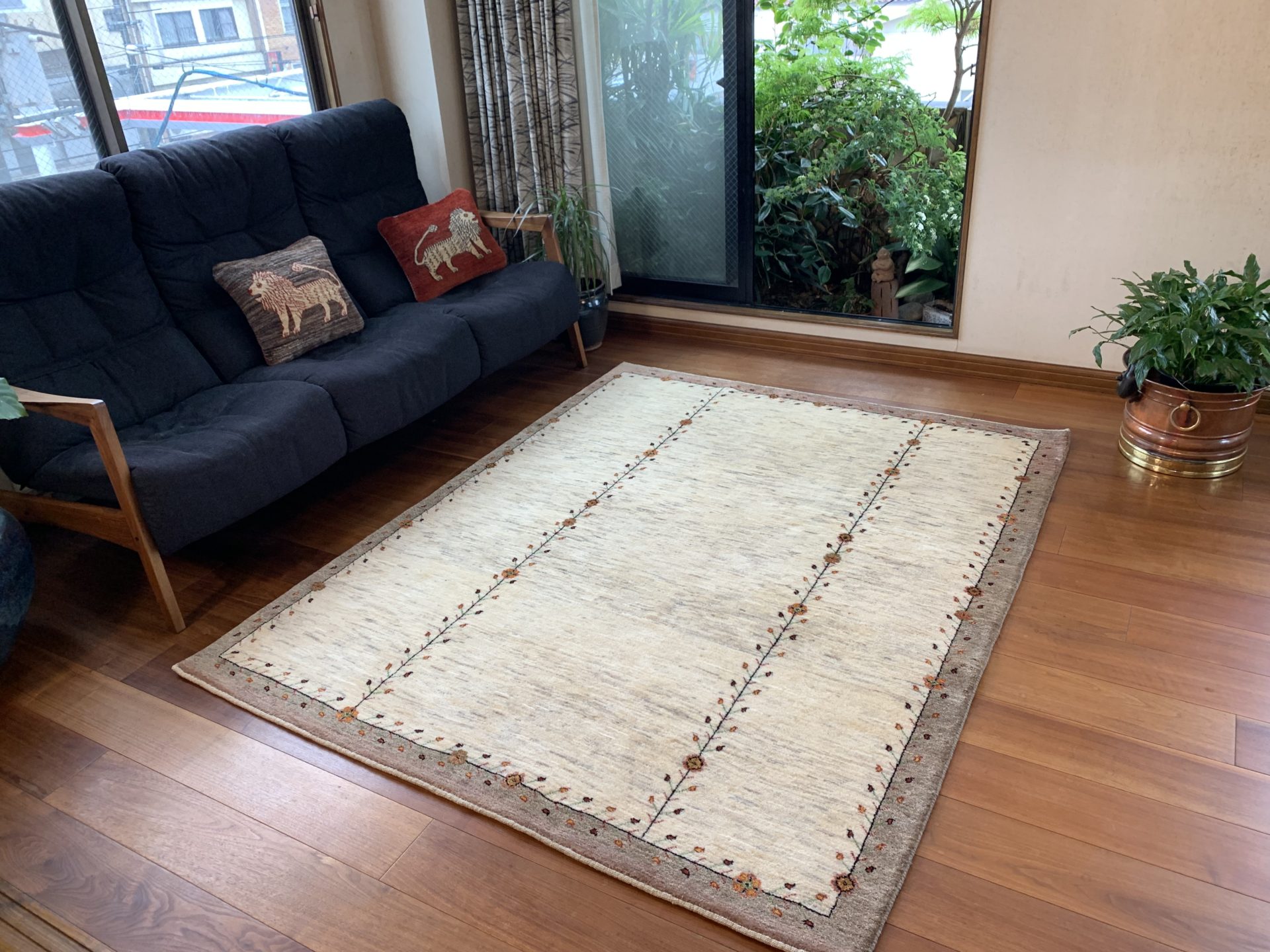 カシュクリ・ギャッベはアマレよりも細かな糸を使い、より緻密で滑らかな織りが特徴です。草木染めの色が美しく映え、模様の表現力も豊か。品質と軽やかさのバランスに優れ、使い心地と見た目の両方にこだわりたい方に最適な「カシュクリ ギャッベ」です。