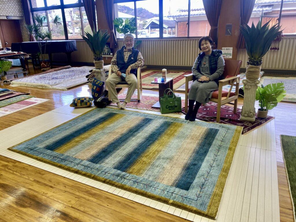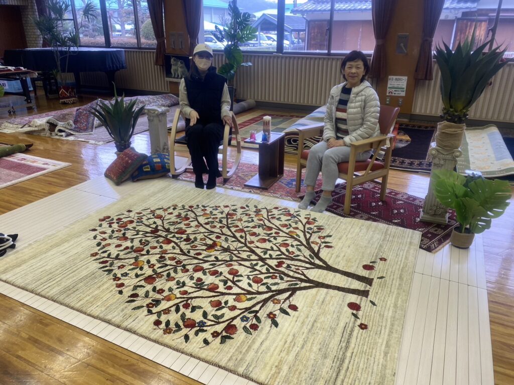 ↑今治開催時から毎回お買い上げいただいている常連様ですが、このたびは2×3mの孔雀柄のルリパブキャッベをリビングに迎えていただきました。