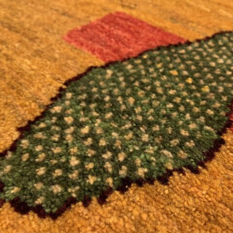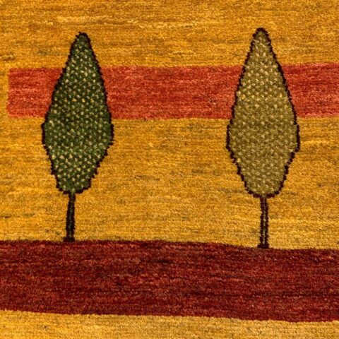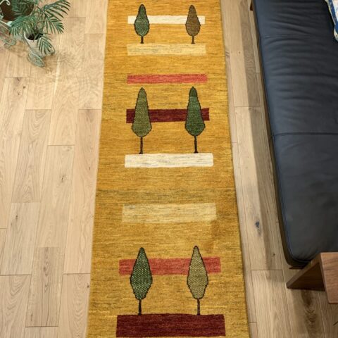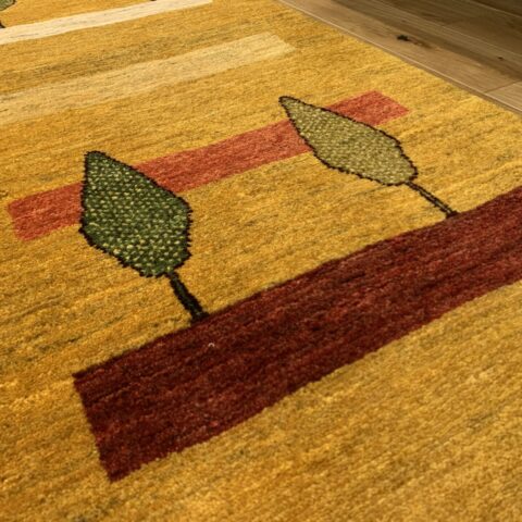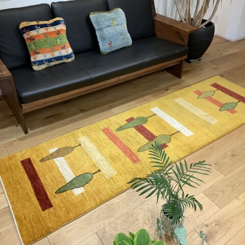 元気の出る黄色ベースに、【健康・長寿】を象徴する糸杉がペアで仲良く並んでいます。ゾランヴァリ・ギャッベは天然草木染めなので、黄色は「ザクロの皮」「ウコン」などを使って染色されているんですよ♪黄色は、比較的珍しく枚数が少ないため人気のカラーとなっています。