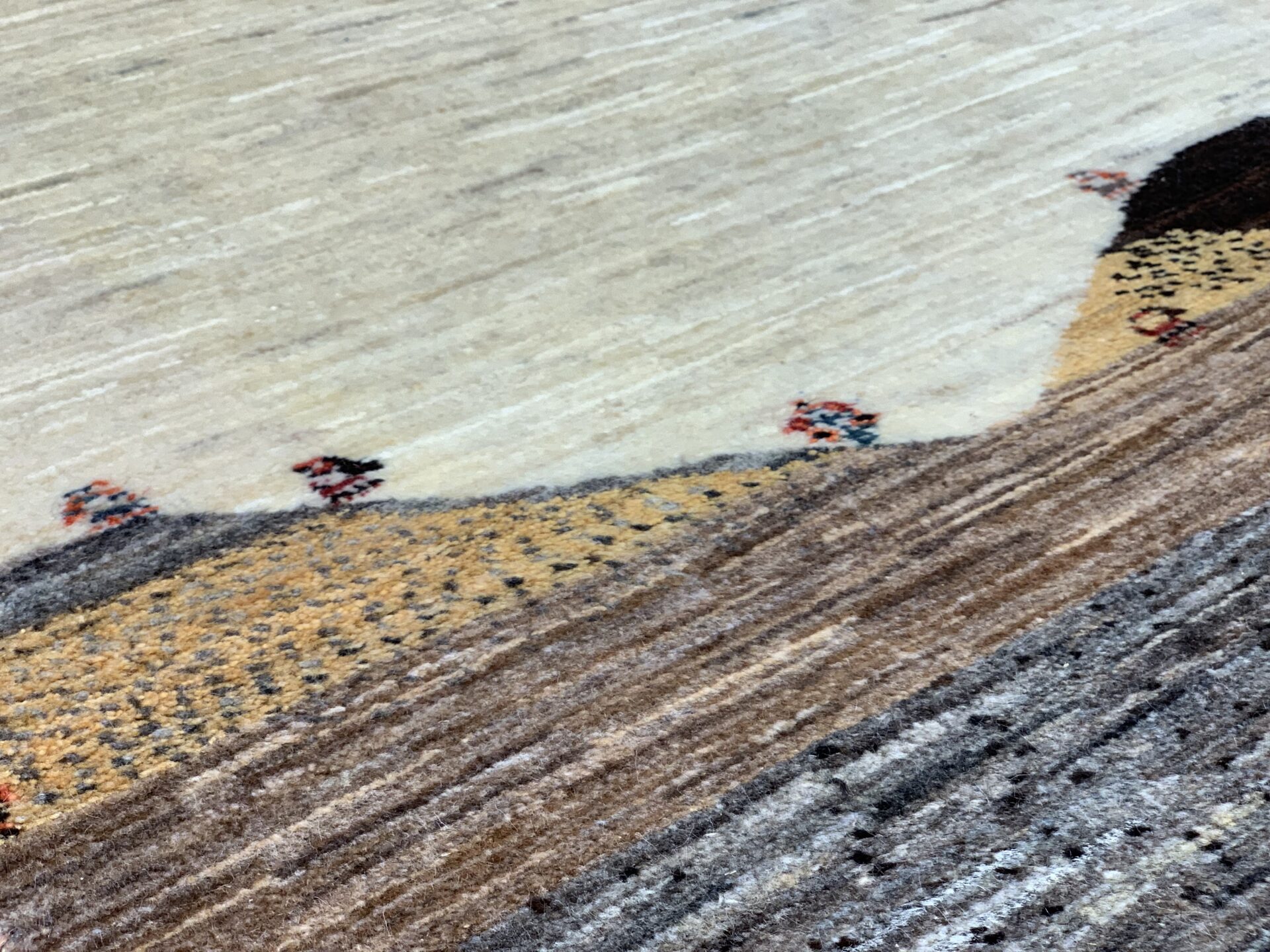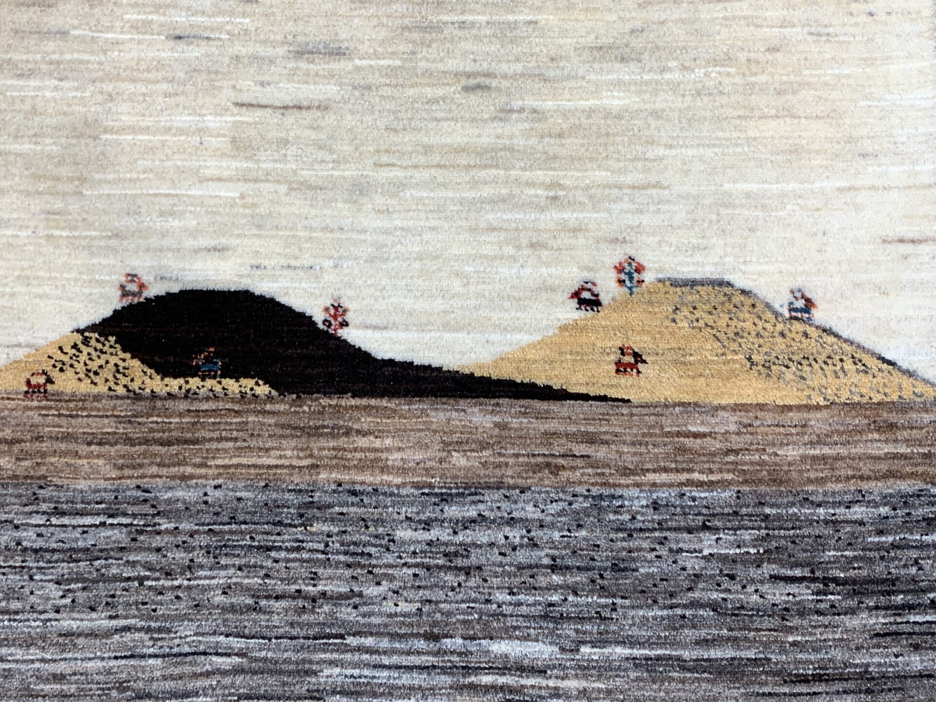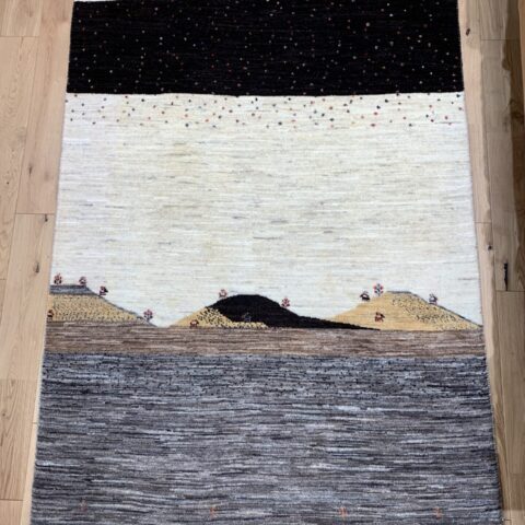 ナチュラルカラーの原風景ギャッベ。イラン・シラーズのザクロス山脈に住む遊牧民の生活をお家に敷いてみませんか?大地のにおい、風の音、めぇ~と響き渡る羊とヤギの鳴き声が今にも聞こえてくるような、物語を感じる癒しの絨毯です。