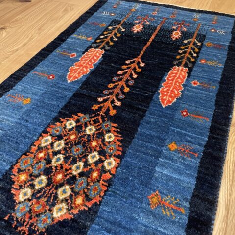 鮮やかなブルーとくっきりとしたオレンジのコントラストが目を引く一枚です。イランの厳しい自然環境の中で、幾多の試練を乗り越えて天に向かって大きく背を伸ばす豊かな樹木には、強い生命力があり、神霊が宿るといわれています。カシュクリならではの目の細かさが織りなす大木はきっとご家庭のお守りとなってくれますよ。