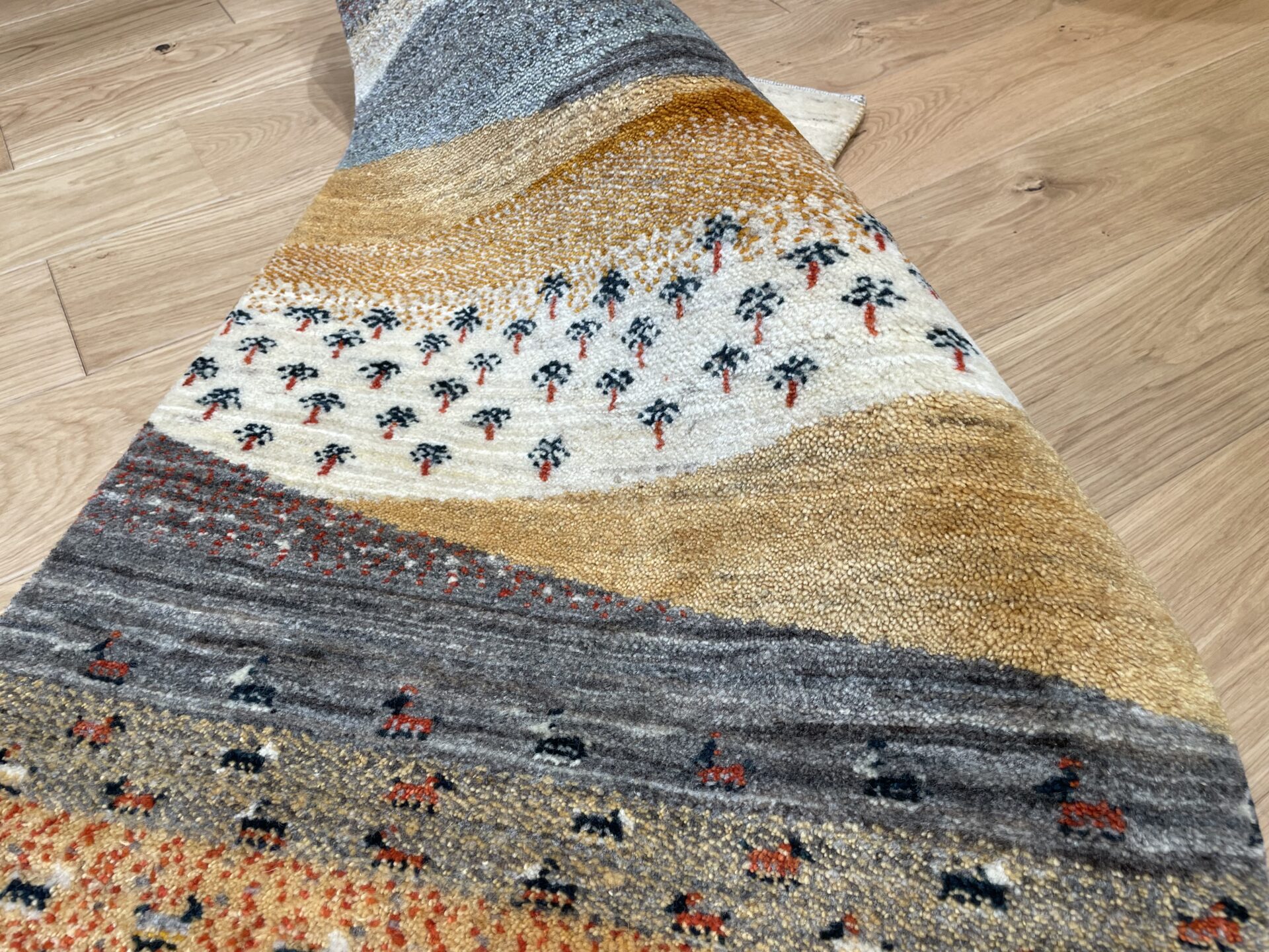 ゾランヴァリ・ギャッベの通販も亀川にお任せください。毛足の長さや織り密度など目に見えないところも我々自身が実際に触って品質を確かめ、本当にお客様にご紹介したいものだけ厳選しています。オンラインでの接客にも対応していますので、お気軽にお問い合わせください。