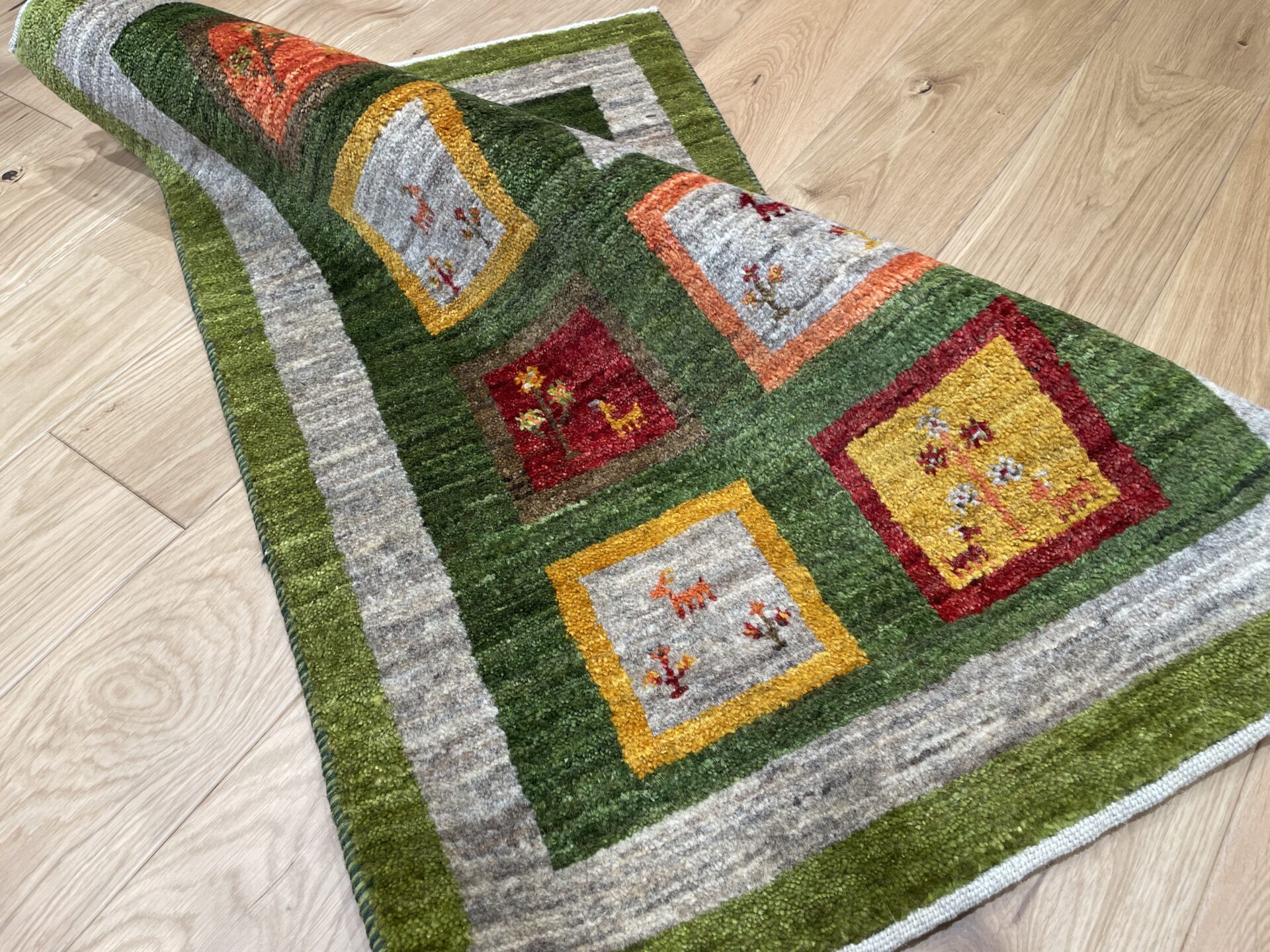 ゾランヴァリ・ギャッベの通販も亀川にお任せください。毛足の長さや織り密度など目に見えないところも我々自身が実際に触って品質を確かめ、本当にお客様にご紹介したいものだけ厳選しています。オンラインでの接客にも対応していますので、お気軽にお問い合わせください。