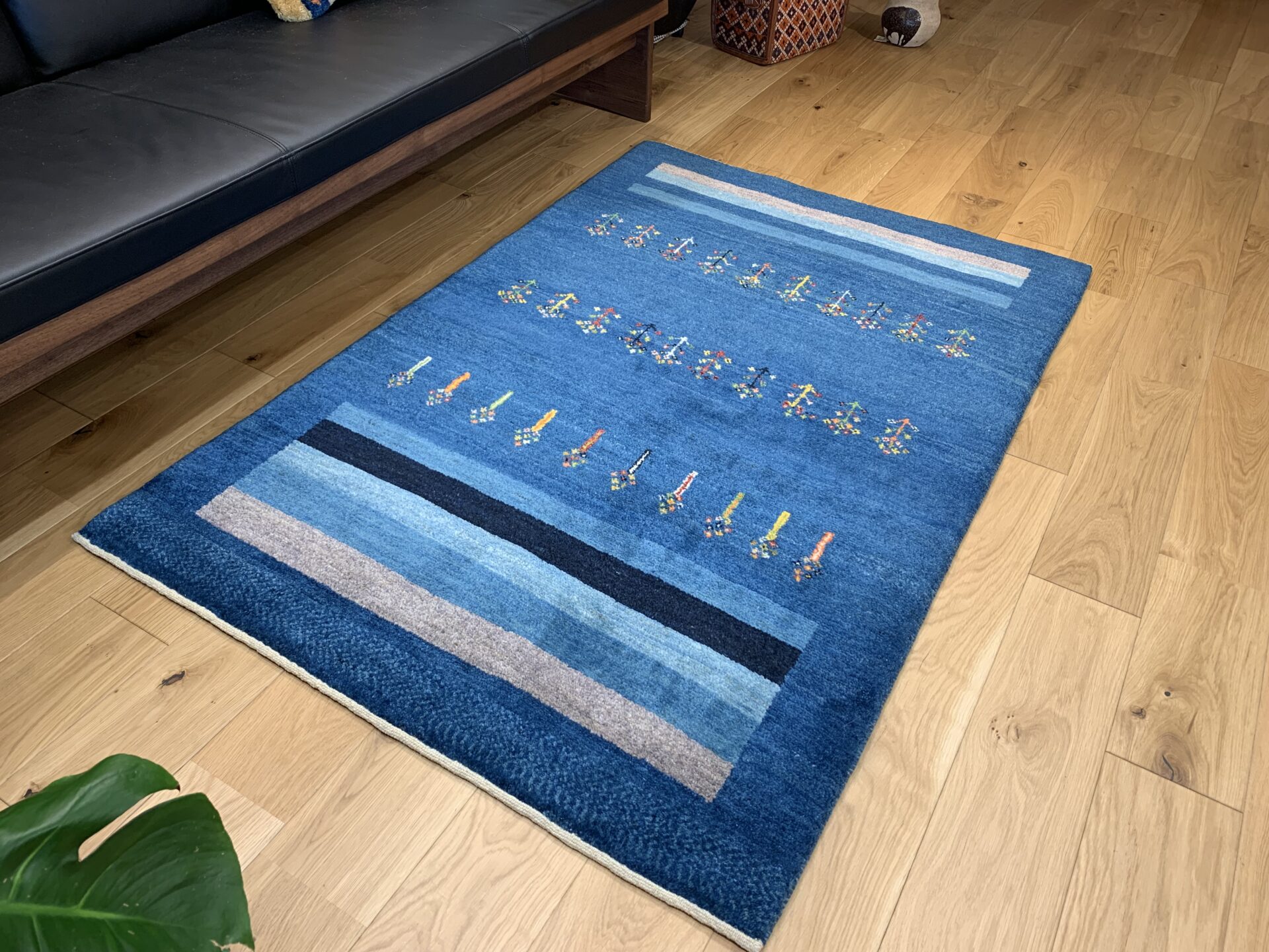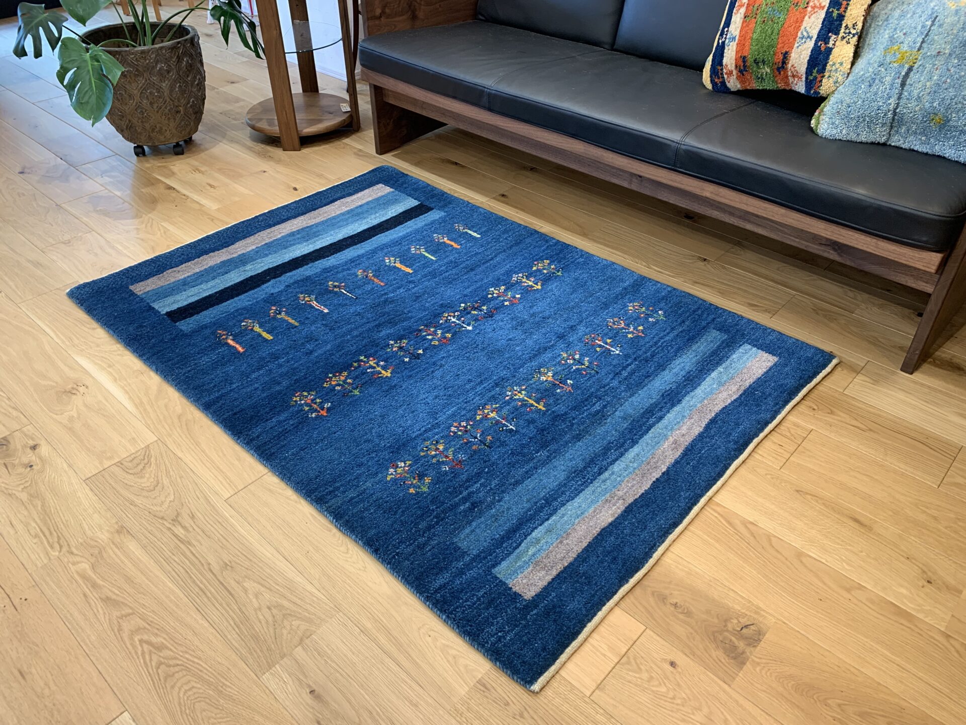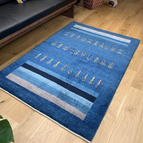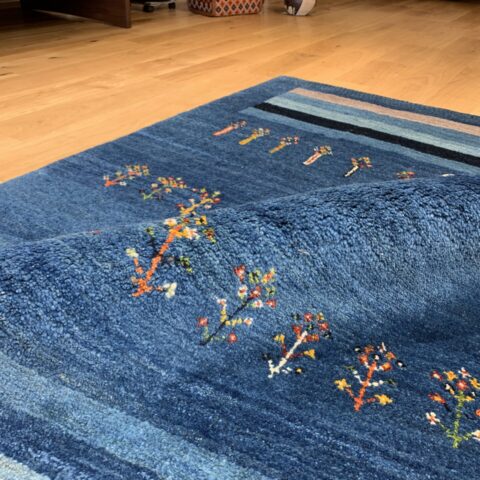 藍染めの濃淡が美しいグラデーションを描く一枚です。中央には春への憧れを象徴する花が散りばめられ、生命の息吹が感じられるデザインです。藍の深い色合いと光沢が、空間に落ち着きと品格をもたらします。さらに、長い毛足が生み出す柔らかなクッション感が、足元に贅沢な心地よさを提供します。このギャッベの上で過ごす時間は、日常の疲れを忘れさせる至福のひとときとなるでしょう。