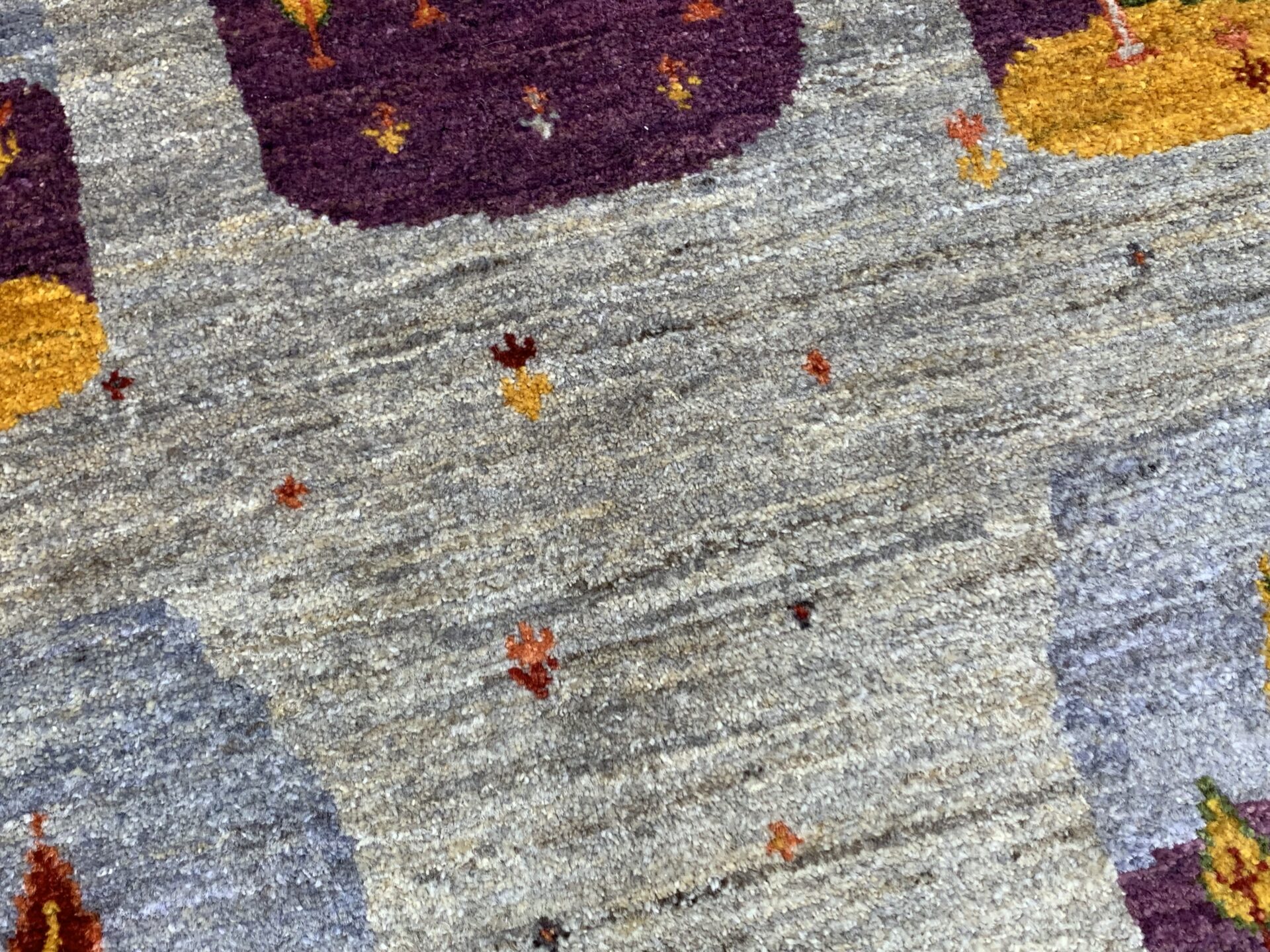 アマレ・ギャッベはゾランヴァリ社の代表的なシリーズで、しっかりとした打ち込みとコシの強い織りが特徴です。素朴で温かみのあるデザインが多く、日常使いしやすい耐久性の高さも人気の理由です。