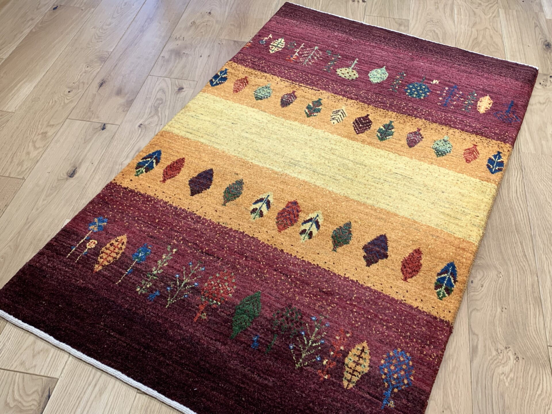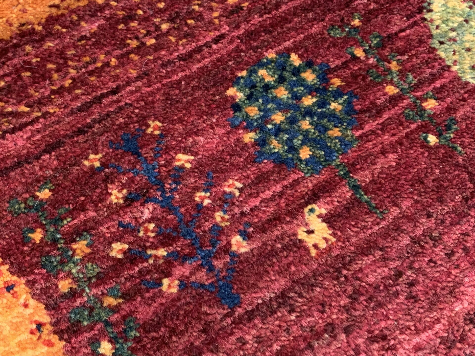 細めの糸を使用したカシュクリ・ギャッベのため、繊細な描写がなされています。