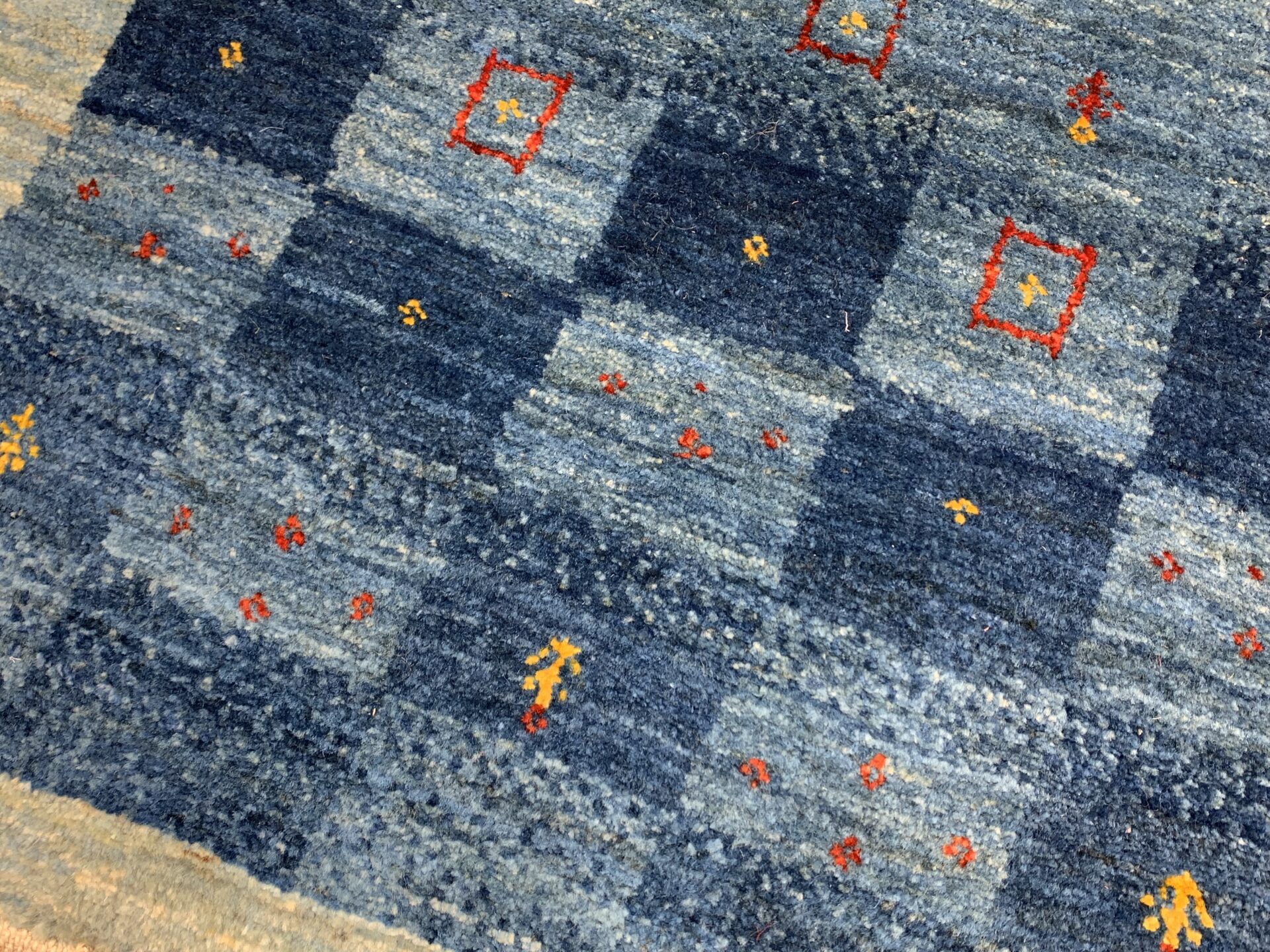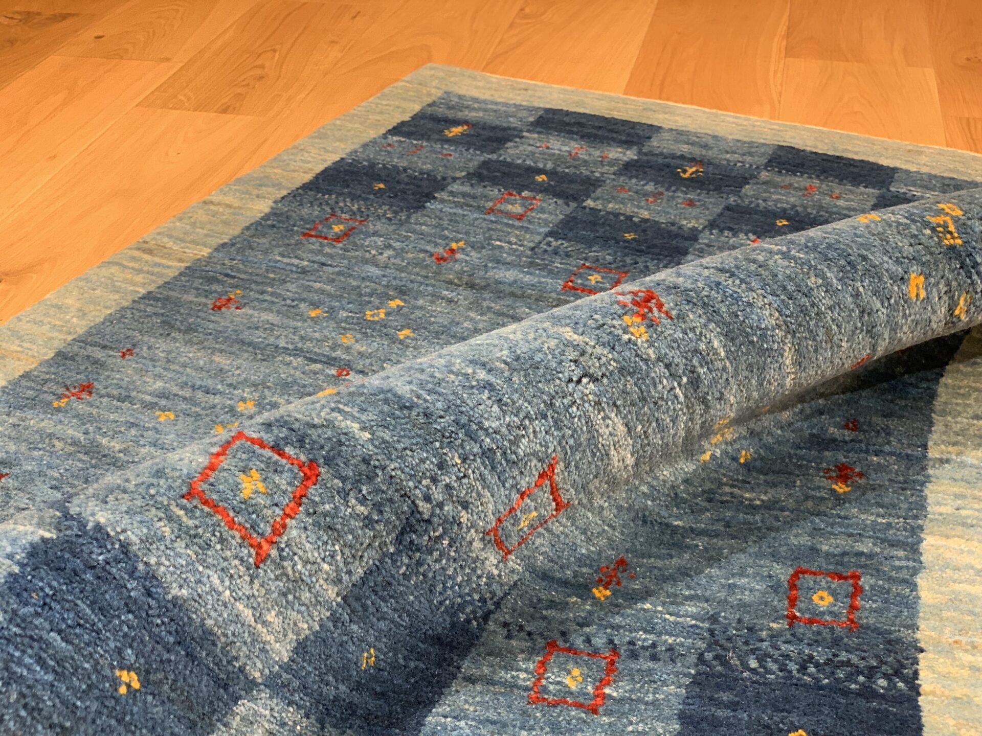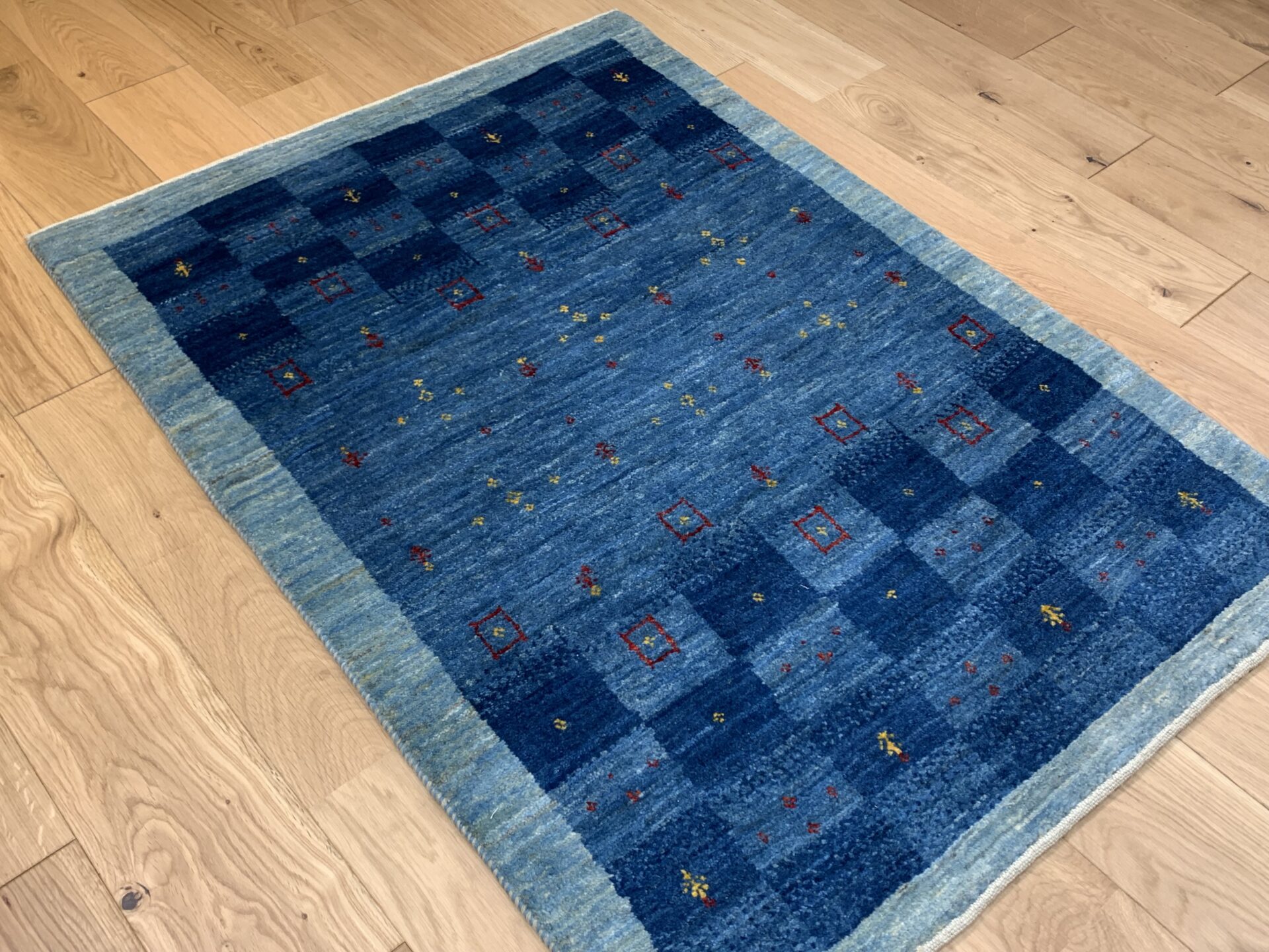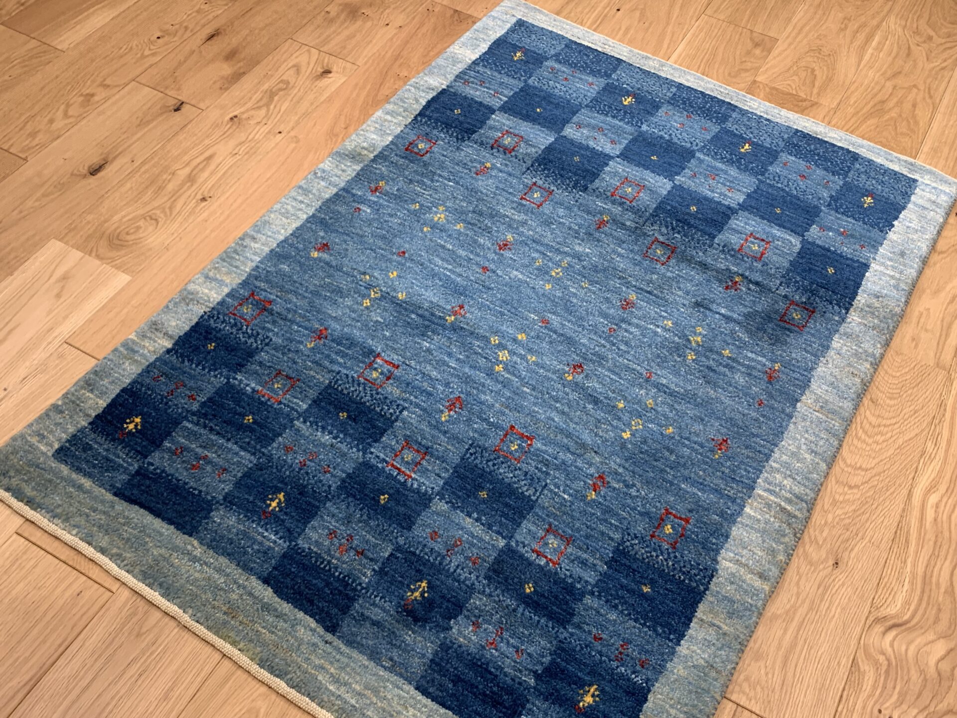 どことなく日本の藍染を思わせるような、和室にも合いそうなギャッベです。