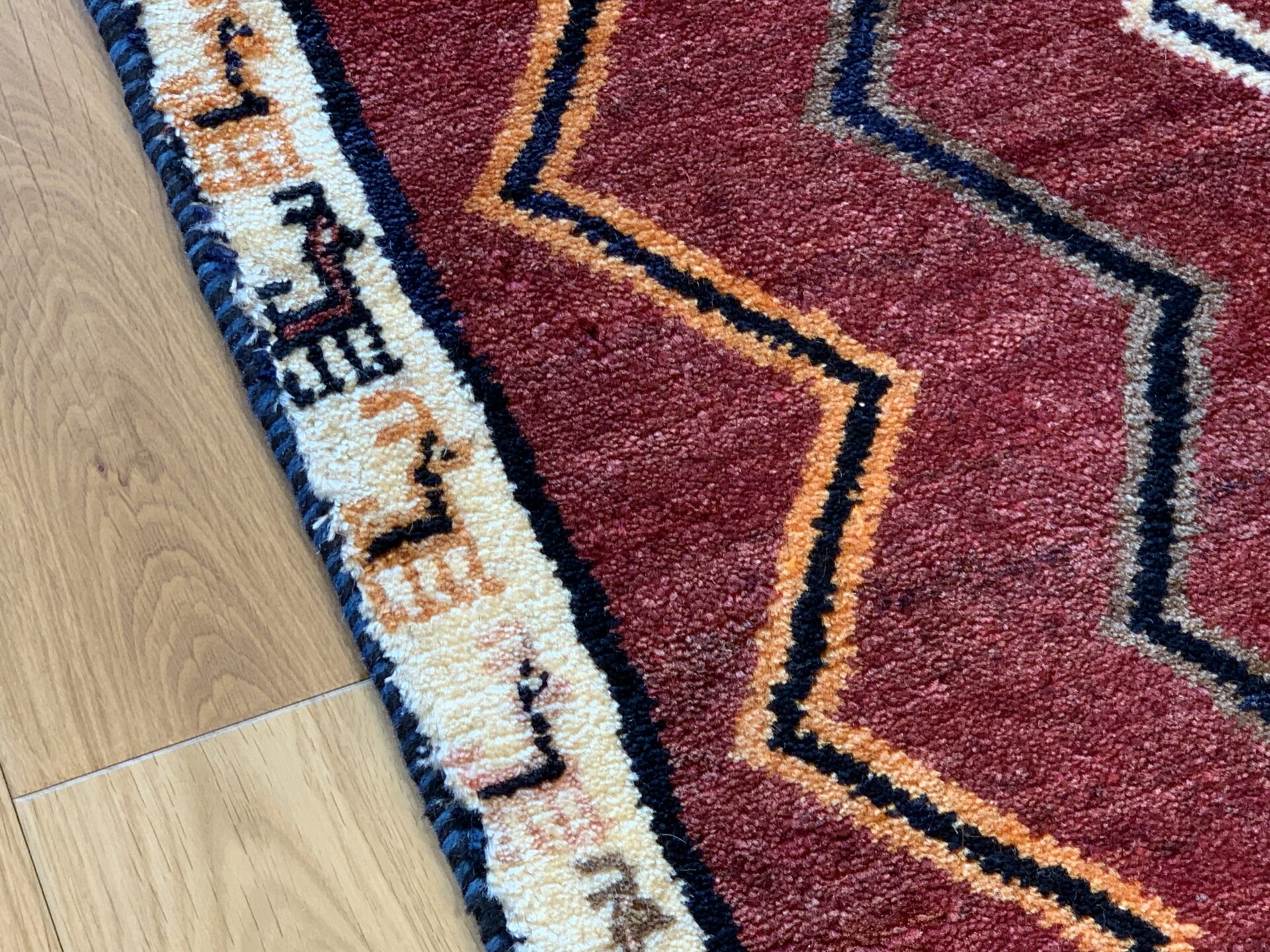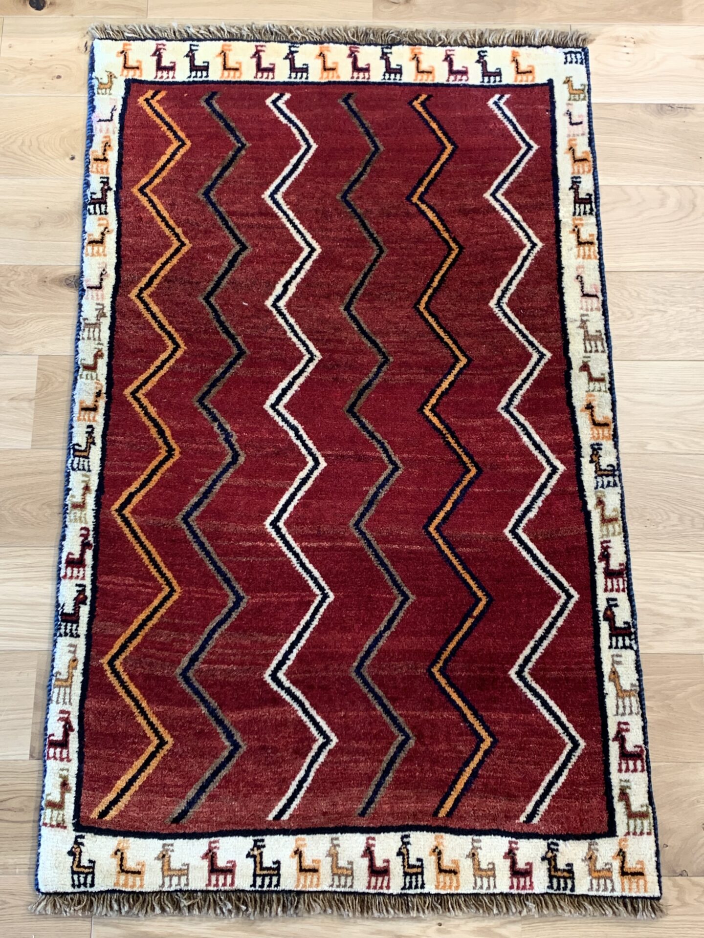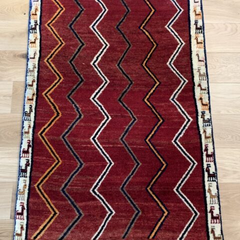 鮮やかな色彩とダイナミックなジグザグ模様が印象的なオールドギャッベ。遊牧民の感性が宿るこの一枚は、見る人の心を惹きつけます。模様には水の流れや魔除けを意味する深いストーリーが込められており、実用性と芸術性が見事に調和しています。お部屋に敷くと、鮮やかなアクセントとして空間に活気と温もりをプラスします。ぜひこの特別なギャッベで、日常に彩りを添えてみませんか?