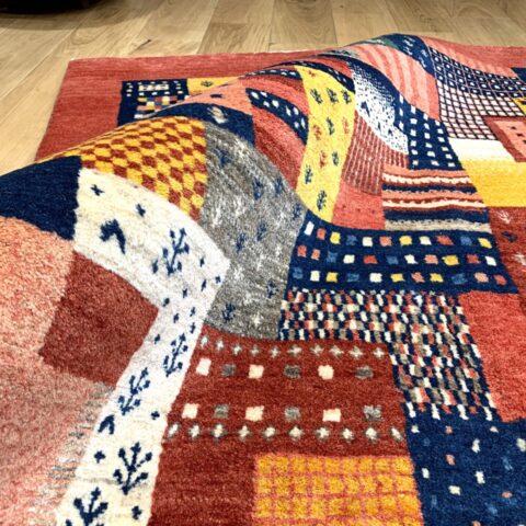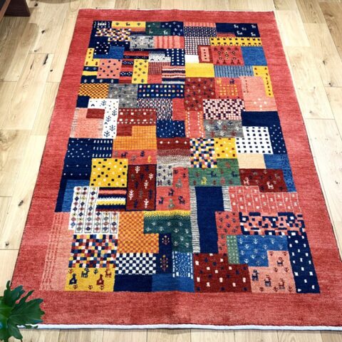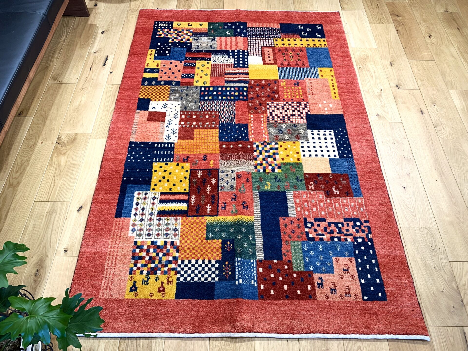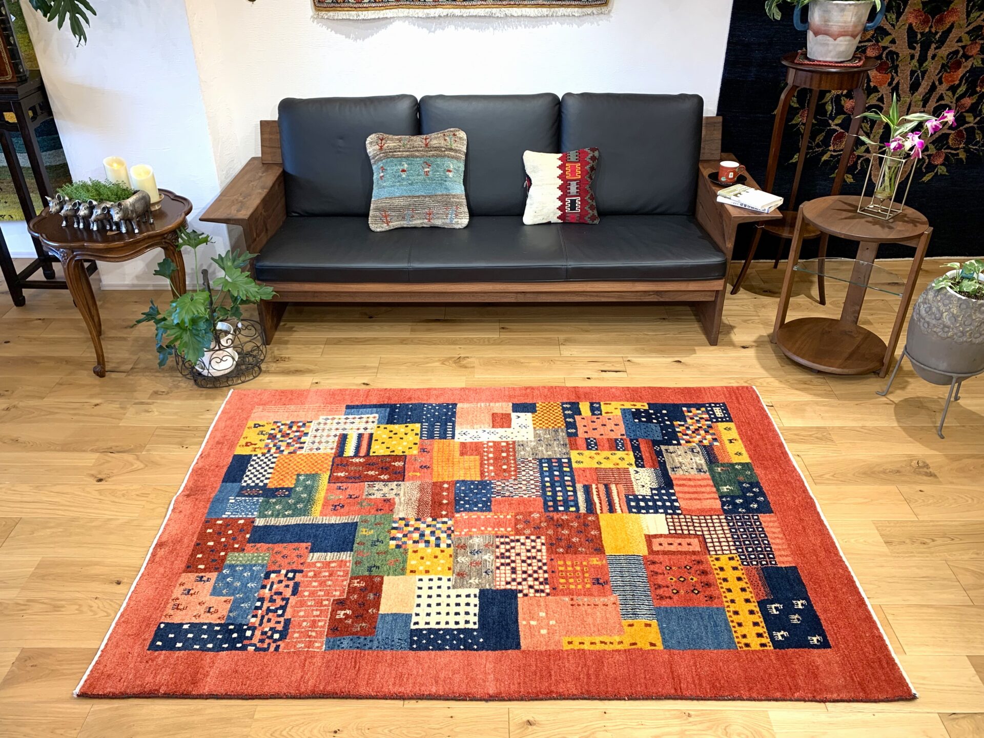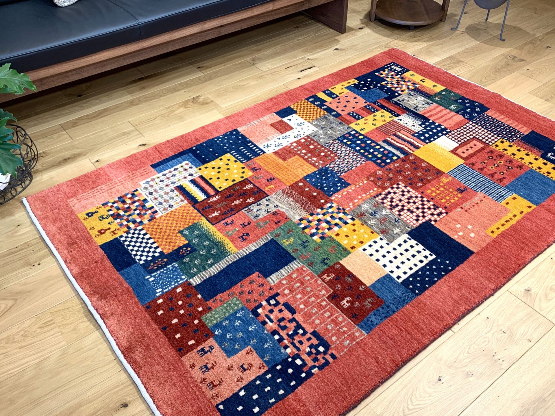 【パッチワークデザインのギャッベ – 縁起の良い文様が詰まった一枚】ギャッベらしいカラフルなパッチワークデザインが魅力の一枚。それぞれの模様には深い意味が込められています。羊は財産、生命の樹は健康と長寿、そして四角のモチーフは井戸を表し、「大切なもの」を意味します。遊牧民の願いと暮らしが織り込まれた、見ているだけでも楽しいギャッベ。お部屋に敷けば、空間が明るく華やかに。縁起の良いアートラグを、ぜひお迎えください。