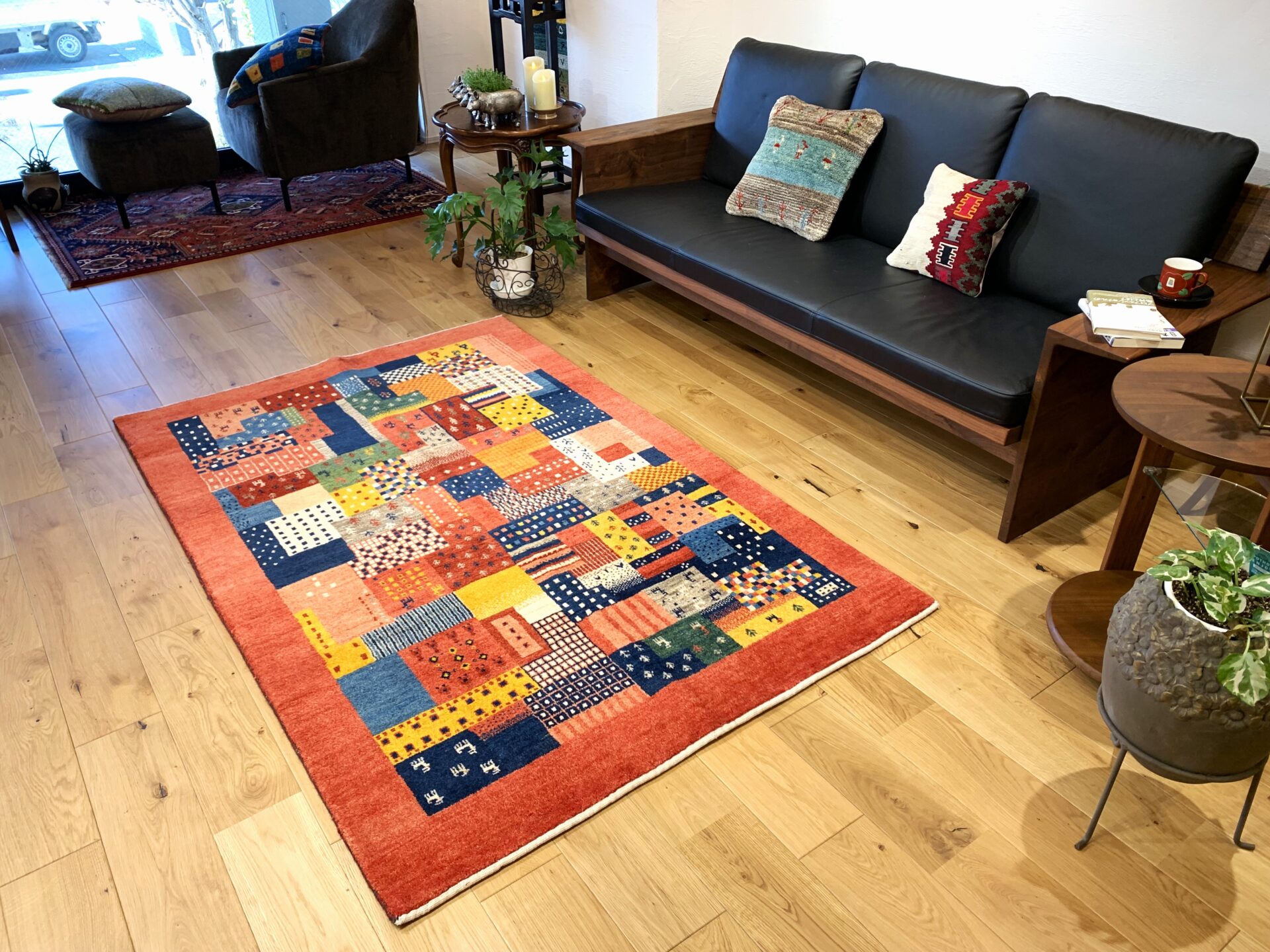 ギャッベにはしっかりした織りの「アマレ」、軽やかで繊細な「カシュクリ」、最高峰の緻密さを誇る「ルリバフ」のシリーズがあります。カシュクリ・ギャッベはアマレよりも細かな糸を使い、より緻密で滑らかな織りが特徴です。草木染めの色が美しく映え、模様の表現力も豊か。品質と軽やかさのバランスに優れ、使い心地と見た目の両方にこだわりたい方に最適な「カシュクリ ギャッベ」です。