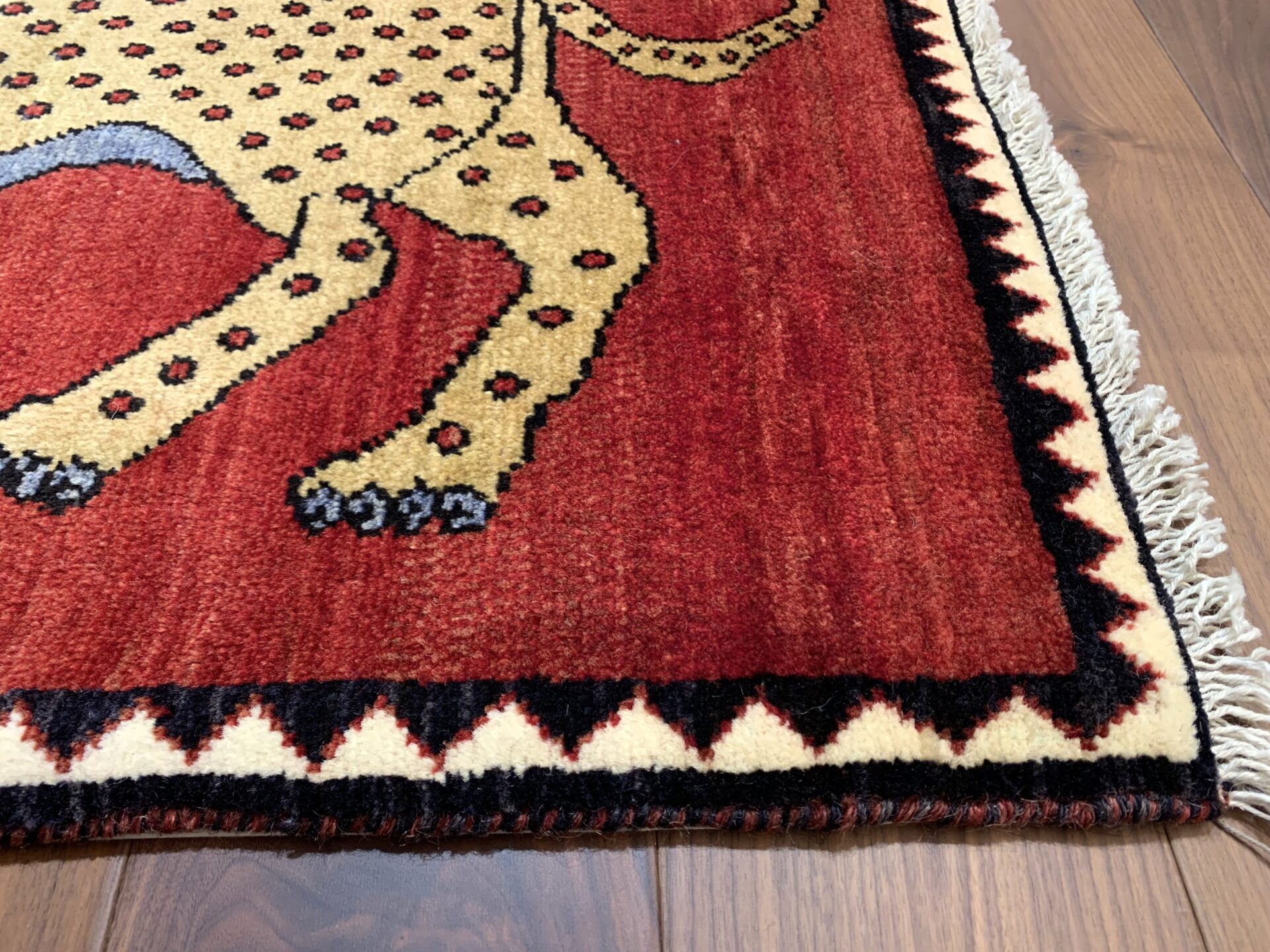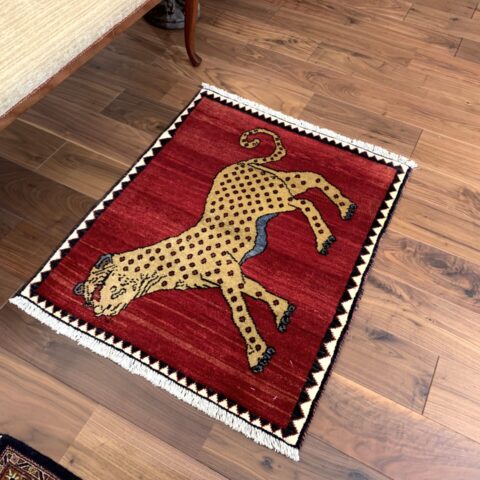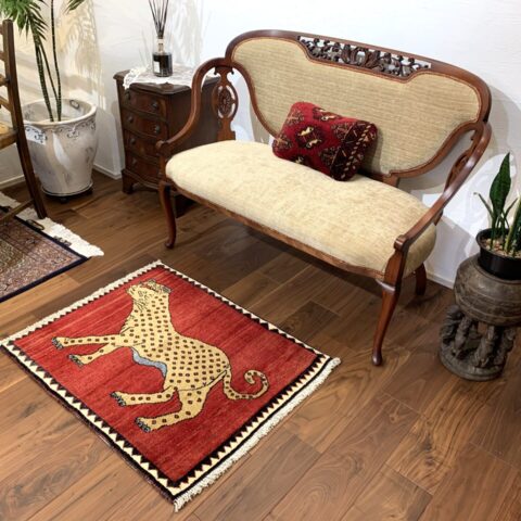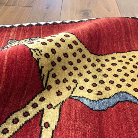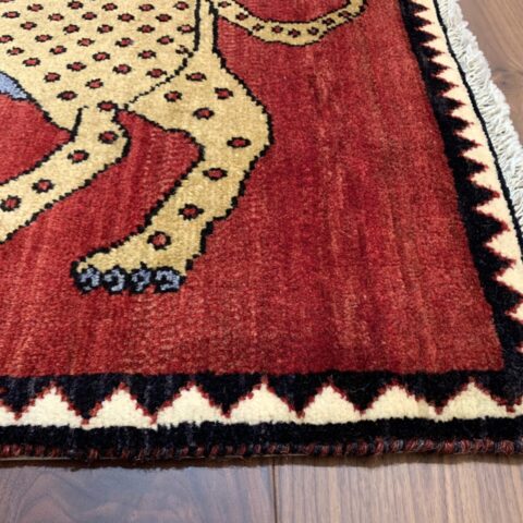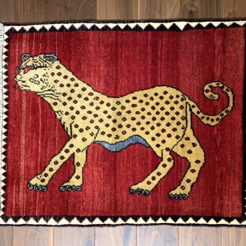 力強いライオンが描かれた、伝統的なシンボルが詰まった一枚。ライオンは古来より**「王者の象徴」「勇気」「守護」**の意味を持ち、ギャッベのデザインとしても非常に人気があります。
