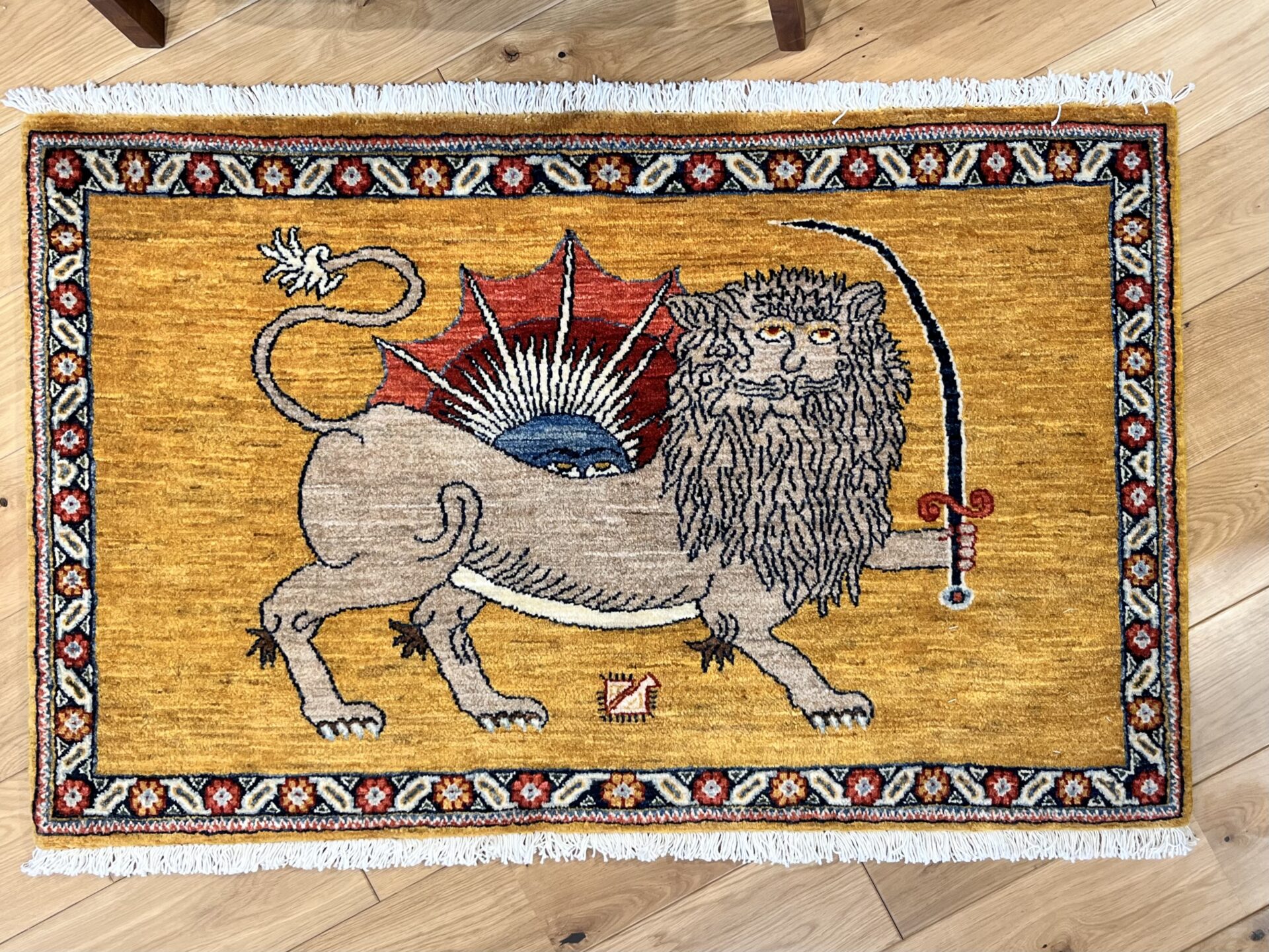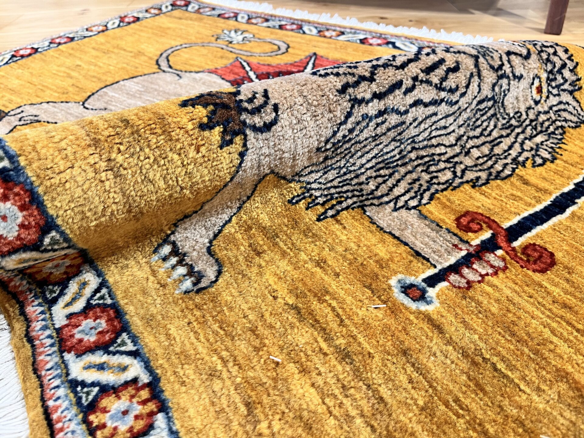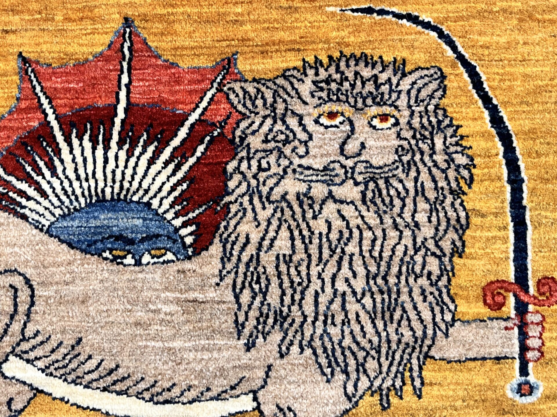 剣を携えたライオンと太陽のモチーフは、かつてイランの国旗にも使われていた由緒あるデザイン。