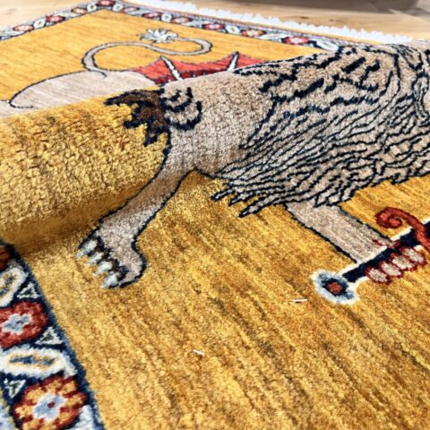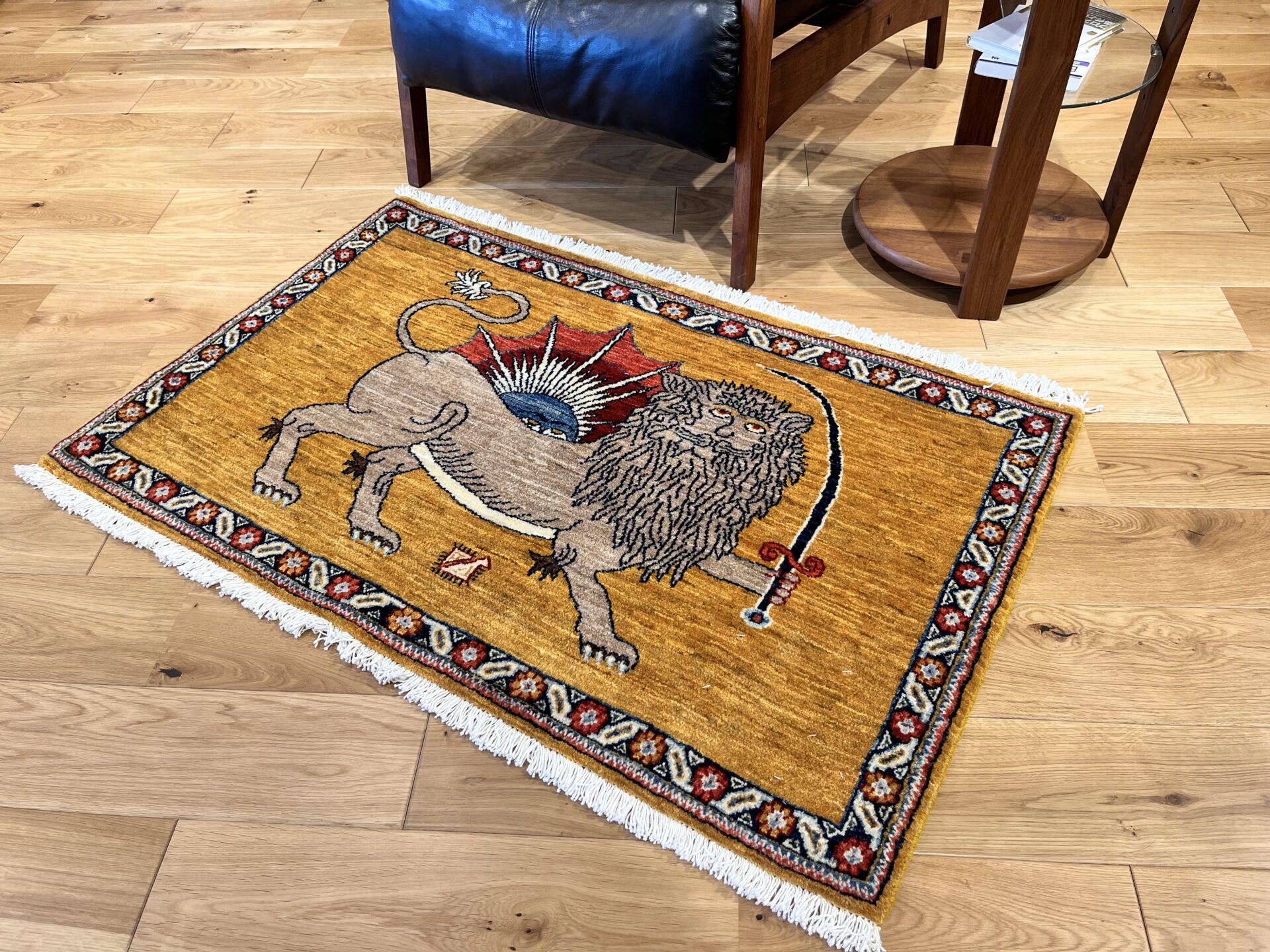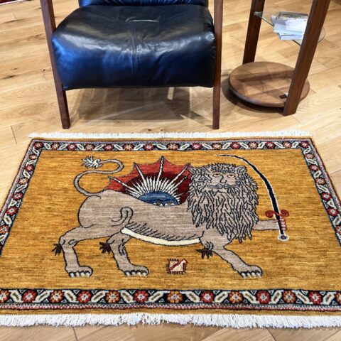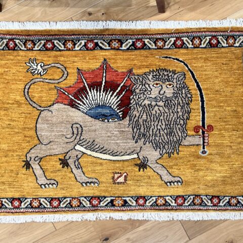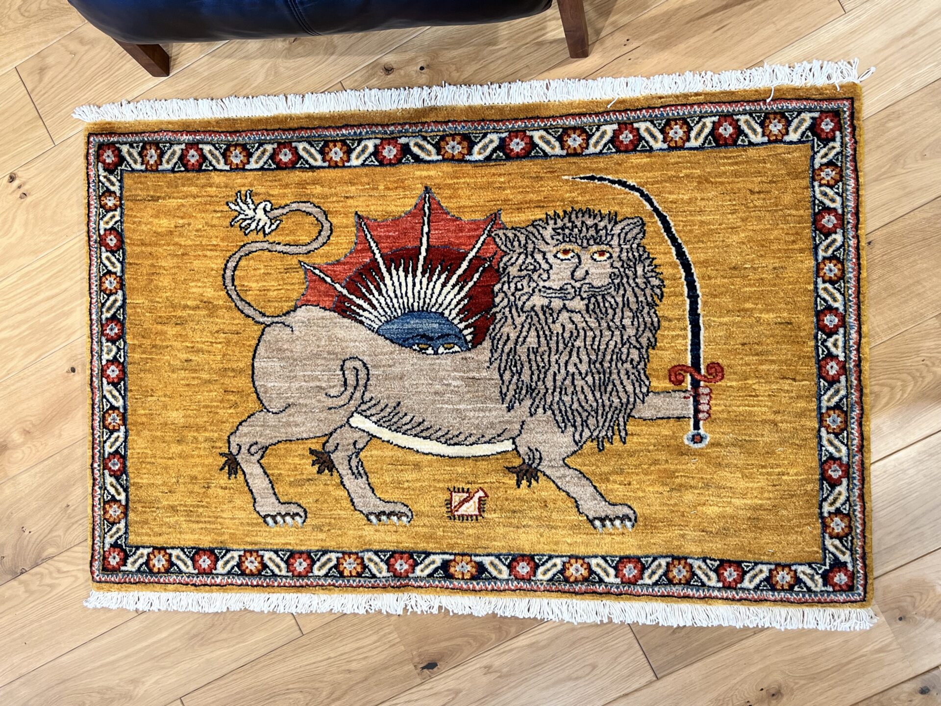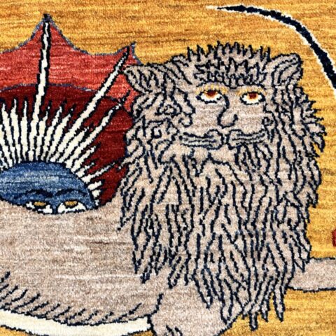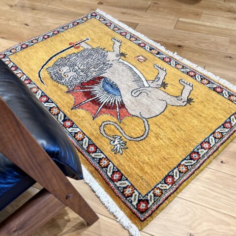 剣を携えたライオンと太陽のモチーフは、かつてイランの国旗にも使われていた由緒あるデザイン。