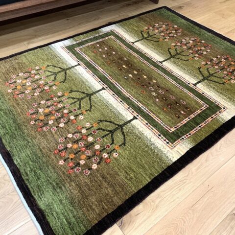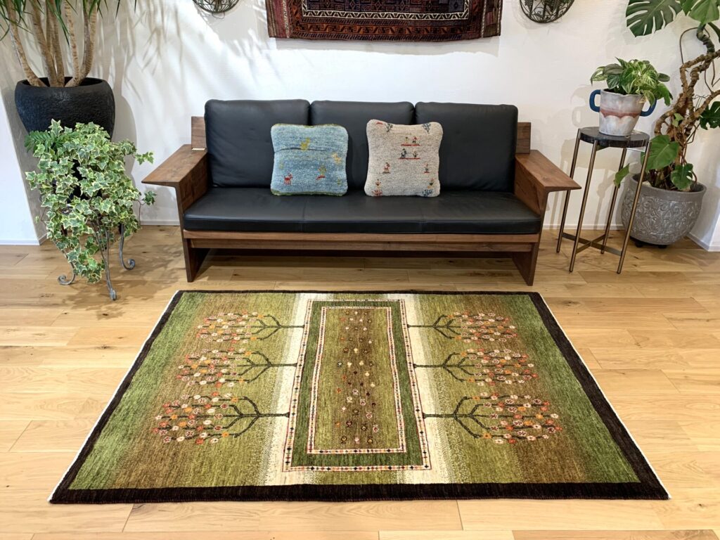 カシュクリ・ギャッベはアマレよりも細かな糸を使い、より緻密で滑らかな織りが特徴です。草木染めの色が美しく映え、模様の表現力も豊か。品質と軽やかさのバランスに優れ、使い心地と見た目の両方にこだわりたい方に最適な「カシュクリ ギャッベ」です。
