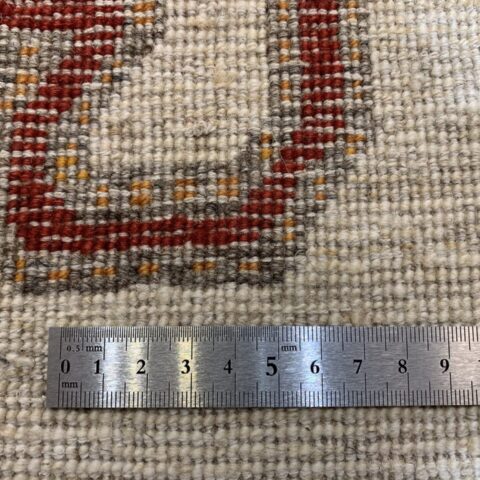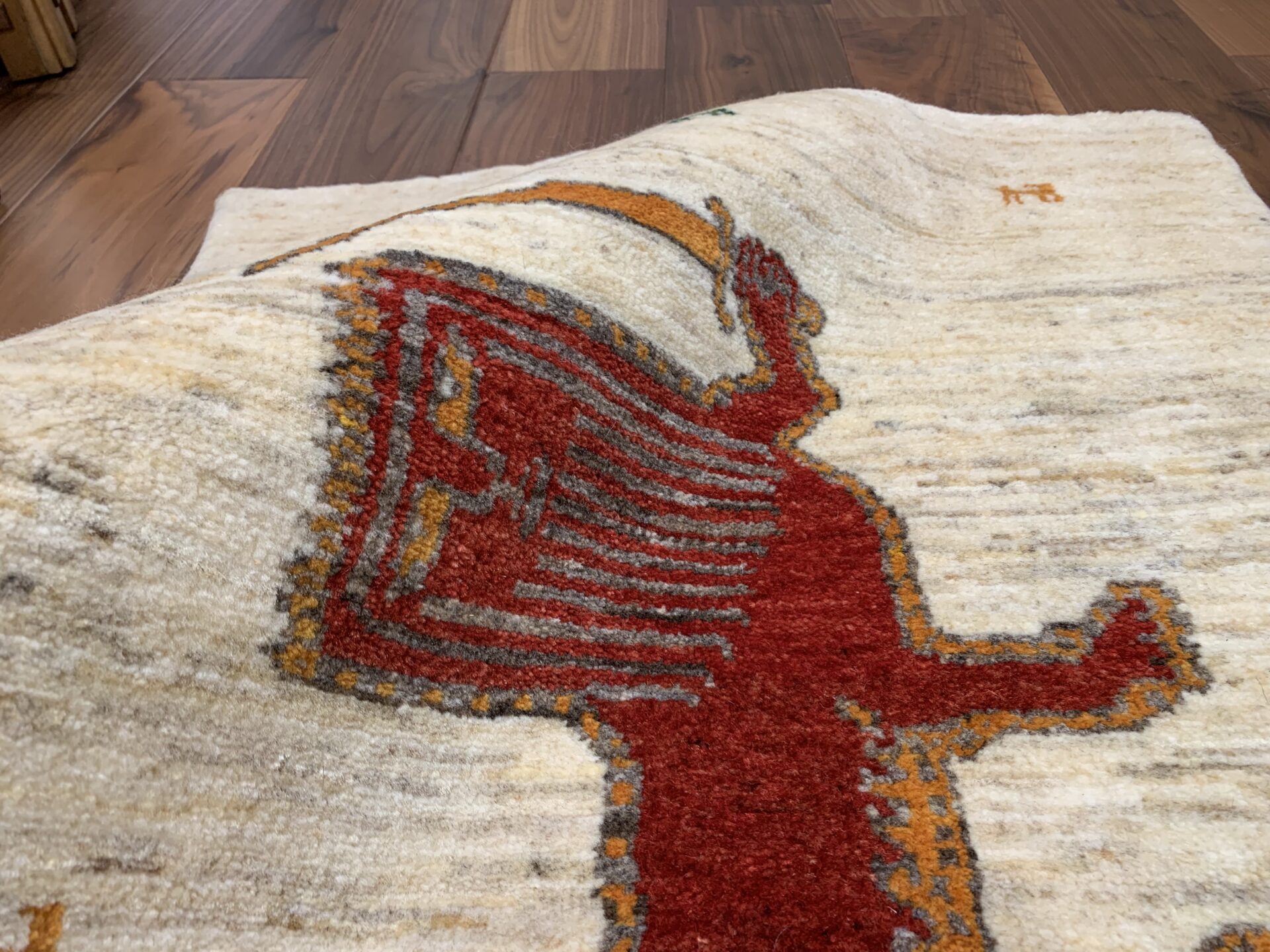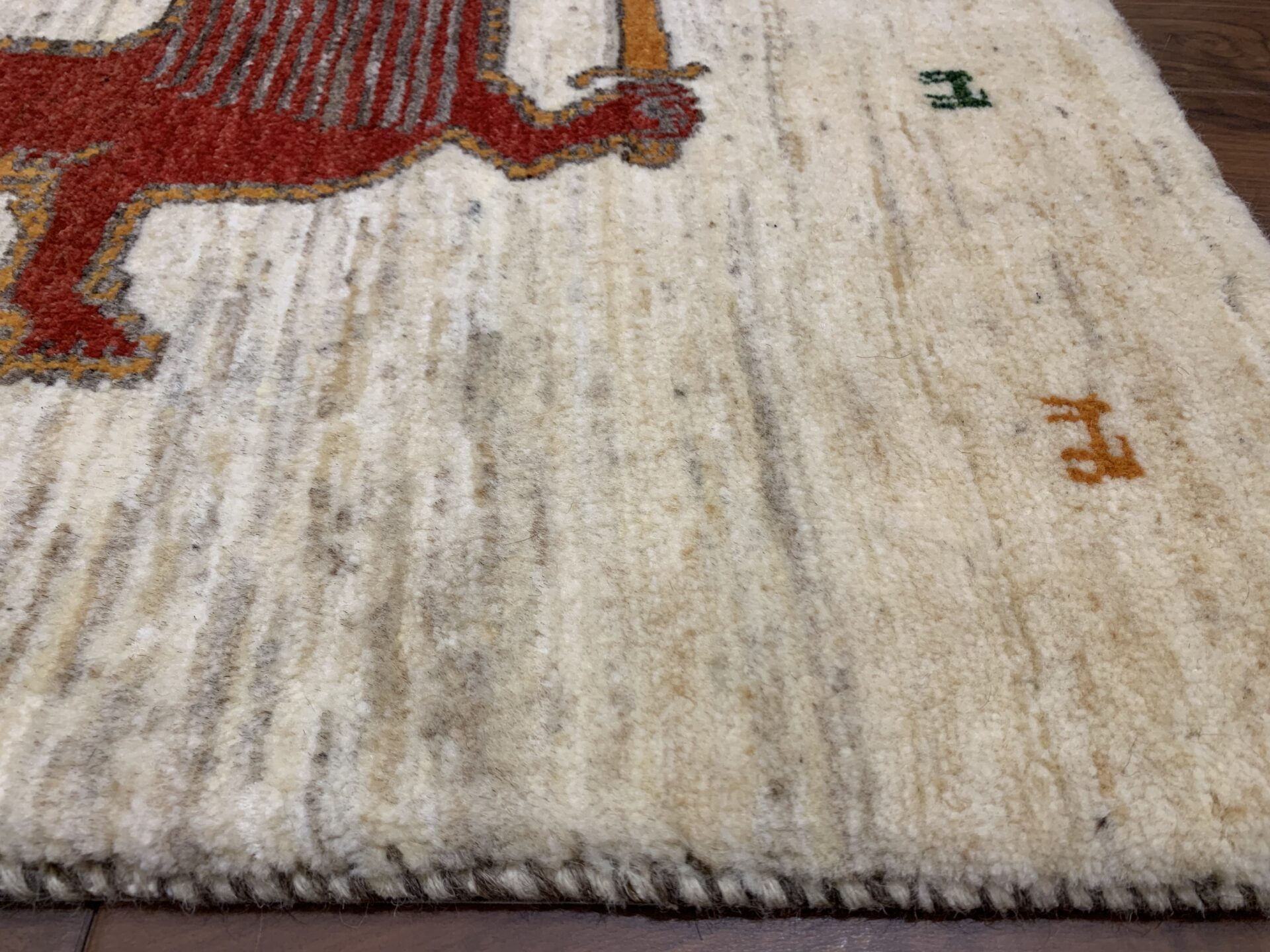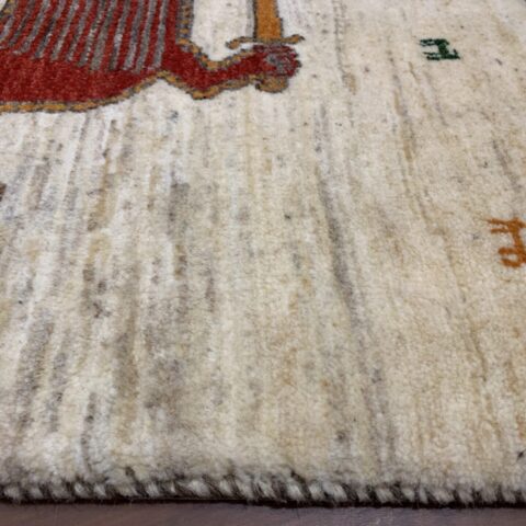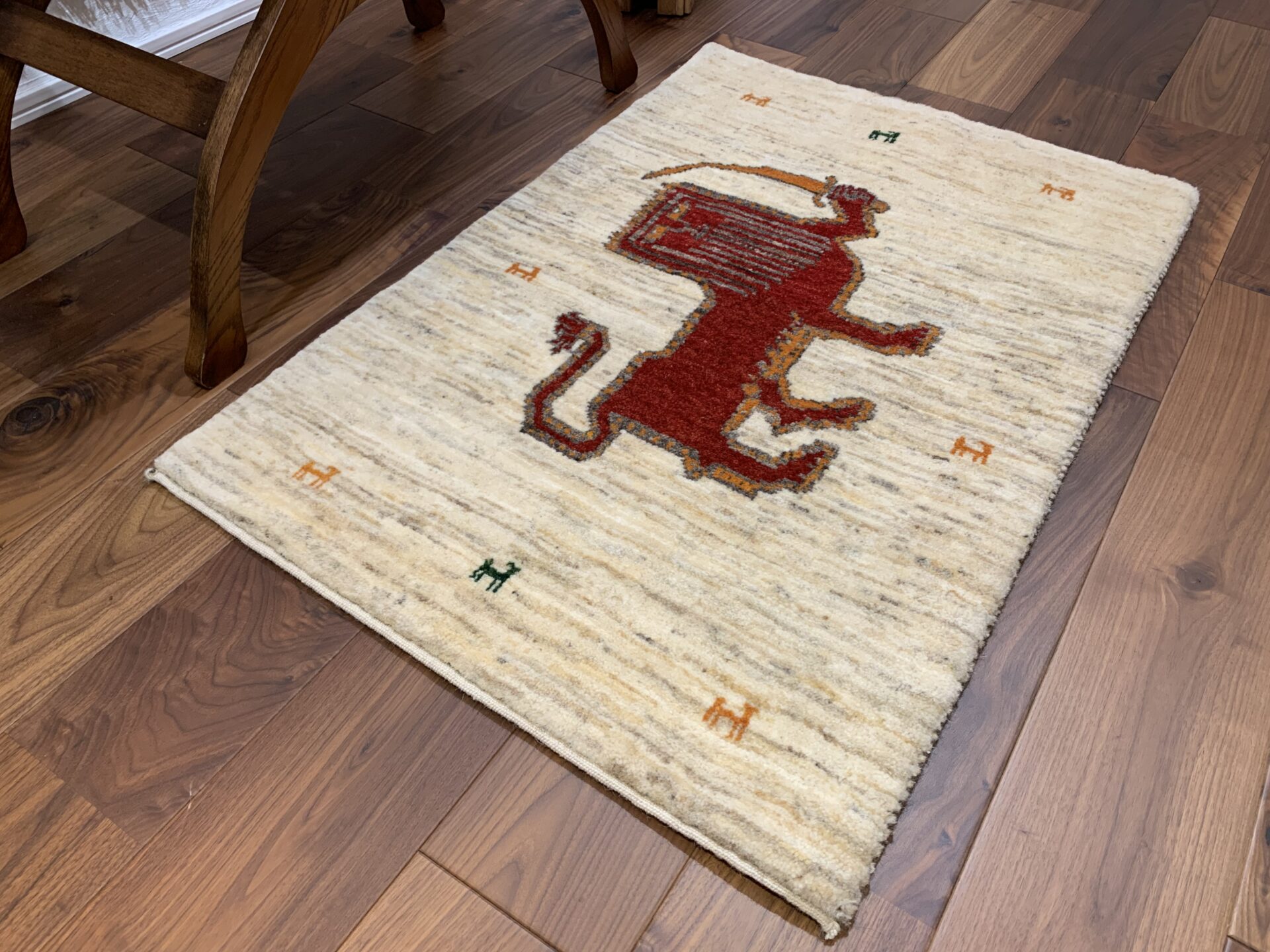 堂々たる姿で織り上げられた「サーベルライオン紋様」のギャッベです。