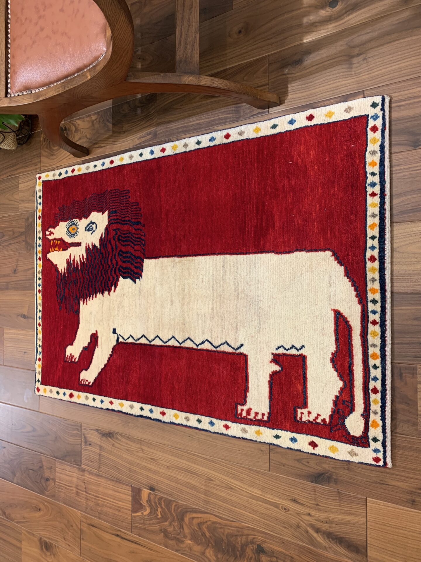 生命力と繁栄の願いを込めた、世界に一枚だけのライオンギャッベです。