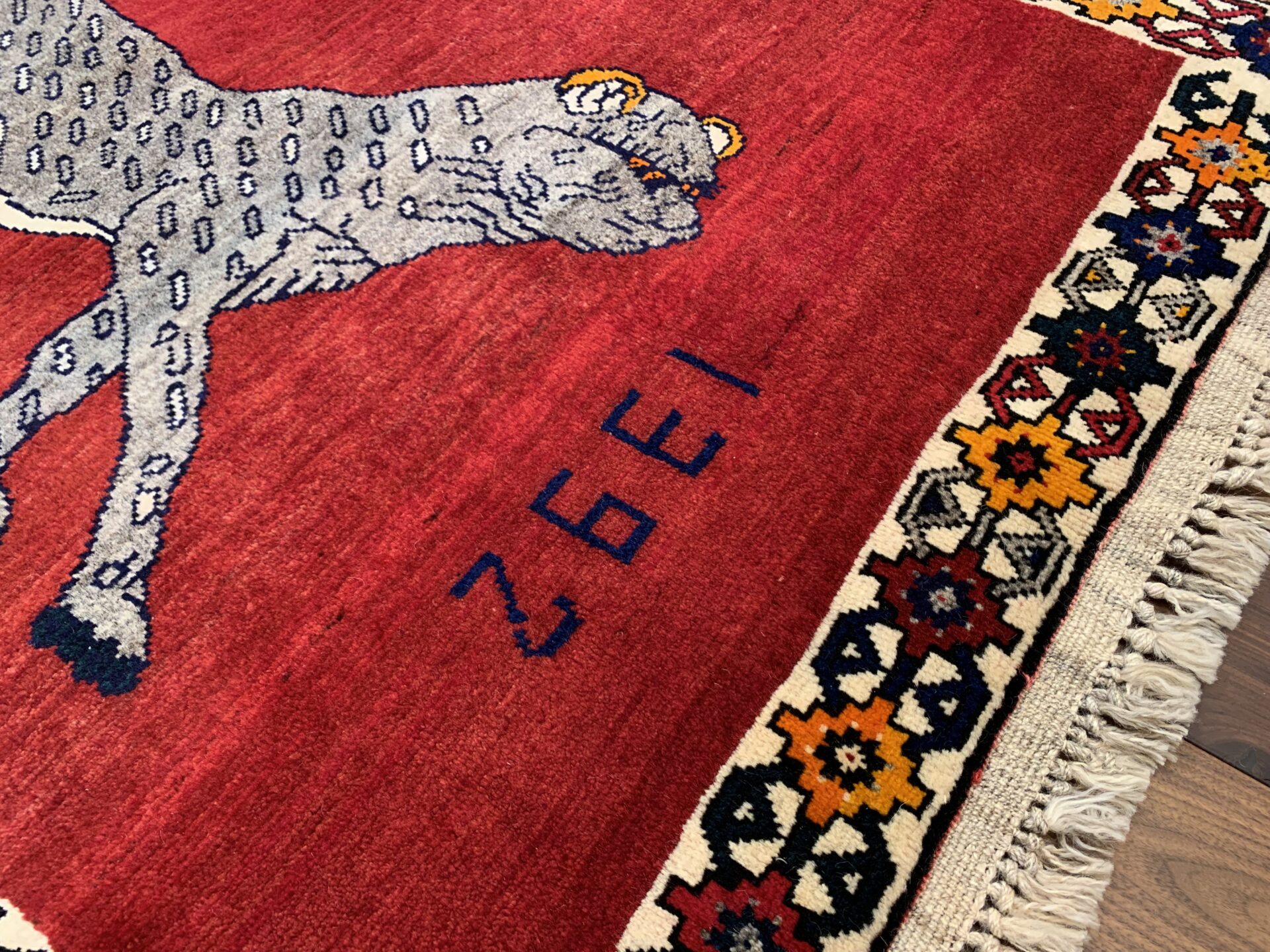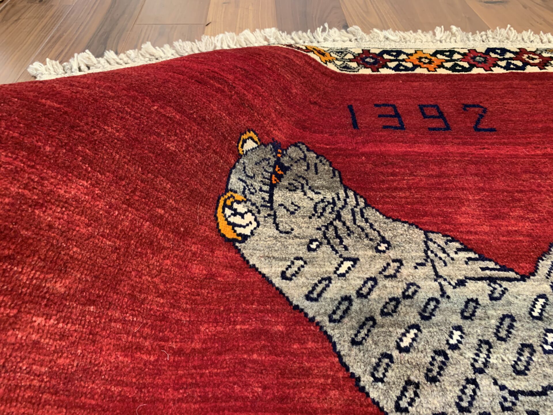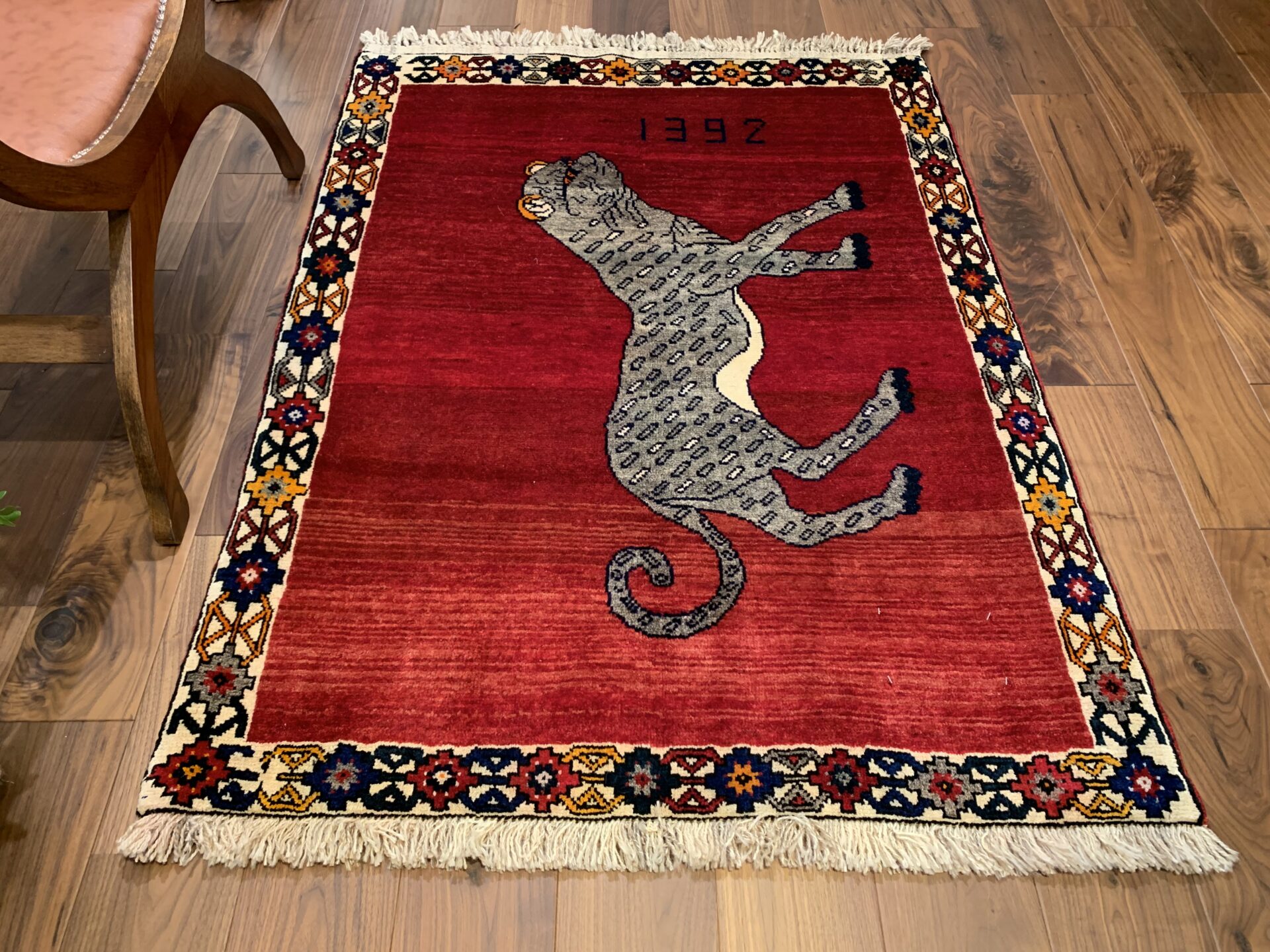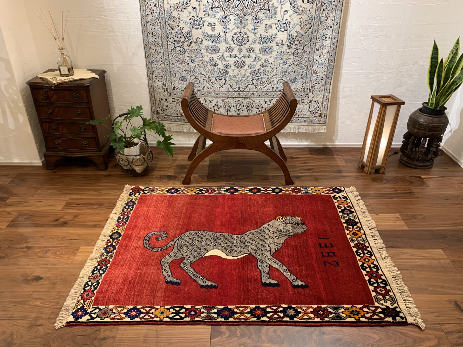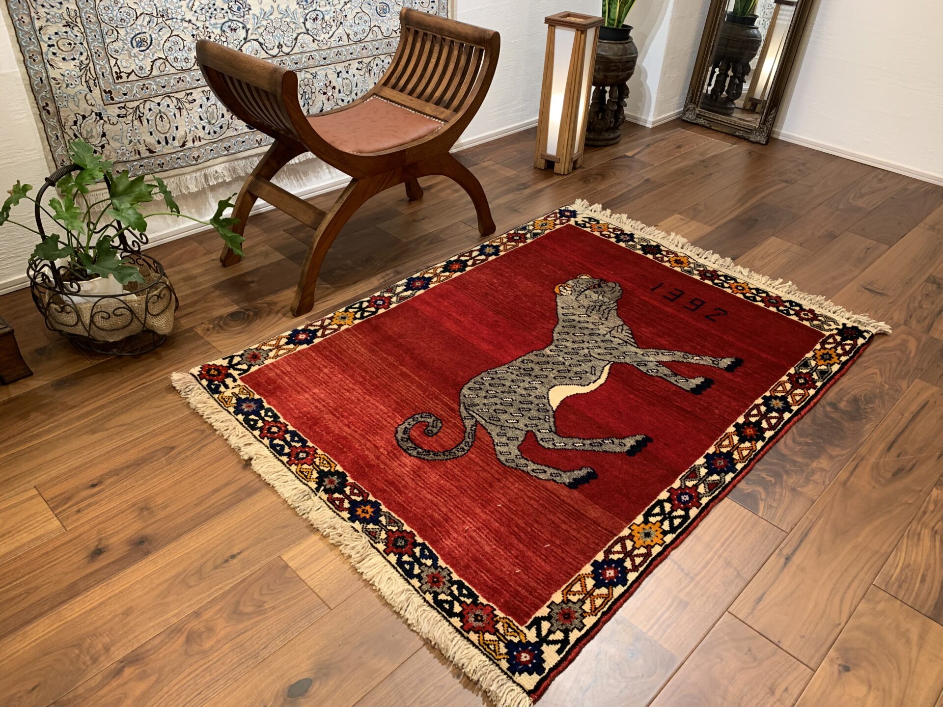 年代を記したギャッベは多くなく、当時の遊牧民の暮らしや思いを感じられる、希少な一点です。