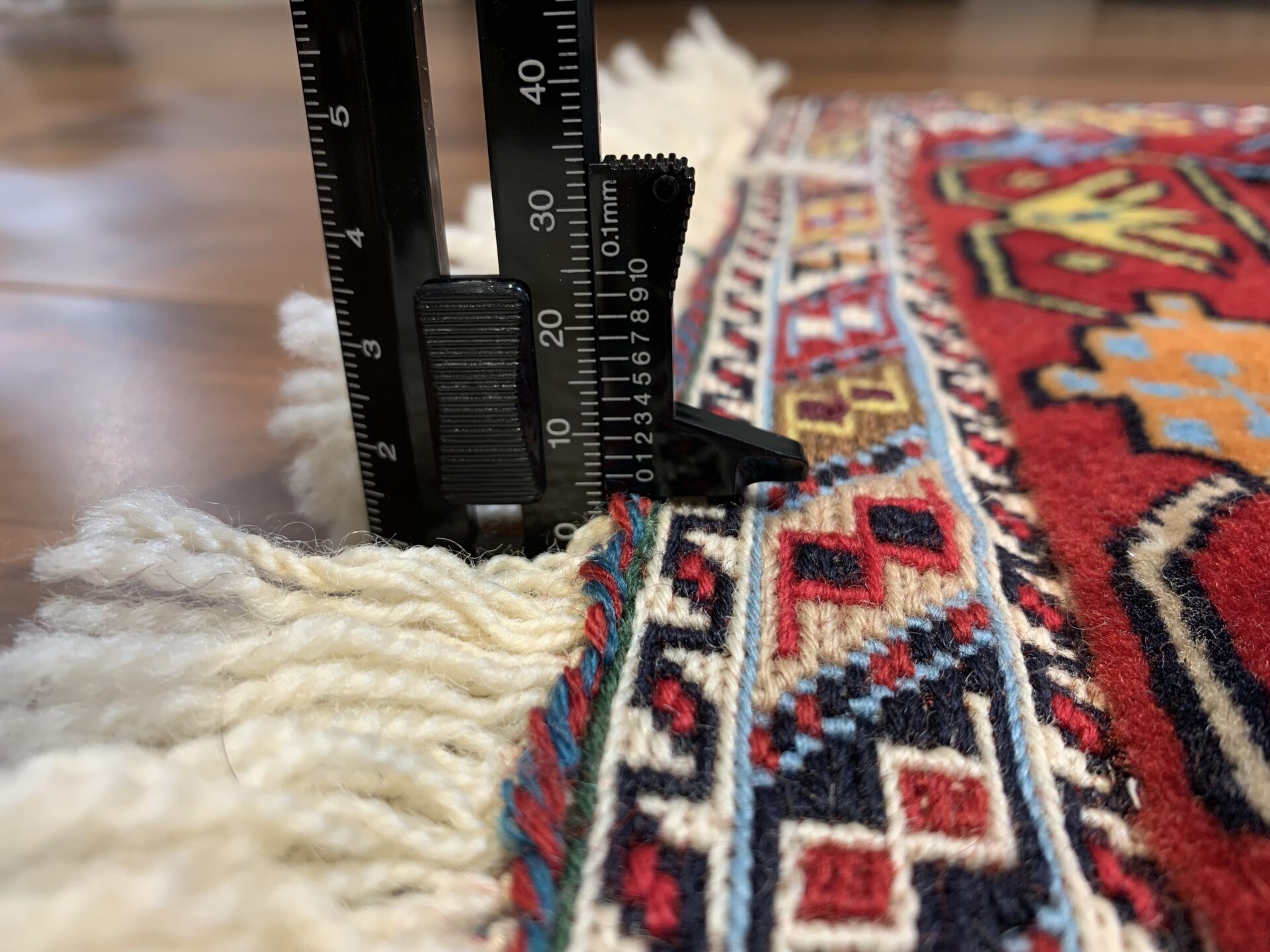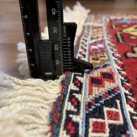 ベースはキリムの平織りで、部分的にパイル織りを施すことで、平坦な織りの中に浮き彫りのような柄が出ています。