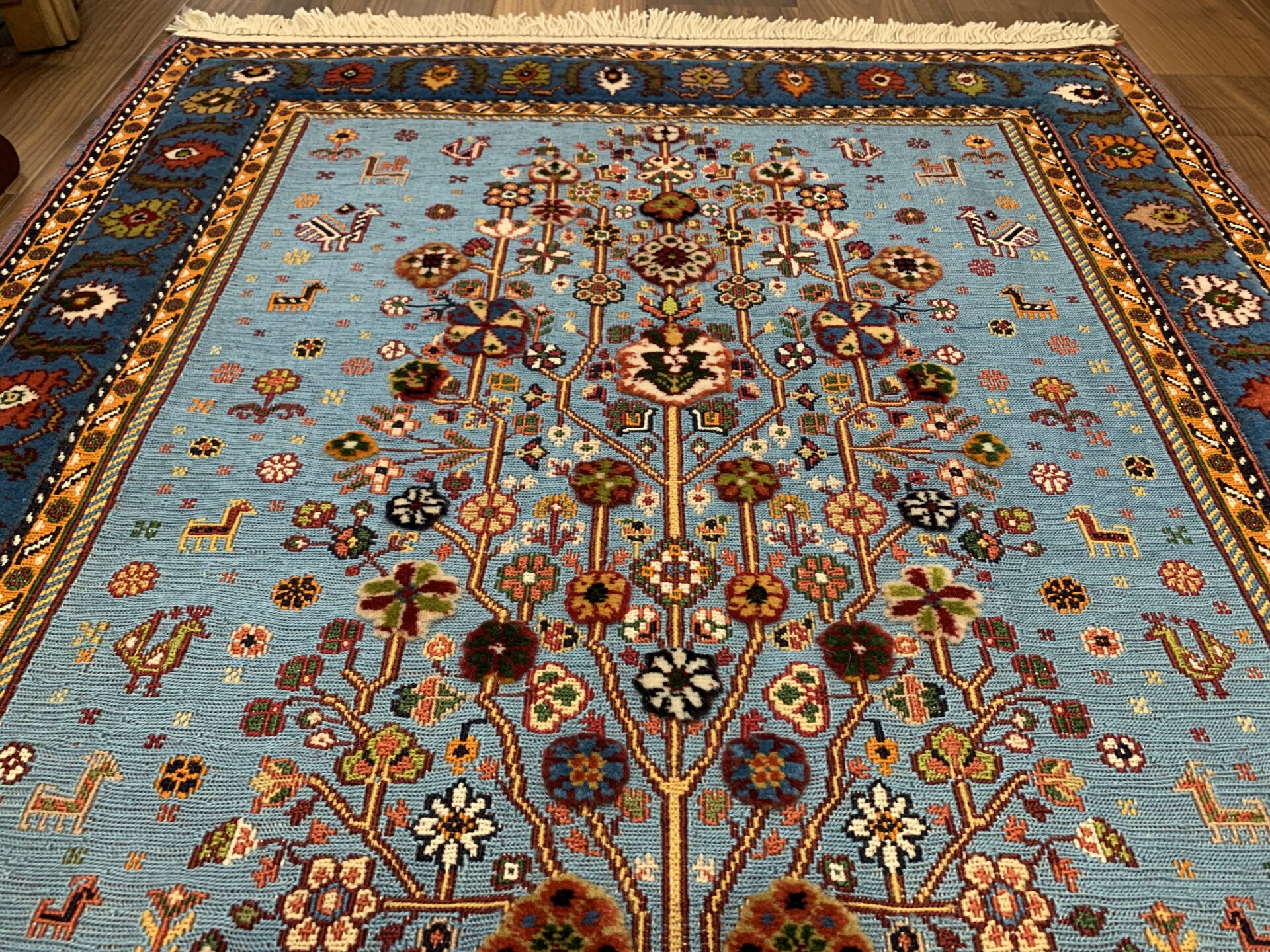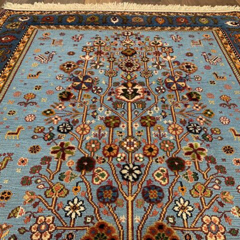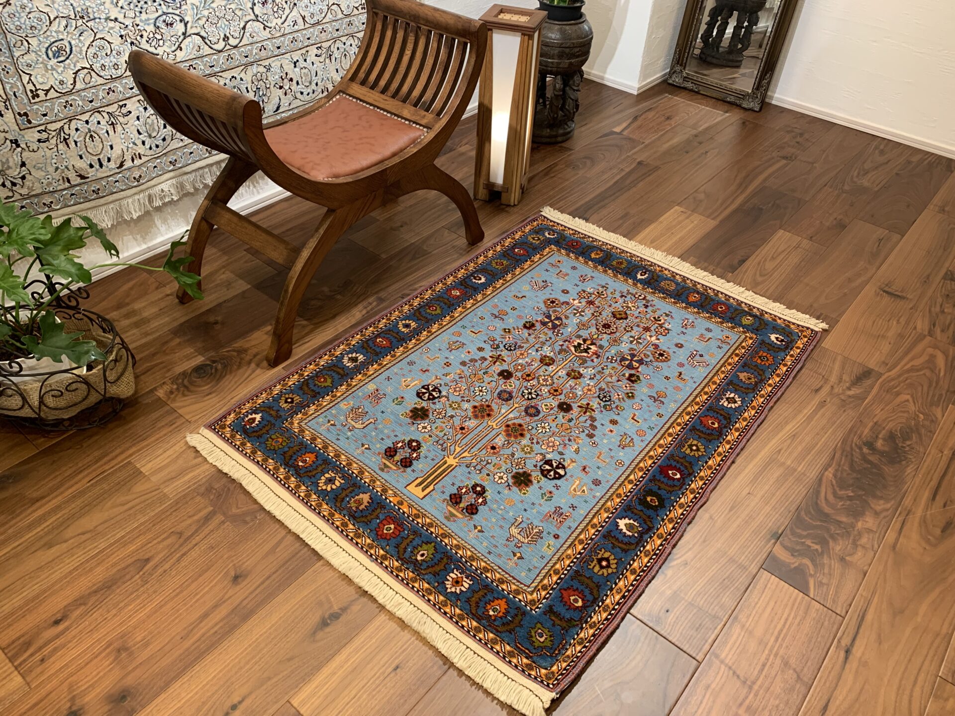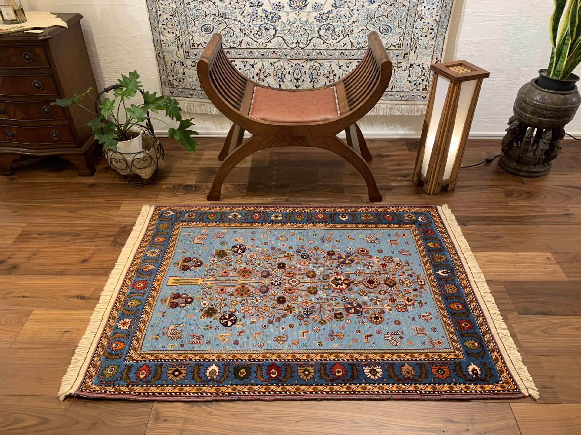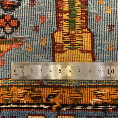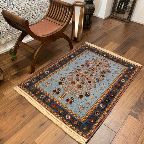 遊牧民にとっては「砂漠における緑と花」は奇跡的な豊かさを表し、願いがこもった希少なアートラグです。