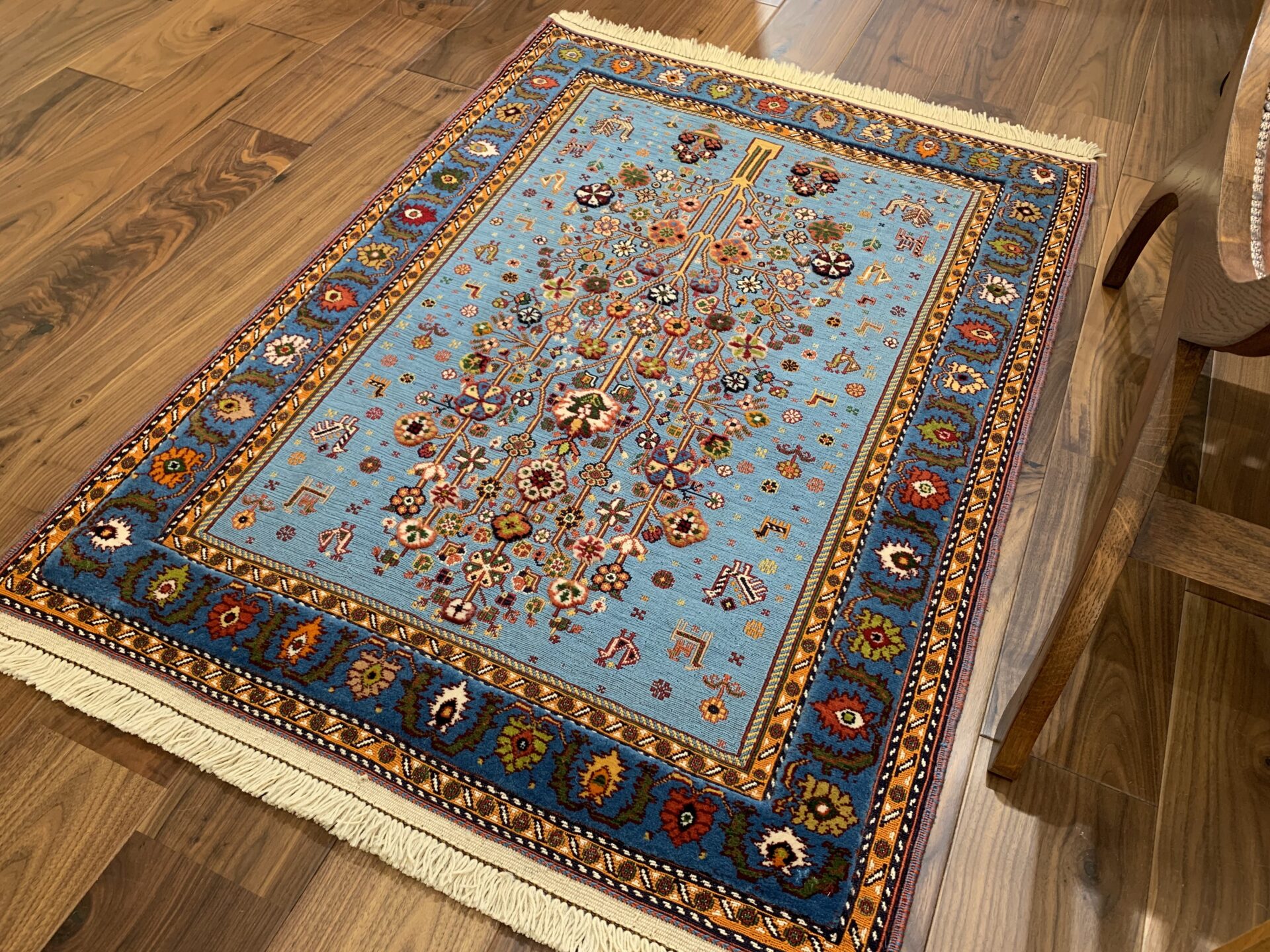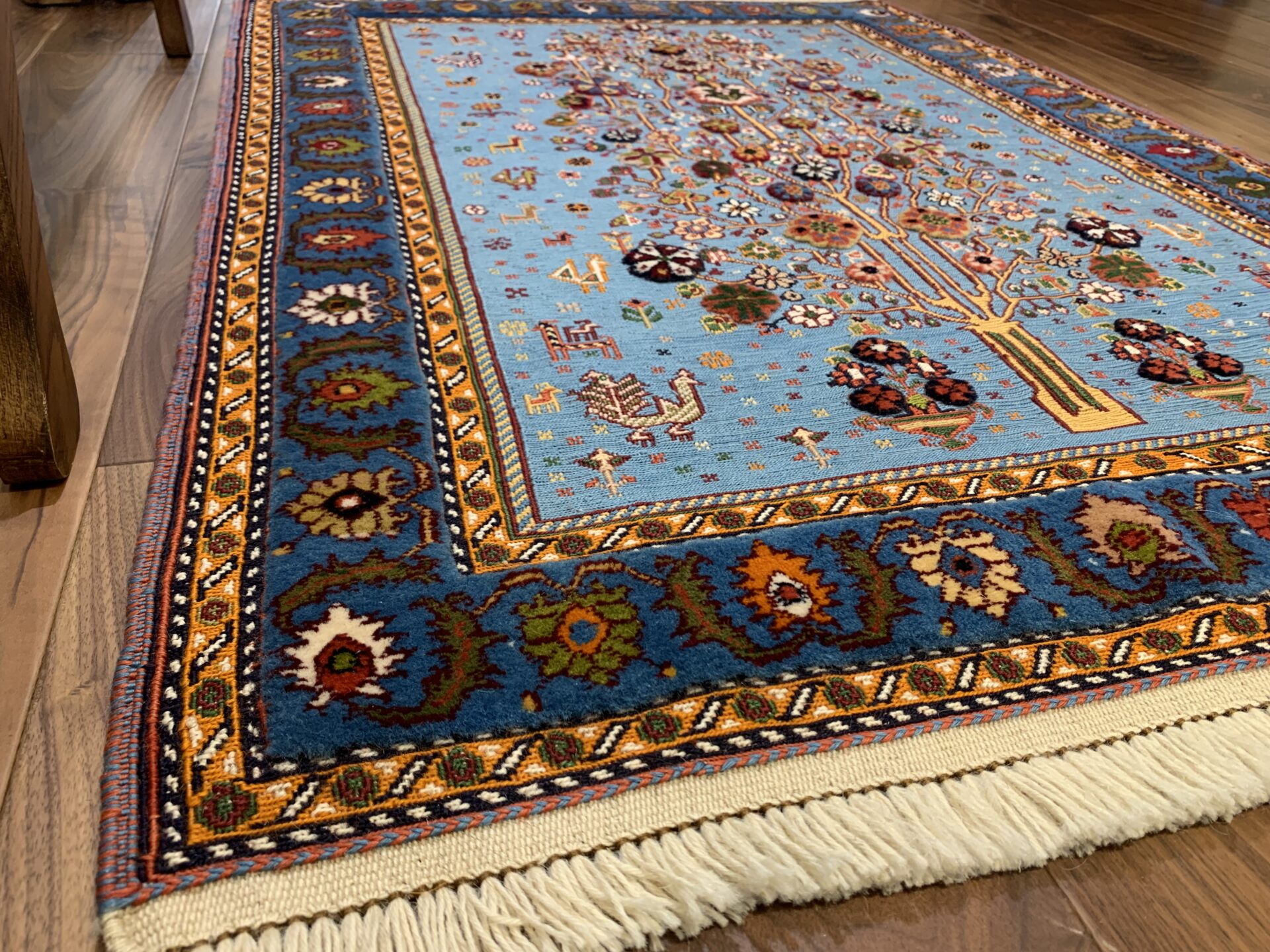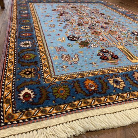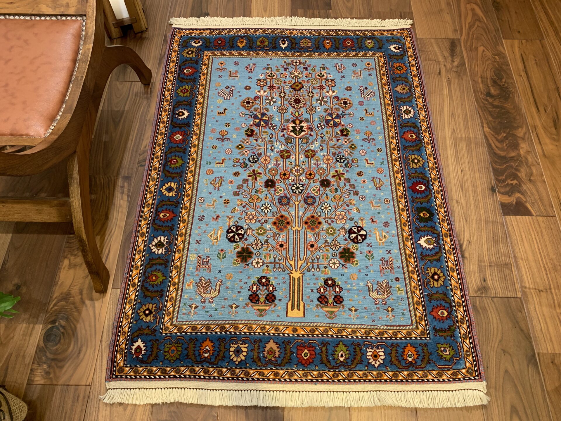遊牧民にとっては「砂漠における緑と花」は奇跡的な豊かさを表し、願いがこもった希少なアートラグです。