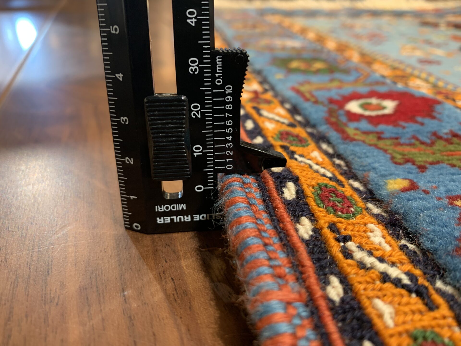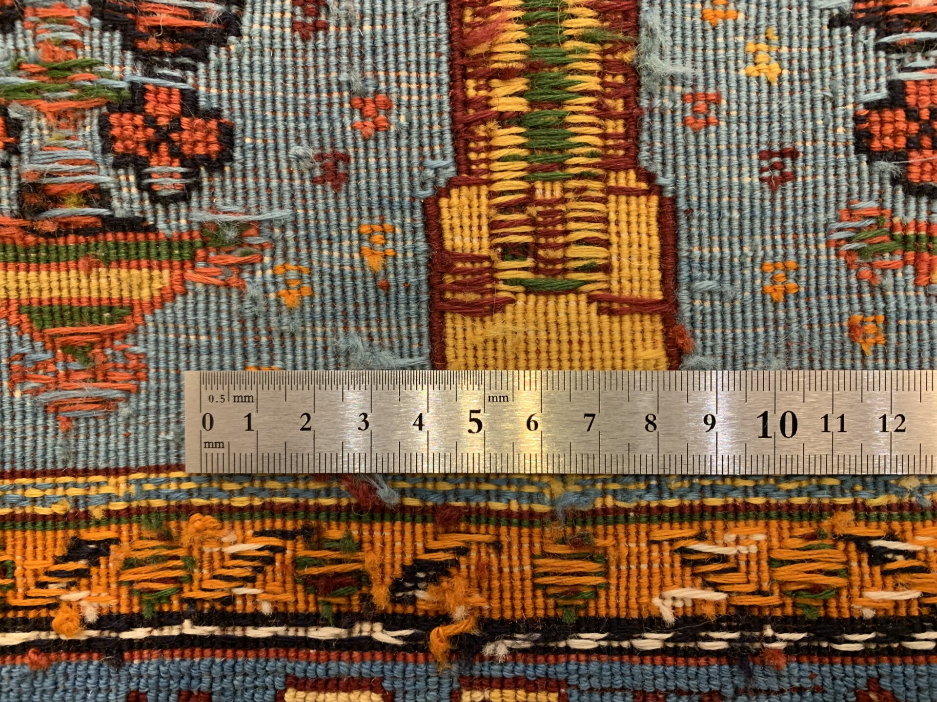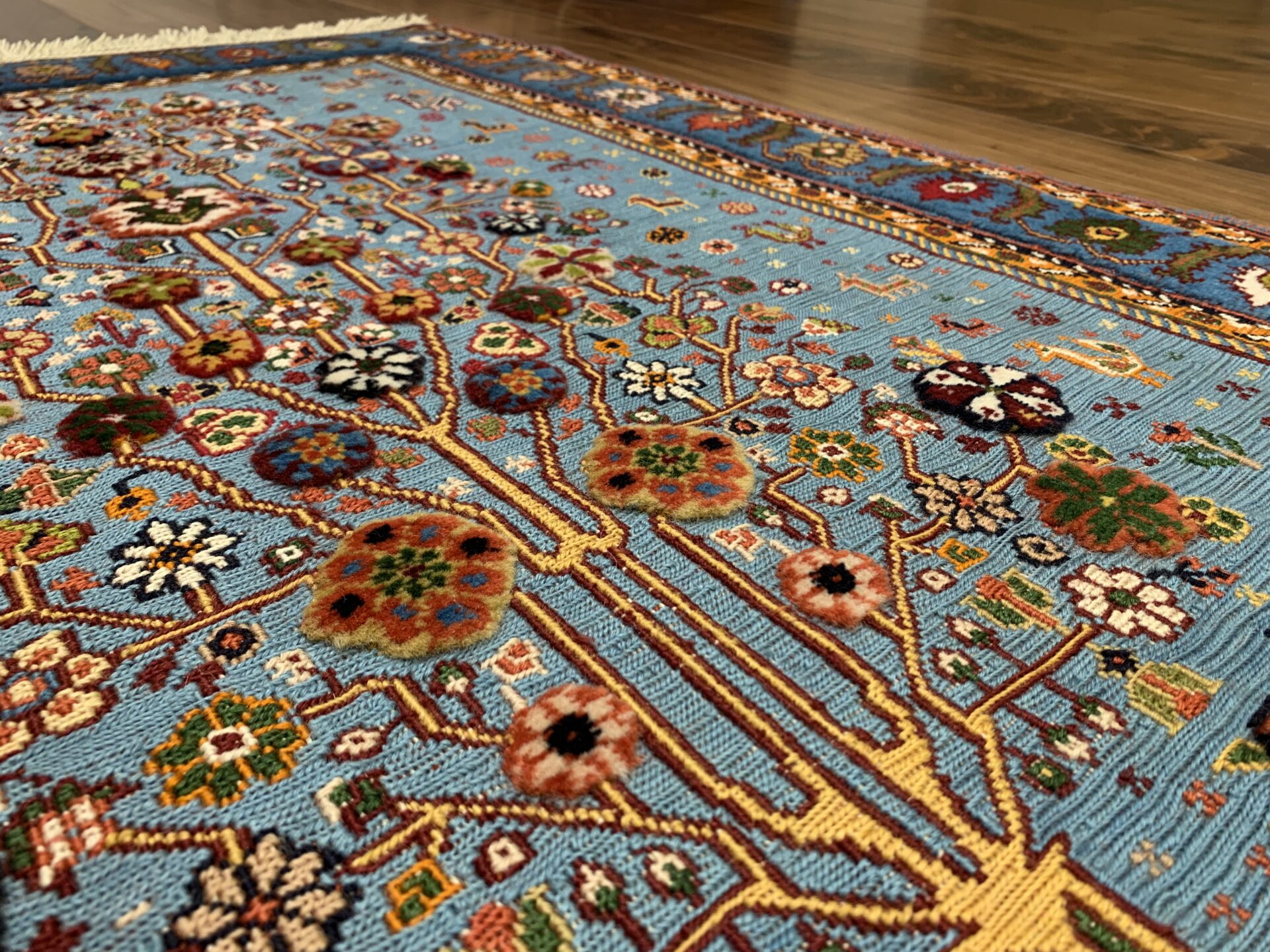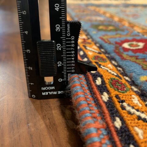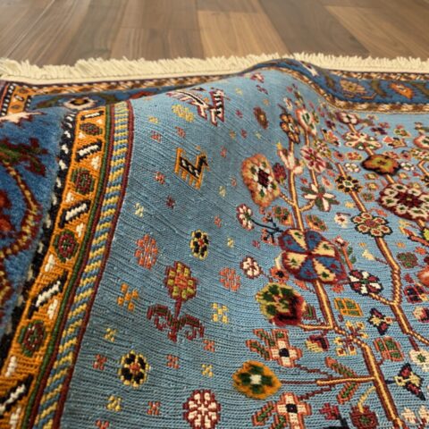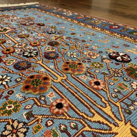 平織りとパイル織りが合わさった、立体感と陰影が出る珍しい絨毯。