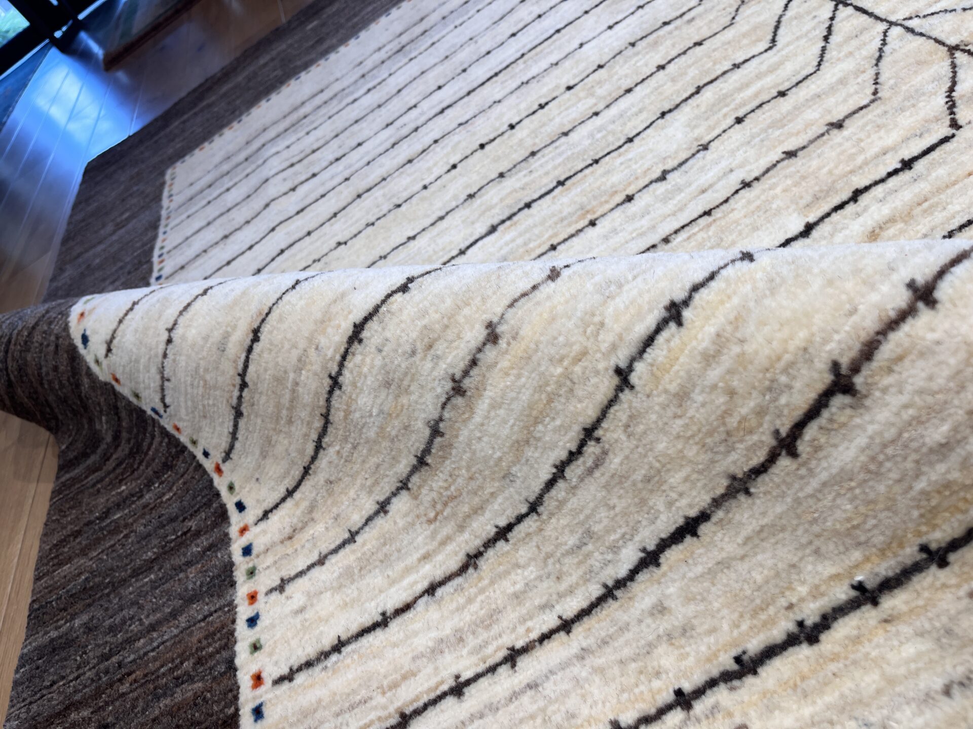 ギャッベにはしっかりした織りの「アマレ」、軽やかで繊細な「カシュクリ」、最高峰の緻密さを誇る「ルリバフ」のシリーズがあります。アマレ・ギャッベはゾランヴァリ社の代表的なシリーズで、しっかりとした打ち込みとコシの強い織りが特徴です。素朴で温かみのあるデザインが多く、日常使いしやすい耐久性の高さも人気の理由です。