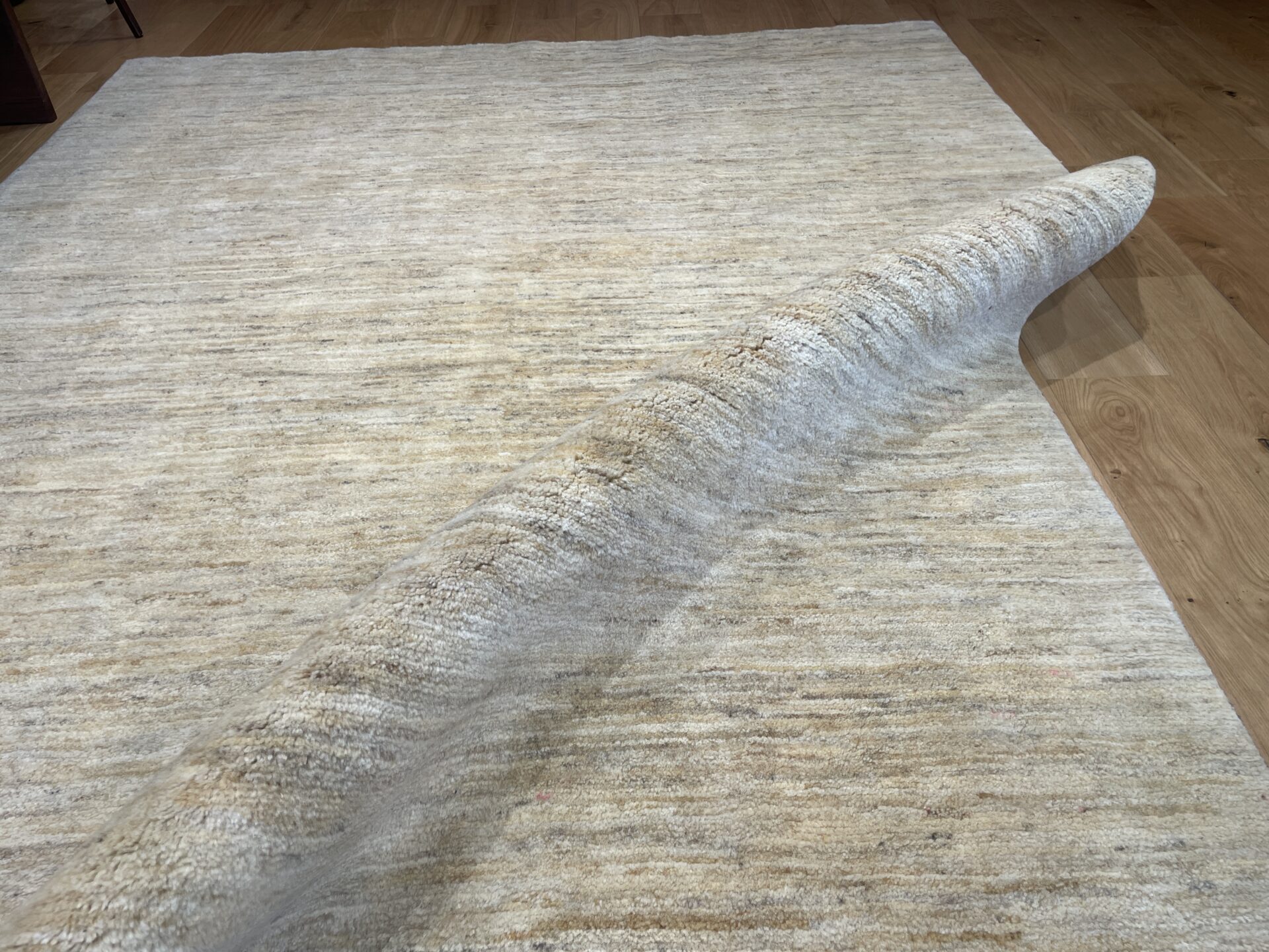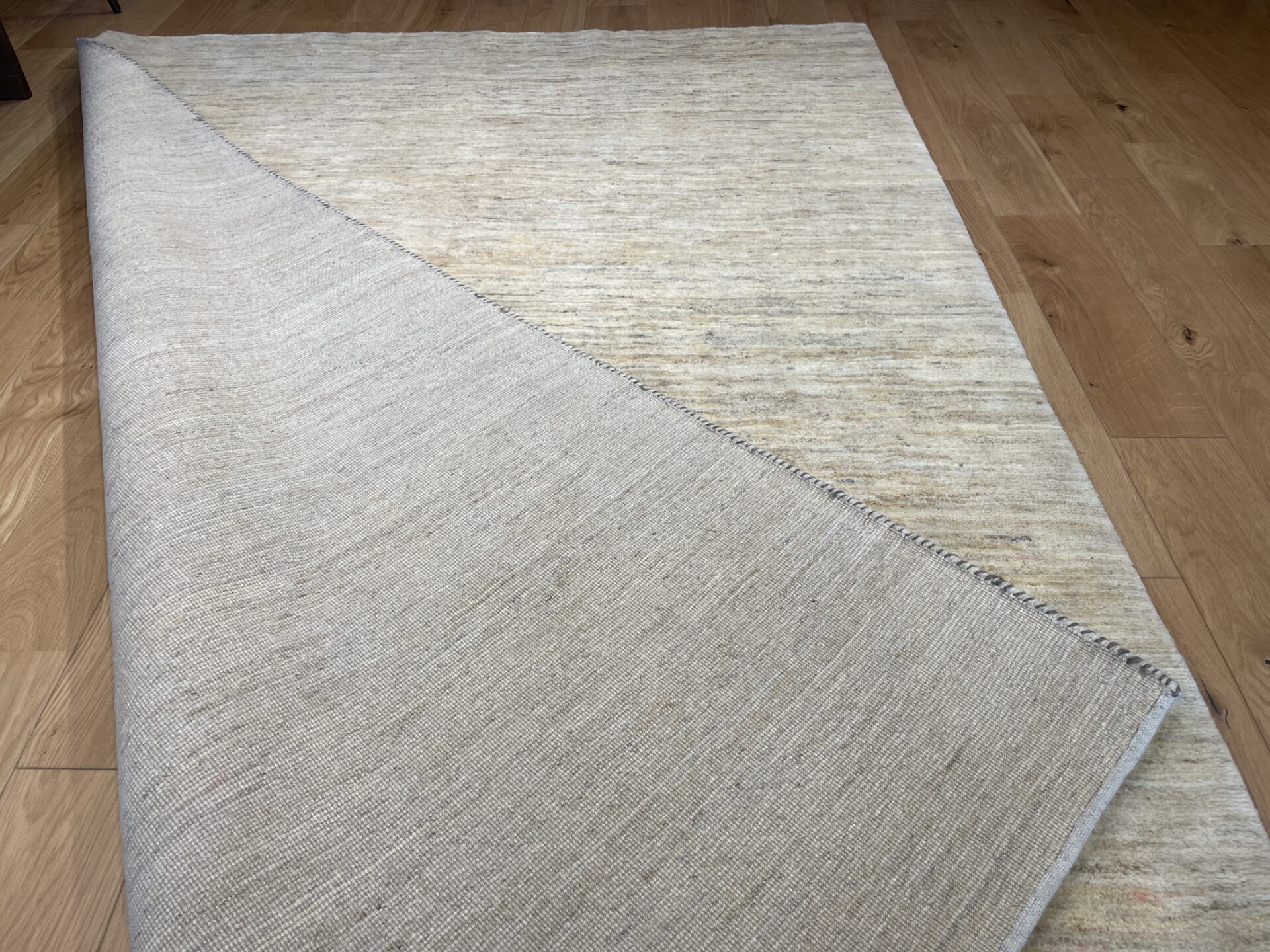 全面を原毛のオフホワイト一色で織り上げた非常にシンプルな一枚です。
