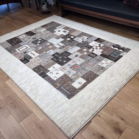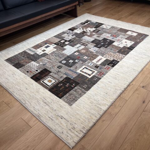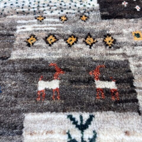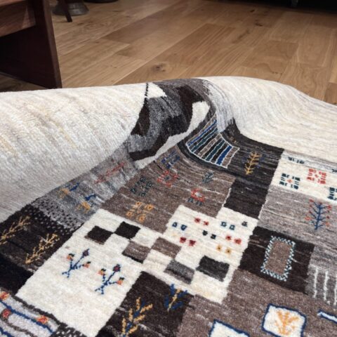 ギャッベにはしっかりした織りの「アマレ」、軽やかで繊細な「カシュクリ」、最高峰の緻密さを誇る「ルリバフ」のシリーズがあります。カシュクリ・ギャッベはアマレよりも細かな糸を使い、より緻密で滑らかな織りが特徴です。草木染めの色が美しく映え、模様の表現力も豊か。品質と軽やかさのバランスに優れ、使い心地と見た目の両方にこだわりたい方に最適な「カシュクリ ギャッベ」です。