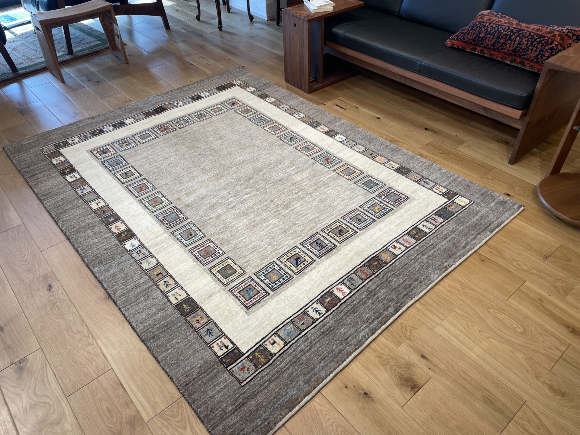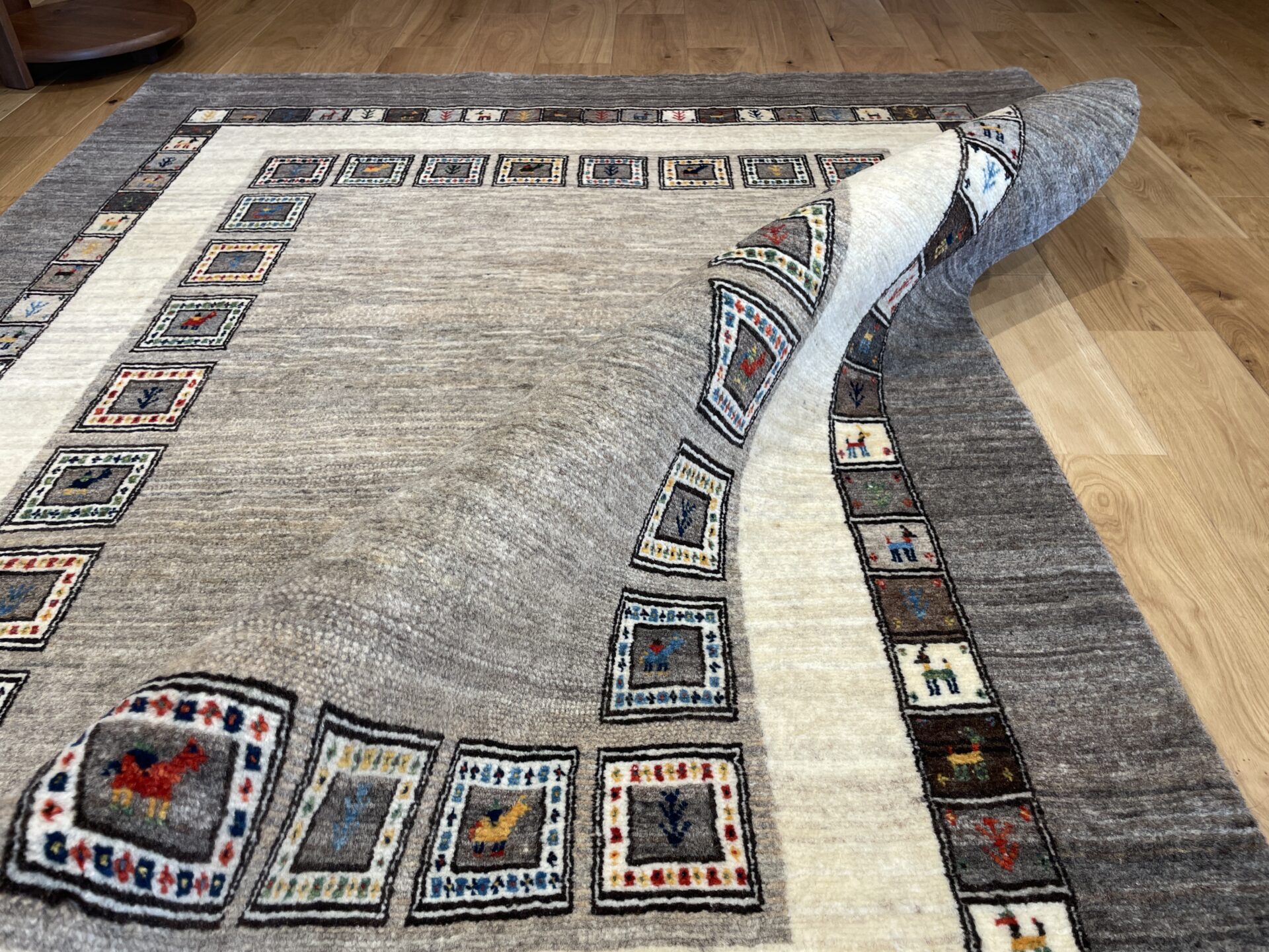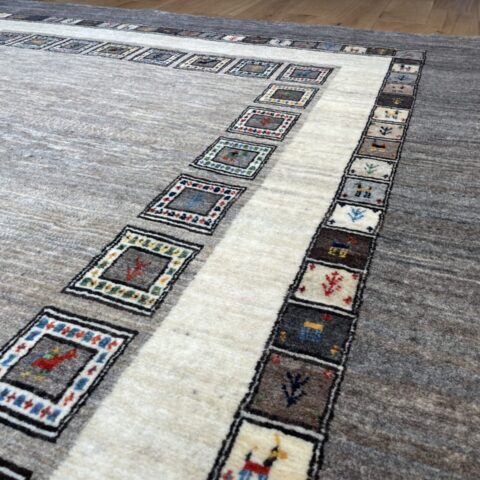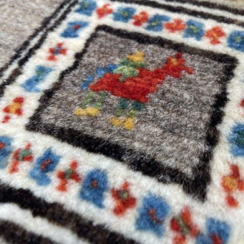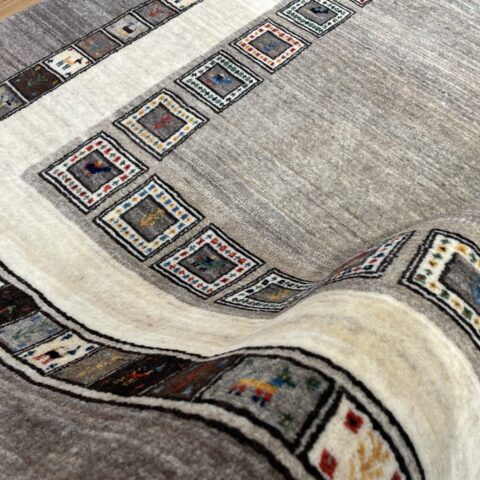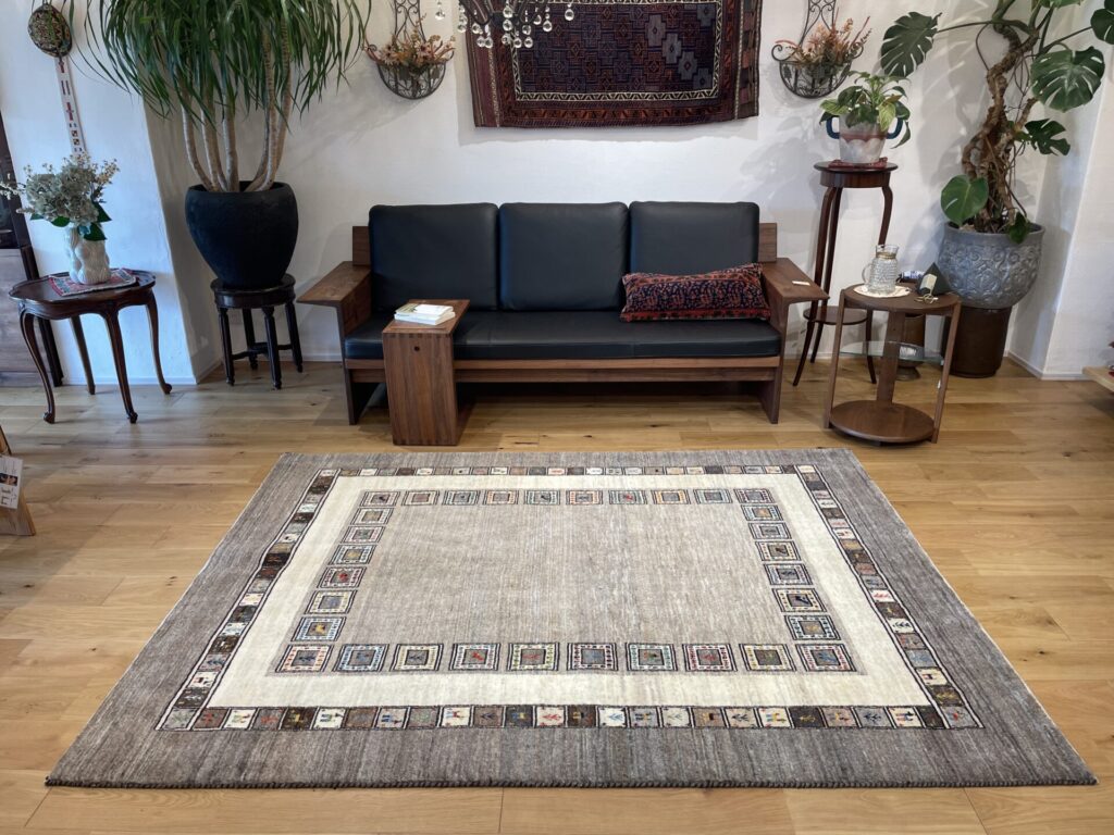 ギャッベにはしっかりした織りの「アマレ」、軽やかで繊細な「カシュクリ」、最高峰の緻密さを誇る「ルリバフ」のシリーズがあります。カシュクリ・ギャッベはアマレよりも細かな糸を使い、より緻密で滑らかな織りが特徴です。草木染めの色が美しく映え、模様の表現力も豊か。品質と軽やかさのバランスに優れ、使い心地と見た目の両方にこだわりたい方に最適な「カシュクリ ギャッベ」です。