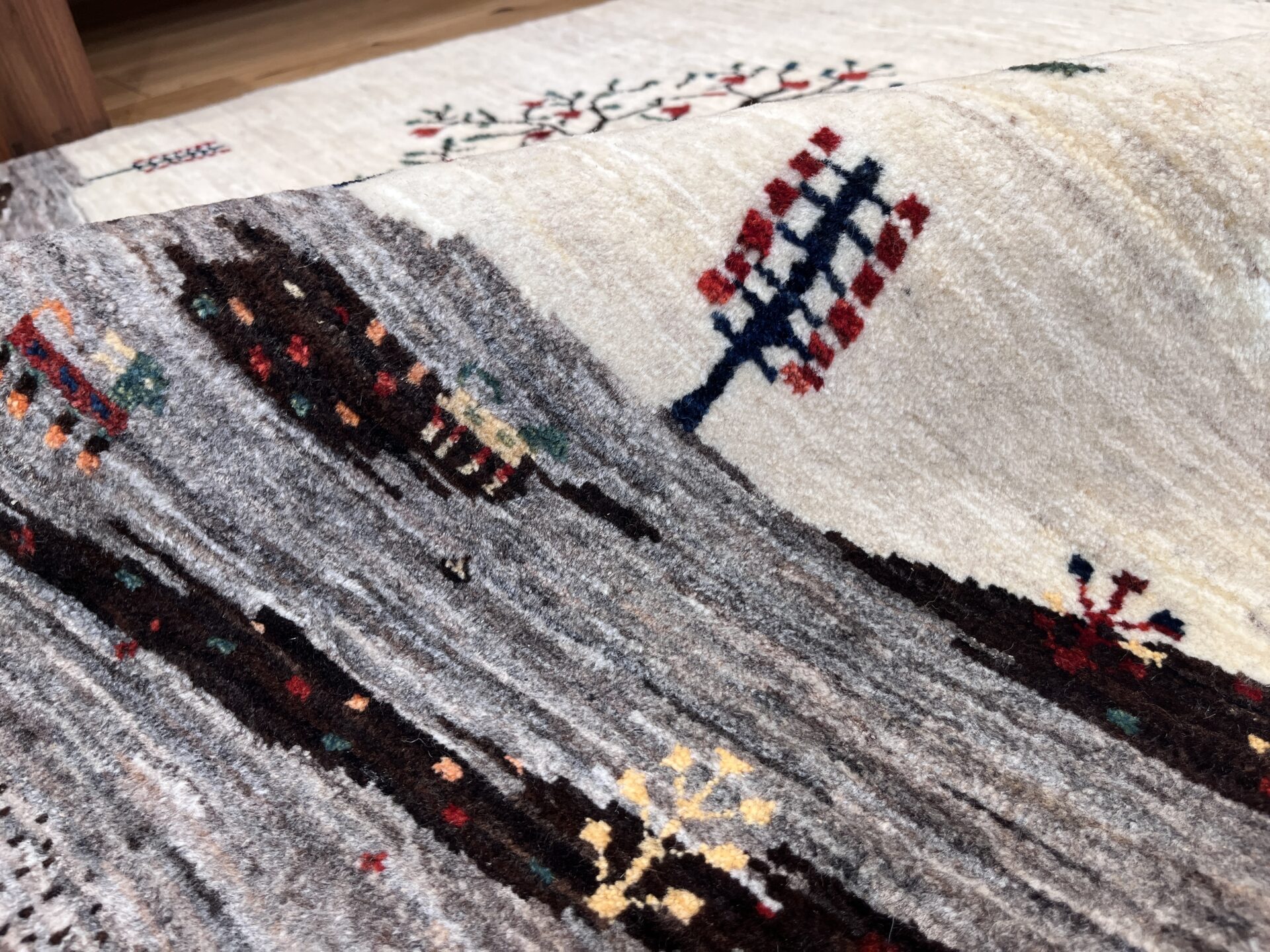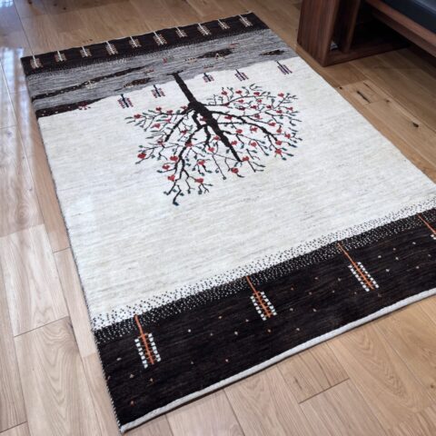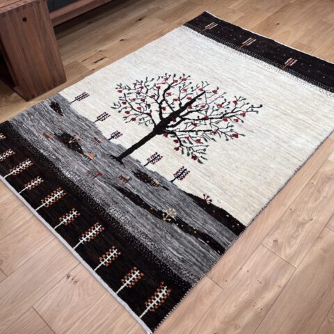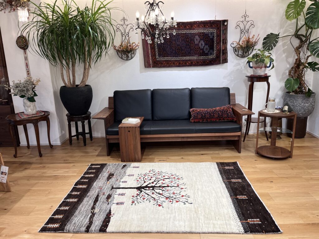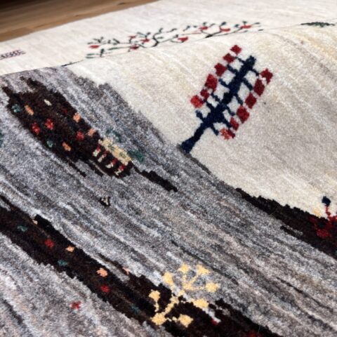 ギャッベにはしっかりした織りの「アマレ」、軽やかで繊細な「カシュクリ」、最高峰の緻密さを誇る「ルリバフ」のシリーズがあります。カシュクリ・ギャッベはアマレよりも細かな糸を使い、より緻密で滑らかな織りが特徴です。草木染めの色が美しく映え、模様の表現力も豊か。品質と軽やかさのバランスに優れ、使い心地と見た目の両方にこだわりたい方に最適な「カシュクリ ギャッベ」です。