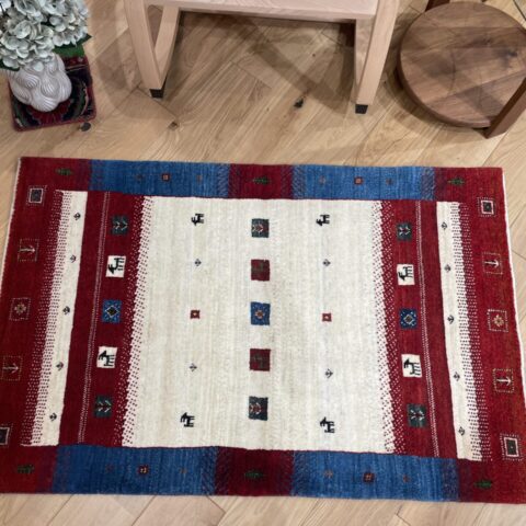 三色が絶妙に調和し、遊牧民の感性豊かな色使いが際立つギャッベです。