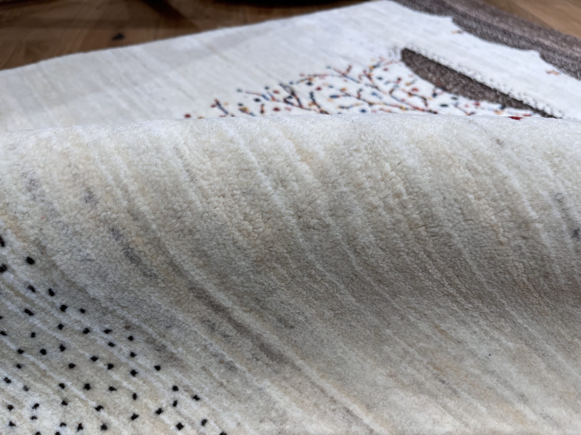 ギャッベにはしっかりした織りの「アマレ」、軽やかで繊細な「カシュクリ」、最高峰の緻密さを誇る「ルリバフ」のシリーズがあります。カシュクリ・ギャッベはアマレよりも細かな糸を使い、より緻密で滑らかな織りが特徴です。草木染めの色が美しく映え、模様の表現力も豊か。品質と軽やかさのバランスに優れ、使い心地と見た目の両方にこだわりたい方に最適な「カシュクリ ギャッベ」です。