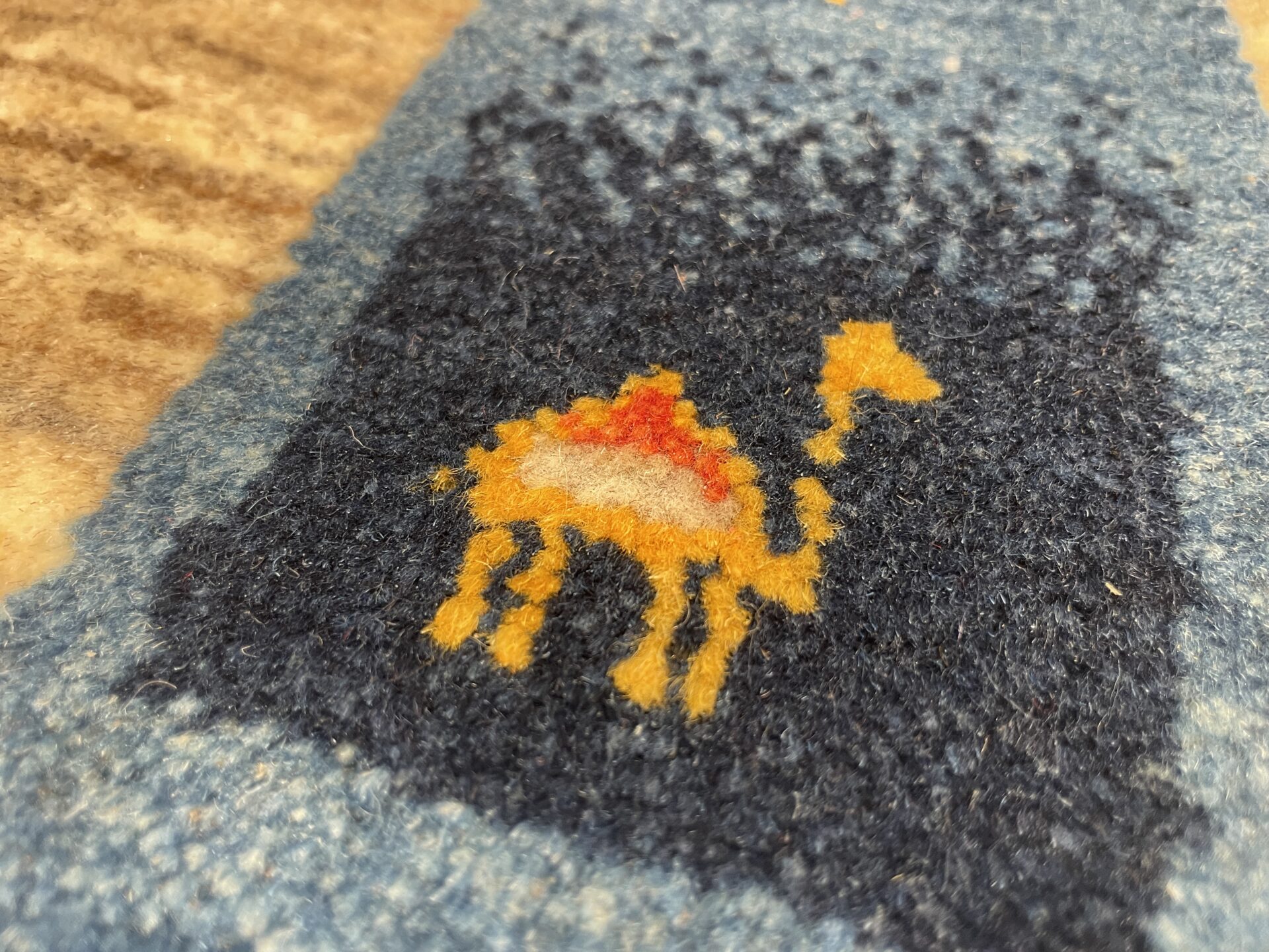 レッド、イエロー、グリーンで幸福や呼ぶモチーフ 「生命の樹」や、財産を意味する「羊」が配置され、遊牧民の暮らしに欠かせない「ラクダ」は、移動や運搬を支える大切な仲間であり、財産の象徴。そのためギャッベに描かれるラクダは、「富」「豊かさ」「旅の安全」を願う意味が込められています。やわらかな原毛のフィールドに可愛らしく織り込まれたラクダの姿は、素朴ながらも力強さを感じさせます。