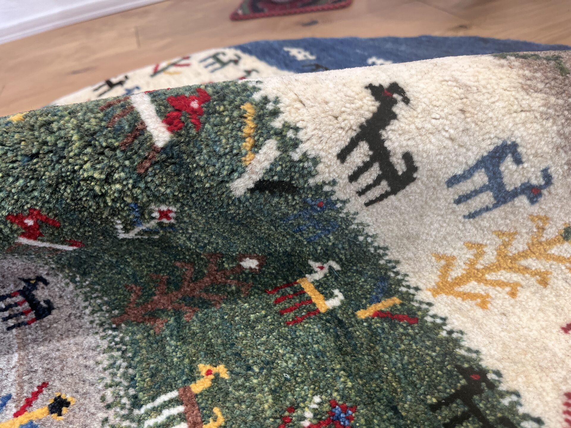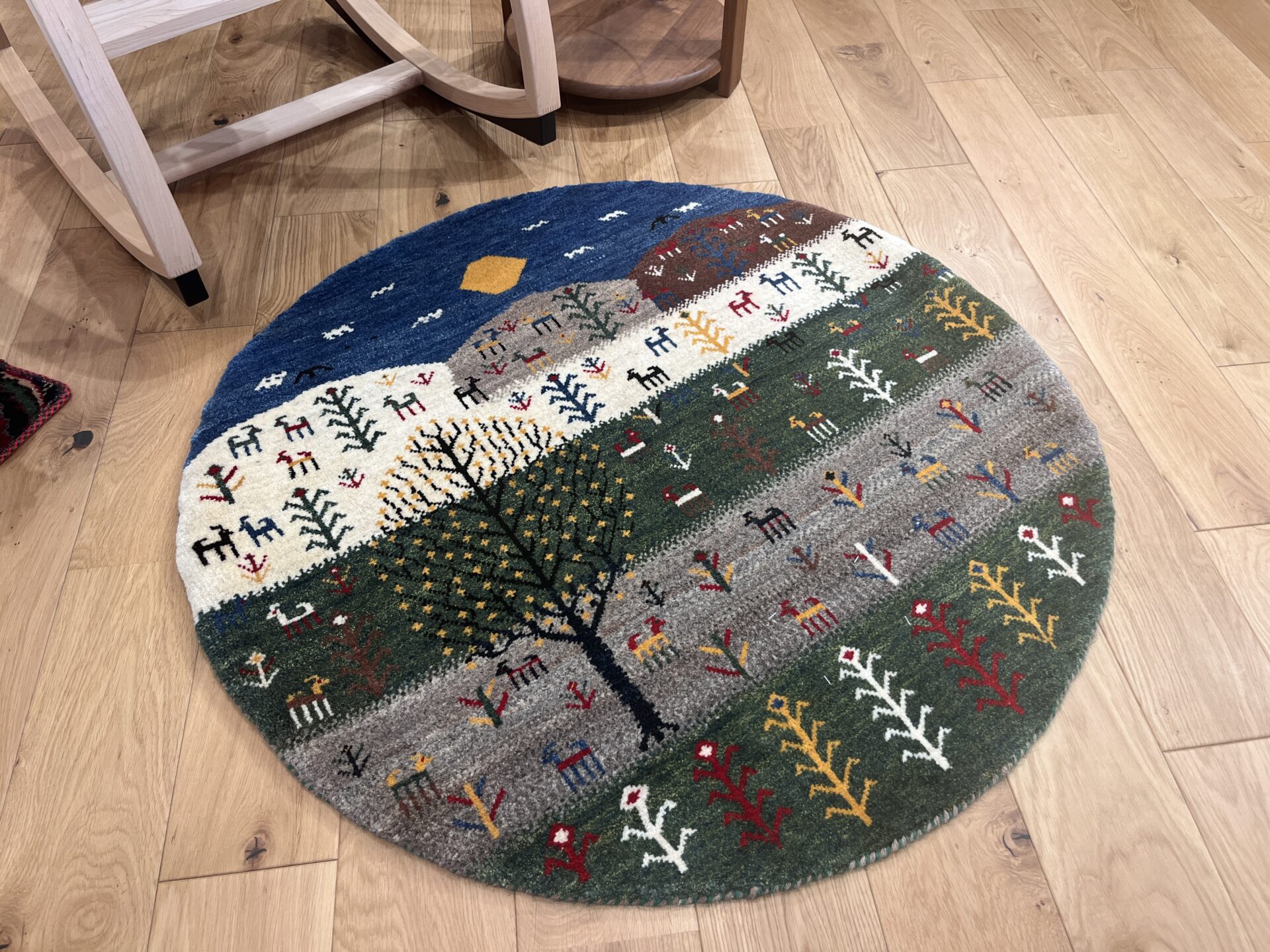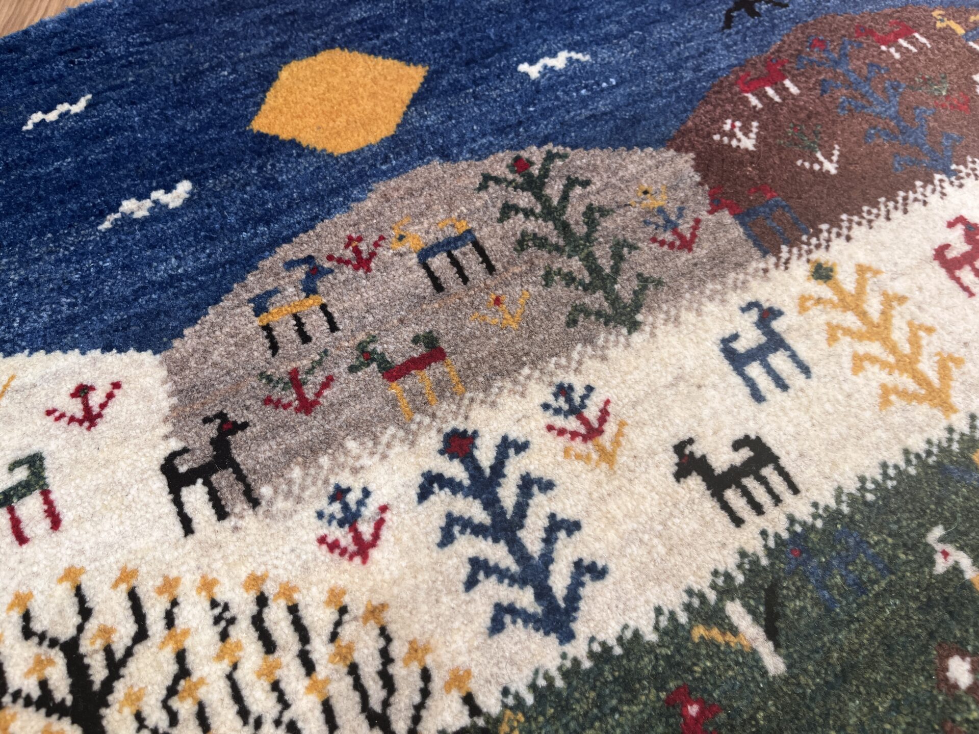 アマレ・ギャッベはゾランヴァリ社の代表的なシリーズで、しっかりとした打ち込みとコシの強い織りが特徴です。素朴で温かみのあるデザインが多く、日常使いしやすい耐久性の高さも人気の理由です。