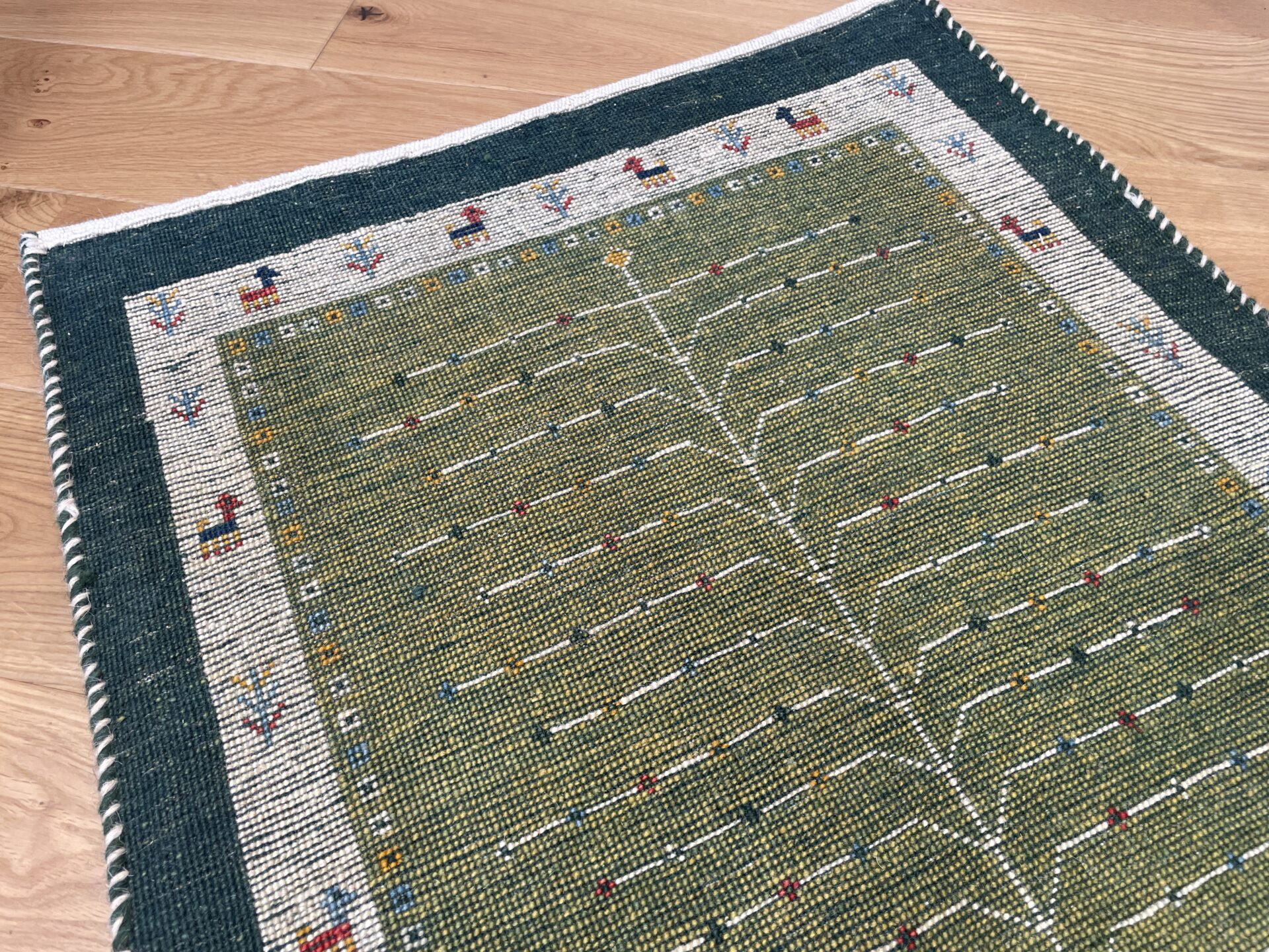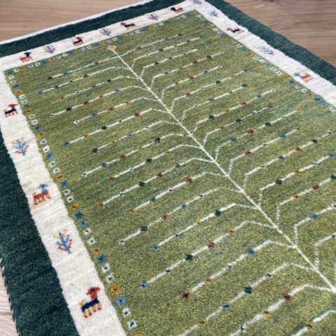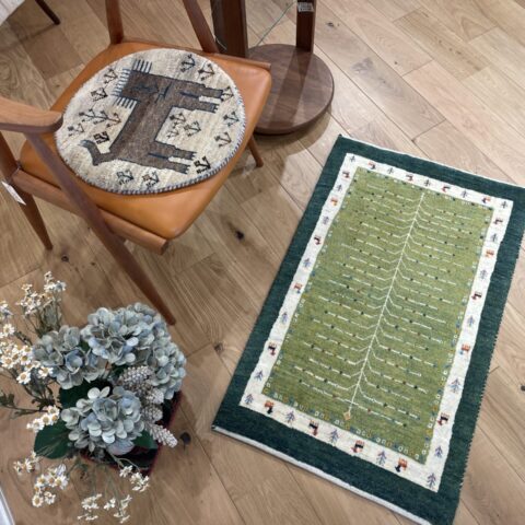 ギャッベにはしっかりした織りの「アマレ」、軽やかで繊細な「カシュクリ」、最高峰の緻密さを誇る「ルリバフ」のシリーズがあります。カシュクリ・ギャッベはアマレよりも細かな糸を使い、より緻密で滑らかな織りが特徴です。草木染めの色が美しく映え、模様の表現力も豊か。品質と軽やかさのバランスに優れ、使い心地と見た目の両方にこだわりたい方に最適な「カシュクリ ギャッベ」です。