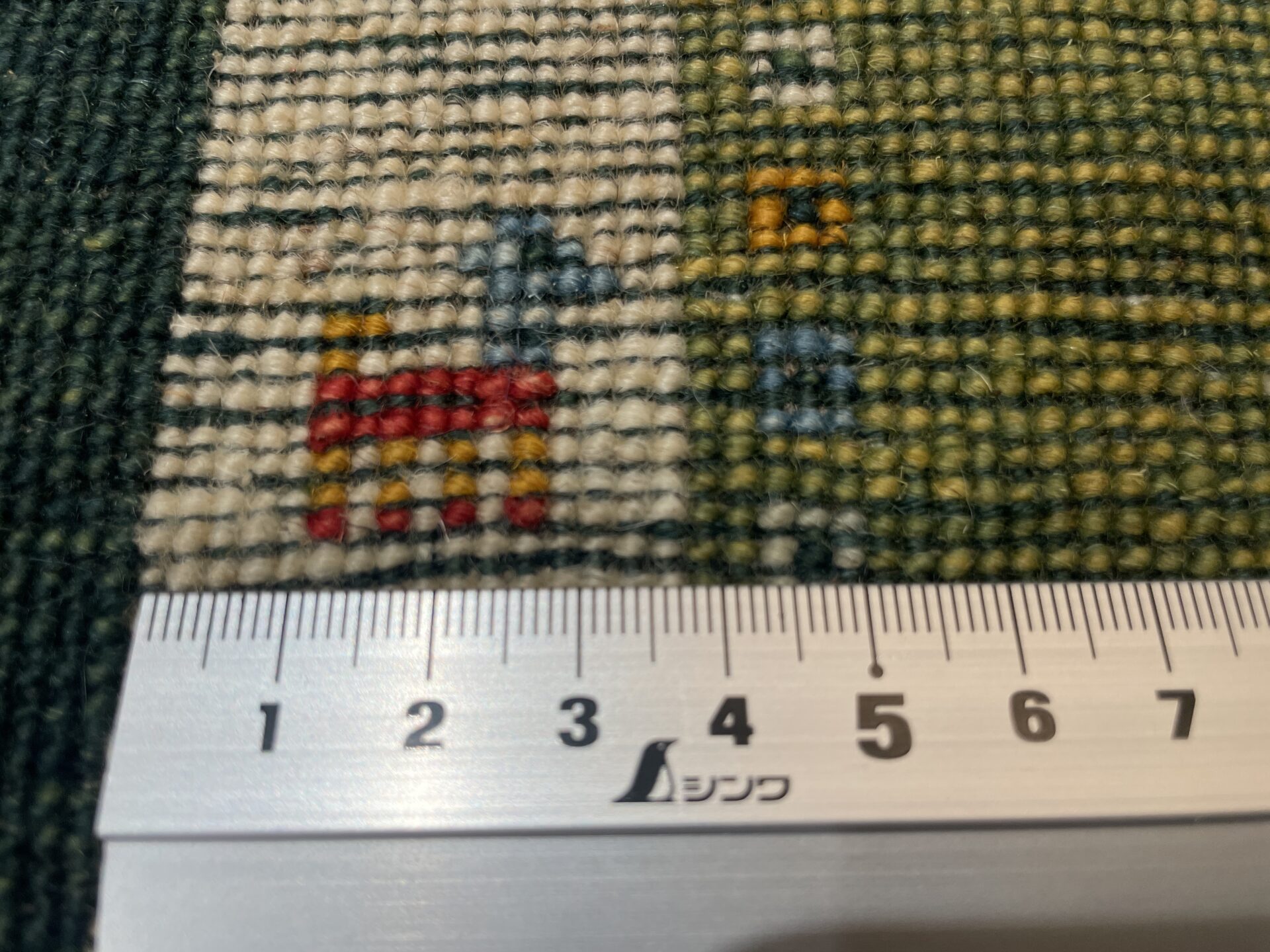 その周囲をぐるりと囲むのは、ナチュラルな 原毛の白ボーダー。中には沢山の羊たちが織り込まれています。