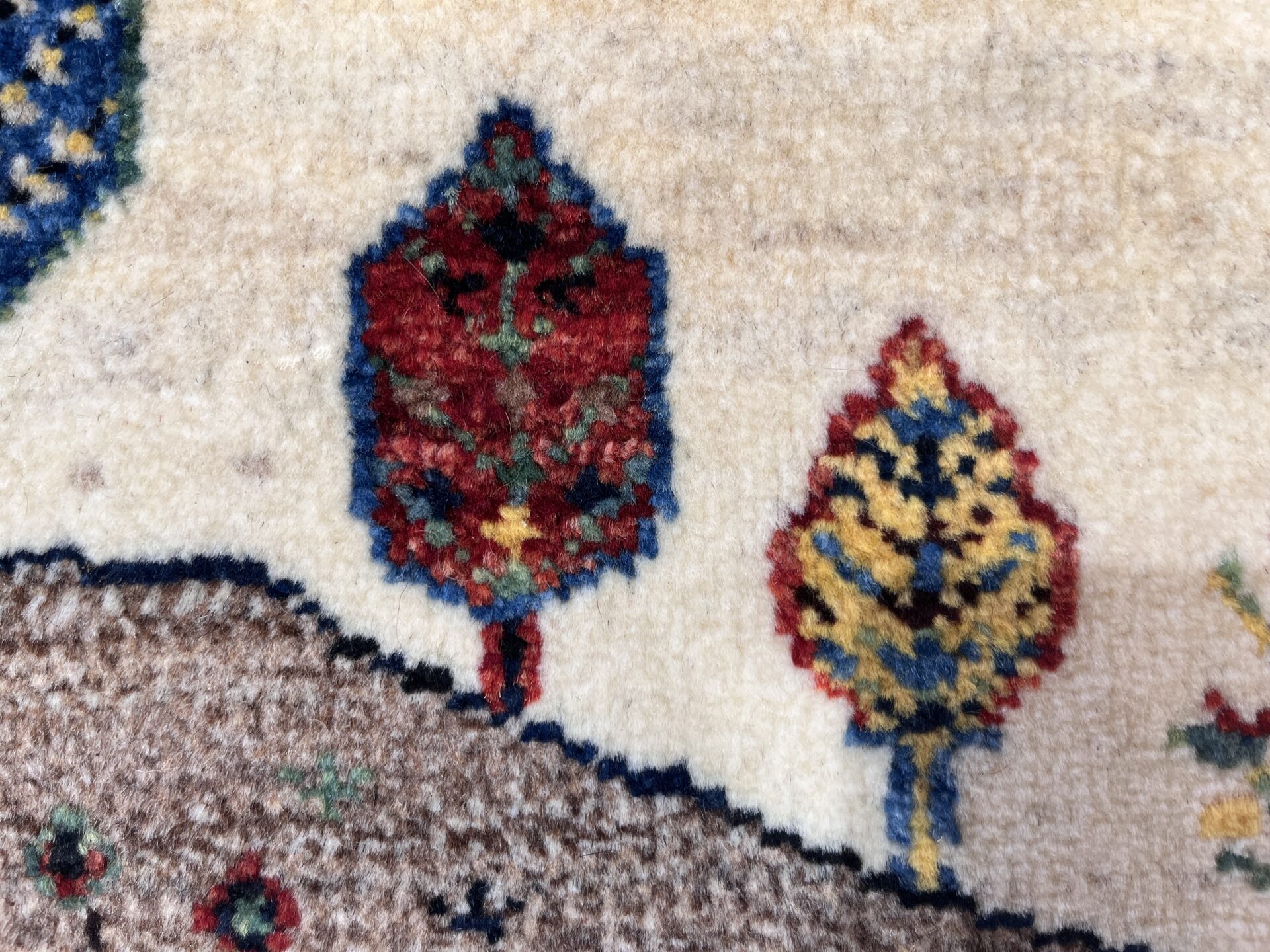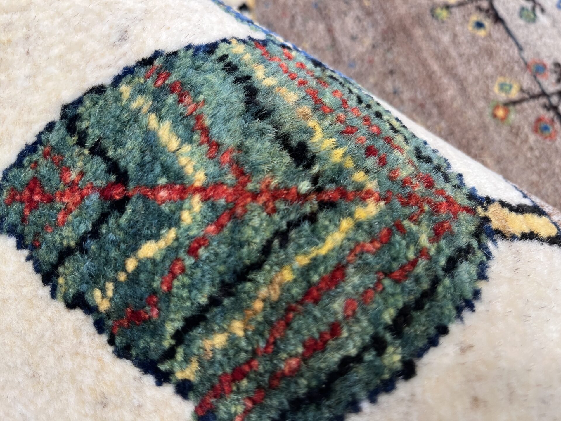 ギャッベにはしっかりした織りの「アマレ」、軽やかで繊細な「カシュクリ」、最高峰の緻密さを誇る「ルリバフ」のシリーズがあります。カシュクリ・ギャッベはアマレよりも細かな糸を使い、より緻密で滑らかな織りが特徴です。草木染めの色が美しく映え、模様の表現力も豊か。品質と軽やかさのバランスに優れ、使い心地と見た目の両方にこだわりたい方に最適な「カシュクリ ギャッベ」です。