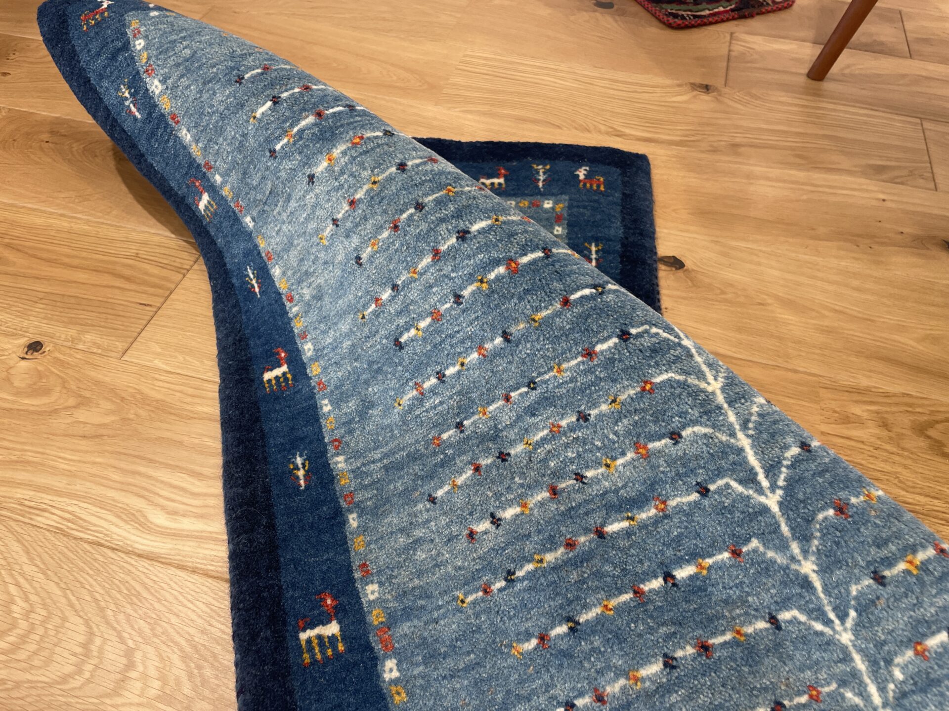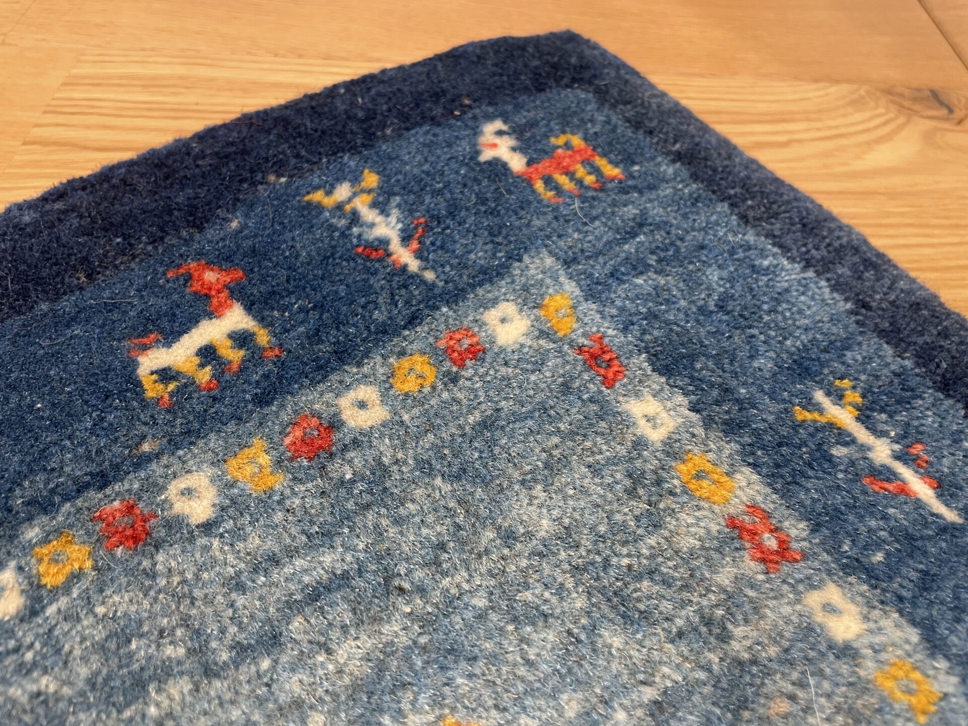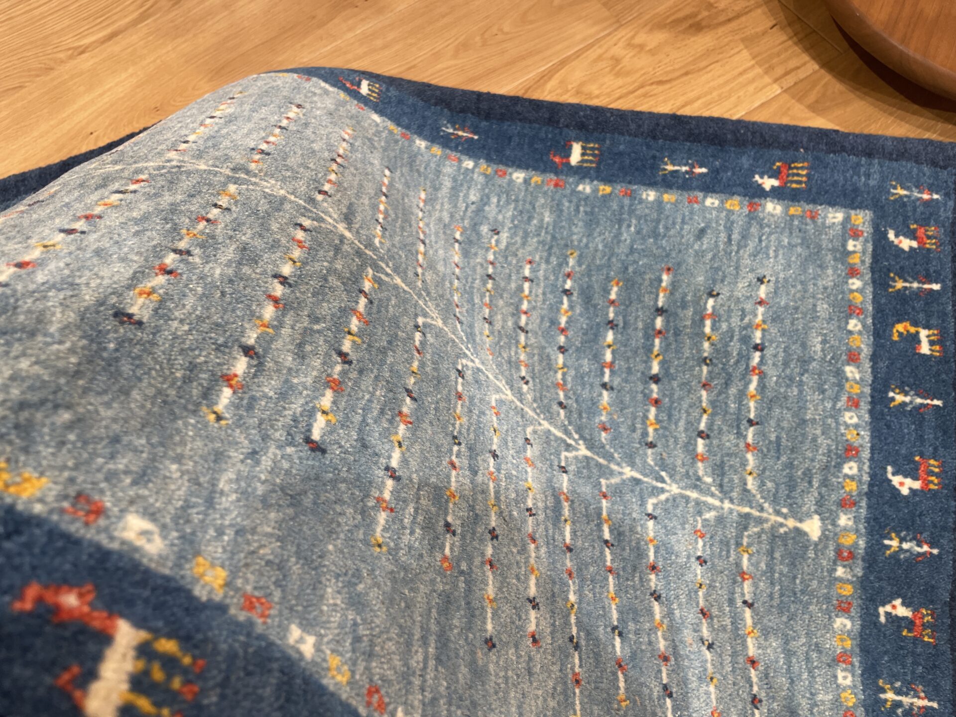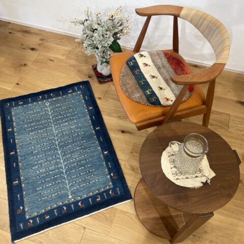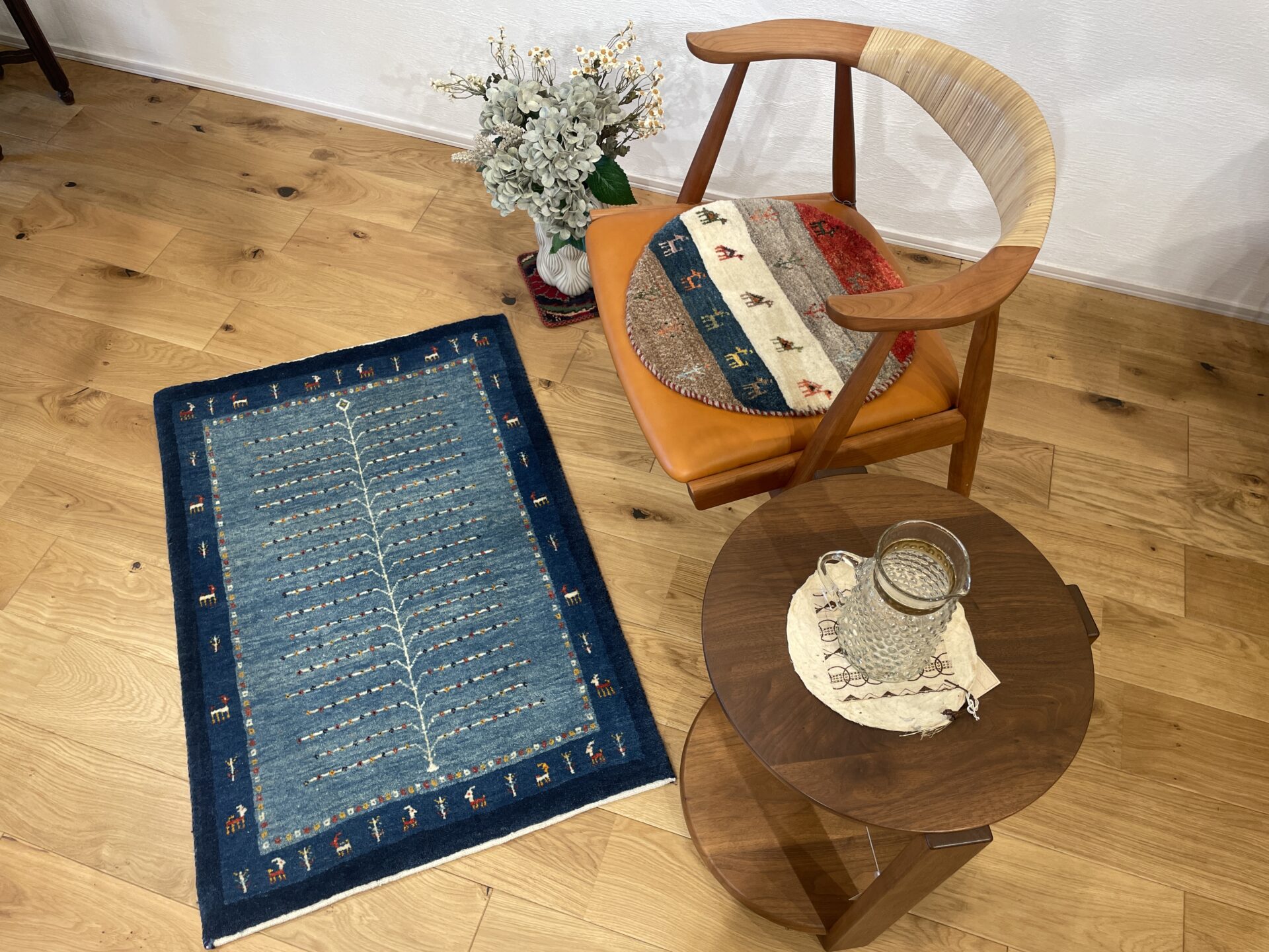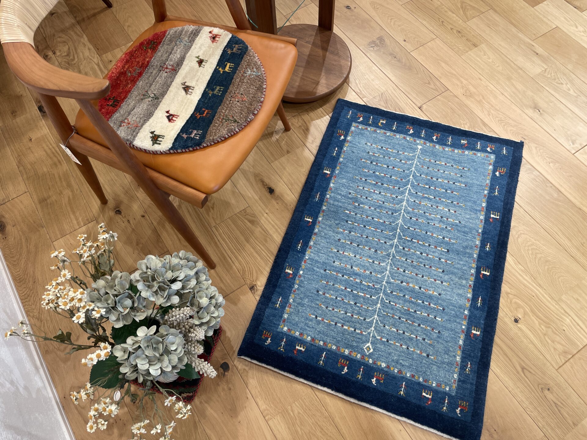 ギャッベには、しっかりした織りの「アマレ」、軽やかで繊細な「カシュクリ」、最高峰の緻密さを誇る「ルリバフ」のシリーズがあります。カシュクリ・ギャッベはアマレよりも細かな糸を使い、より緻密で滑らかな織りが特徴です。草木染めの色が美しく映え、模様の表現力も豊か。品質と軽やかさのバランスに優れ、使い心地と見た目の両方にこだわりたい方に最適な「カシュクリ ギャッベ」です。