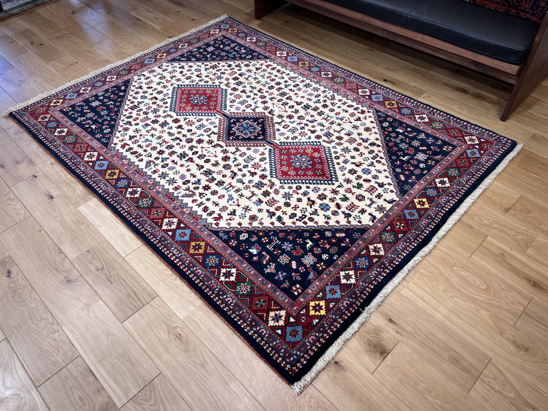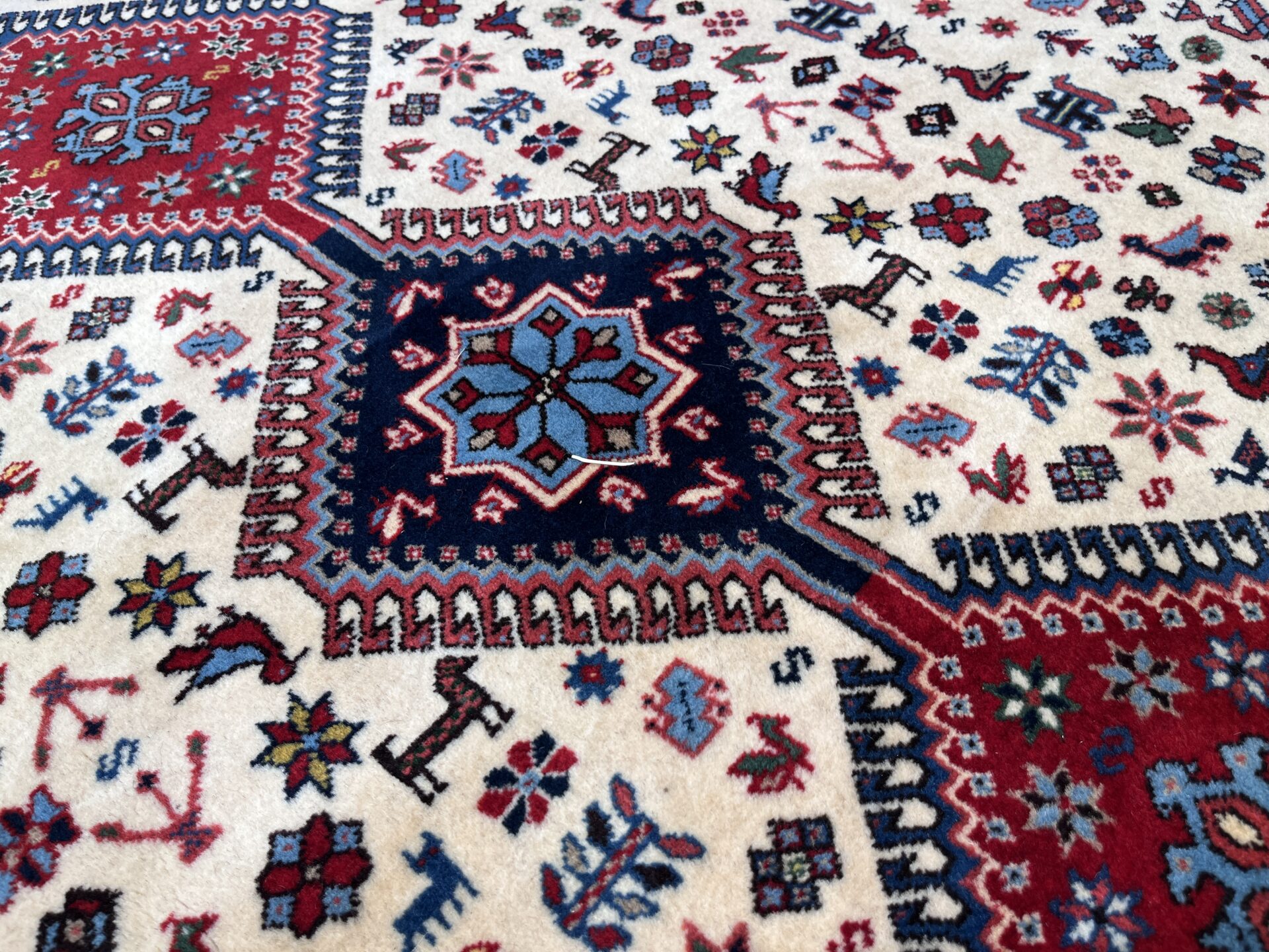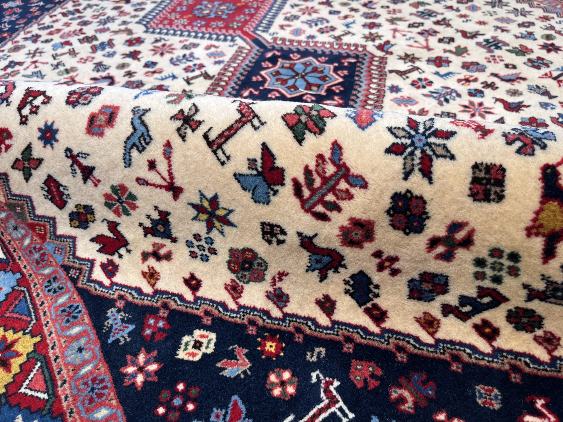 イラン南部・シラーズ地方のヤラメ族による手織り絨毯。