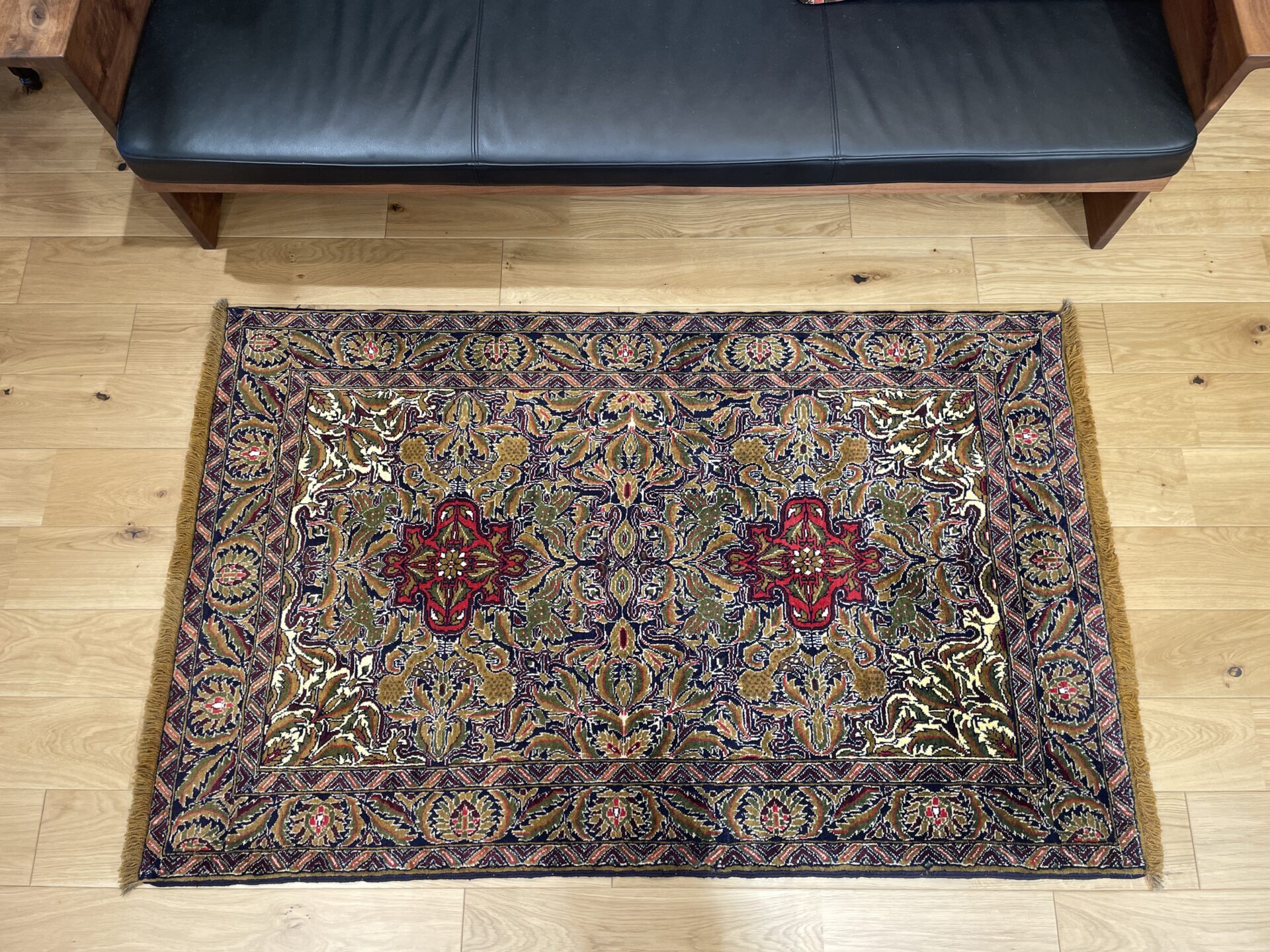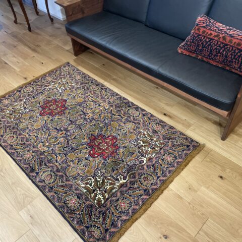 イラン東部のバルーチ族による、独創性あふれるトライバルラグ。