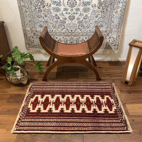 コンパクトなサイズ感で扱いやすく、玄関や書斎、チェアの足元など、限られたスペースにも気軽に取り入れられます。小ぶりながらも存在感があり、敷く場所を選ばない万能な一枚です。