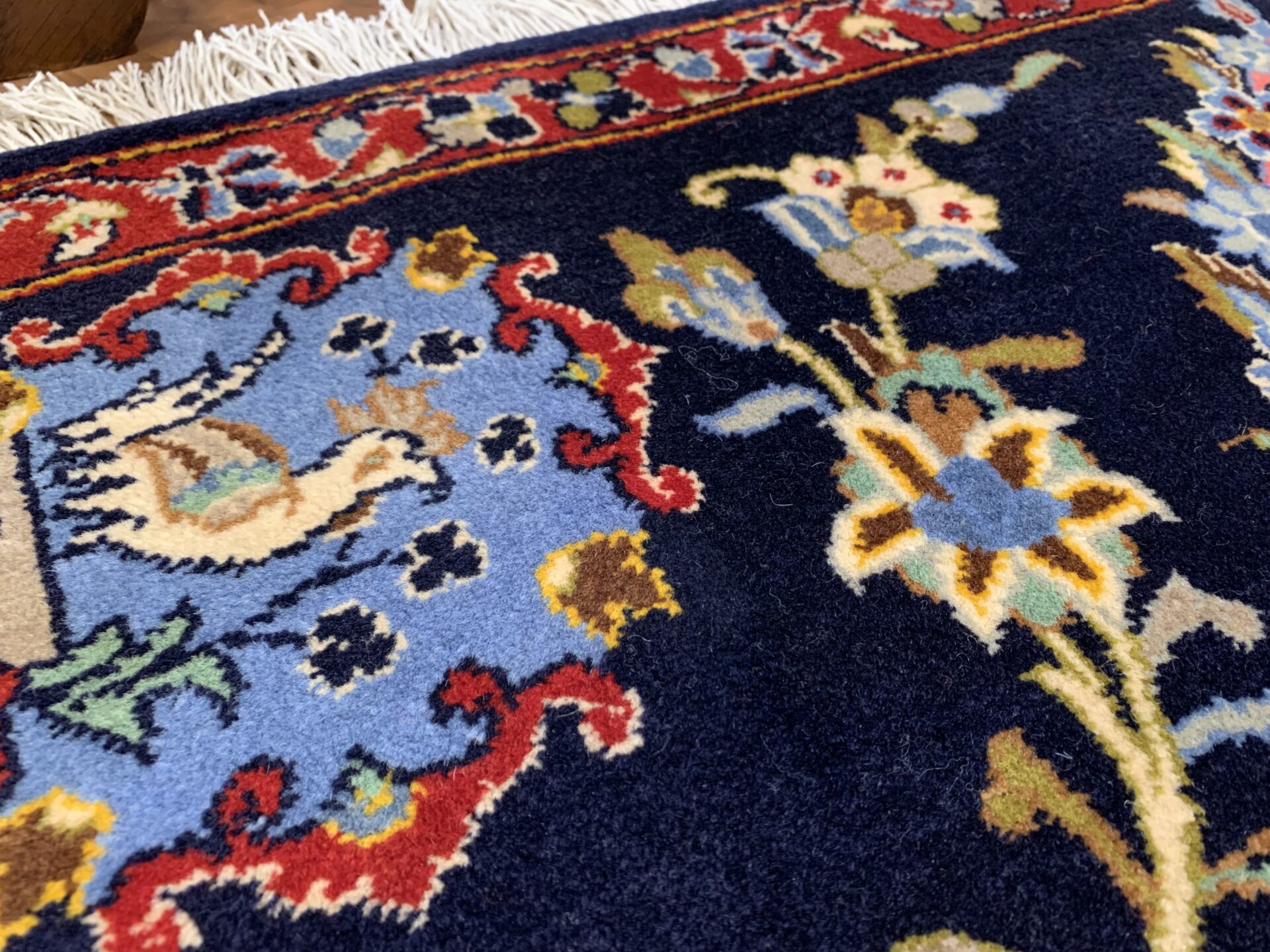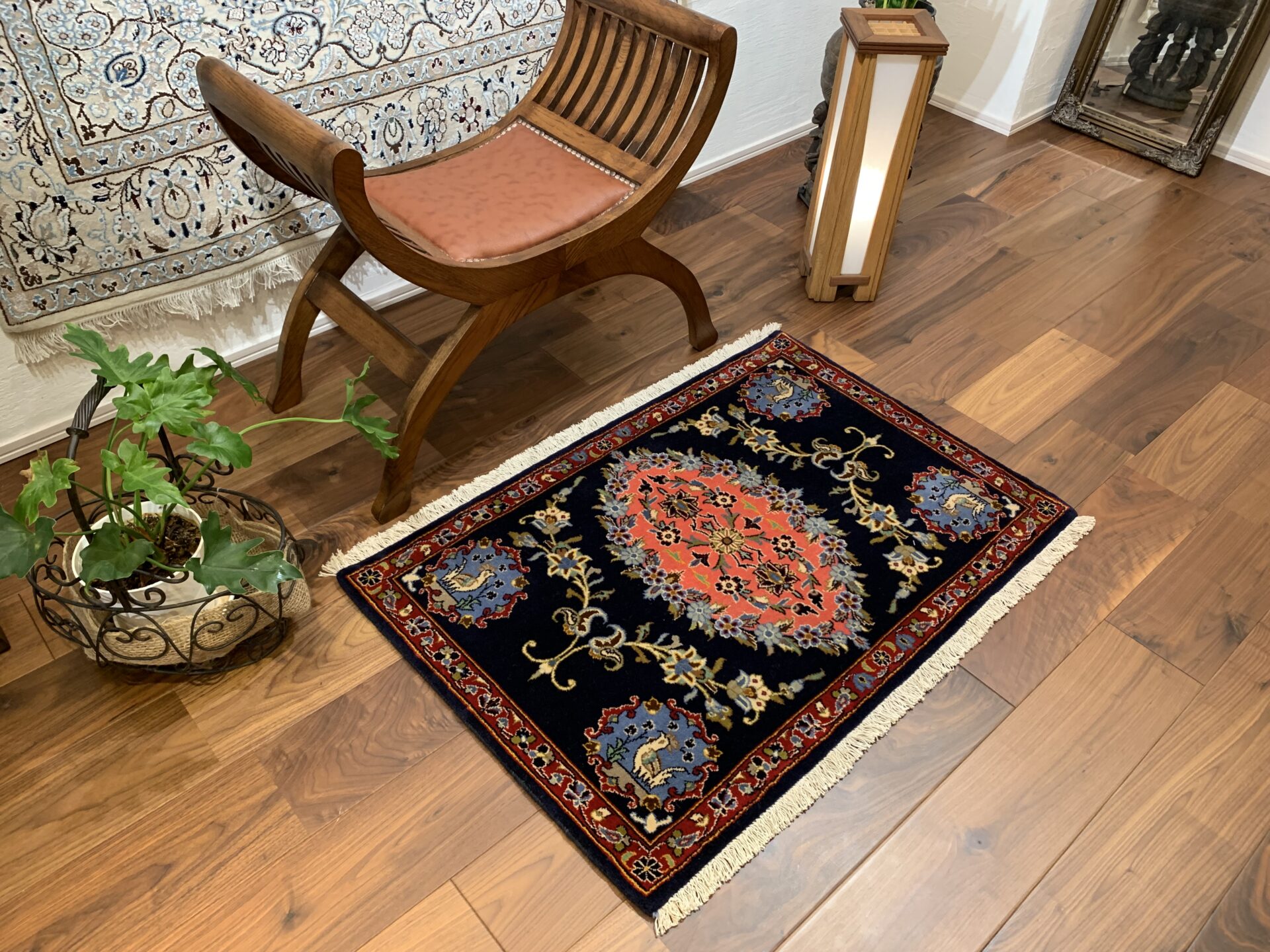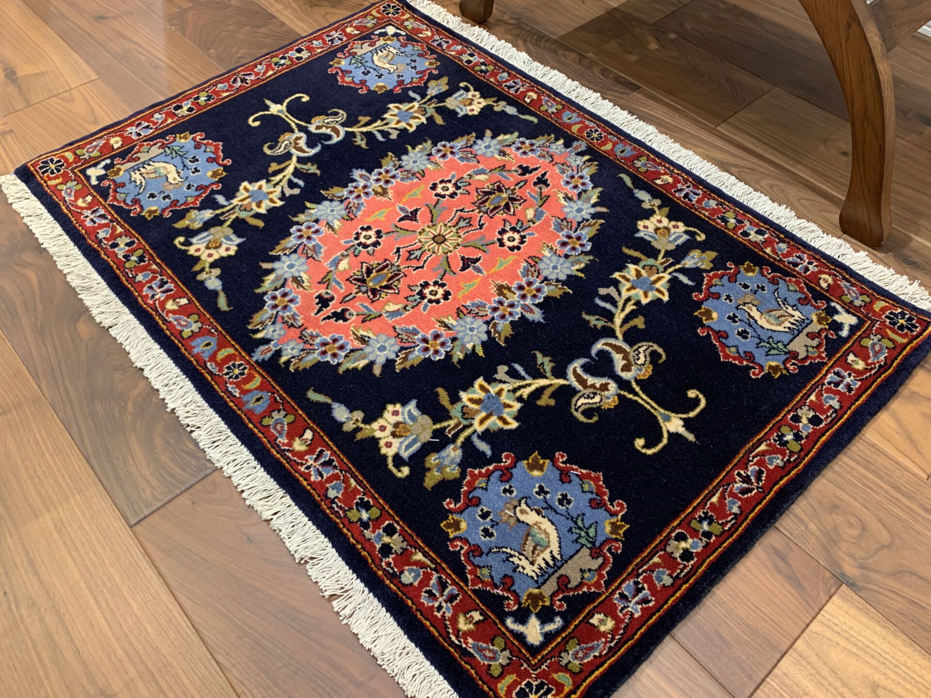四隅には、隅に鳥と花のモチーフが織り込まれているのが大きな特徴。