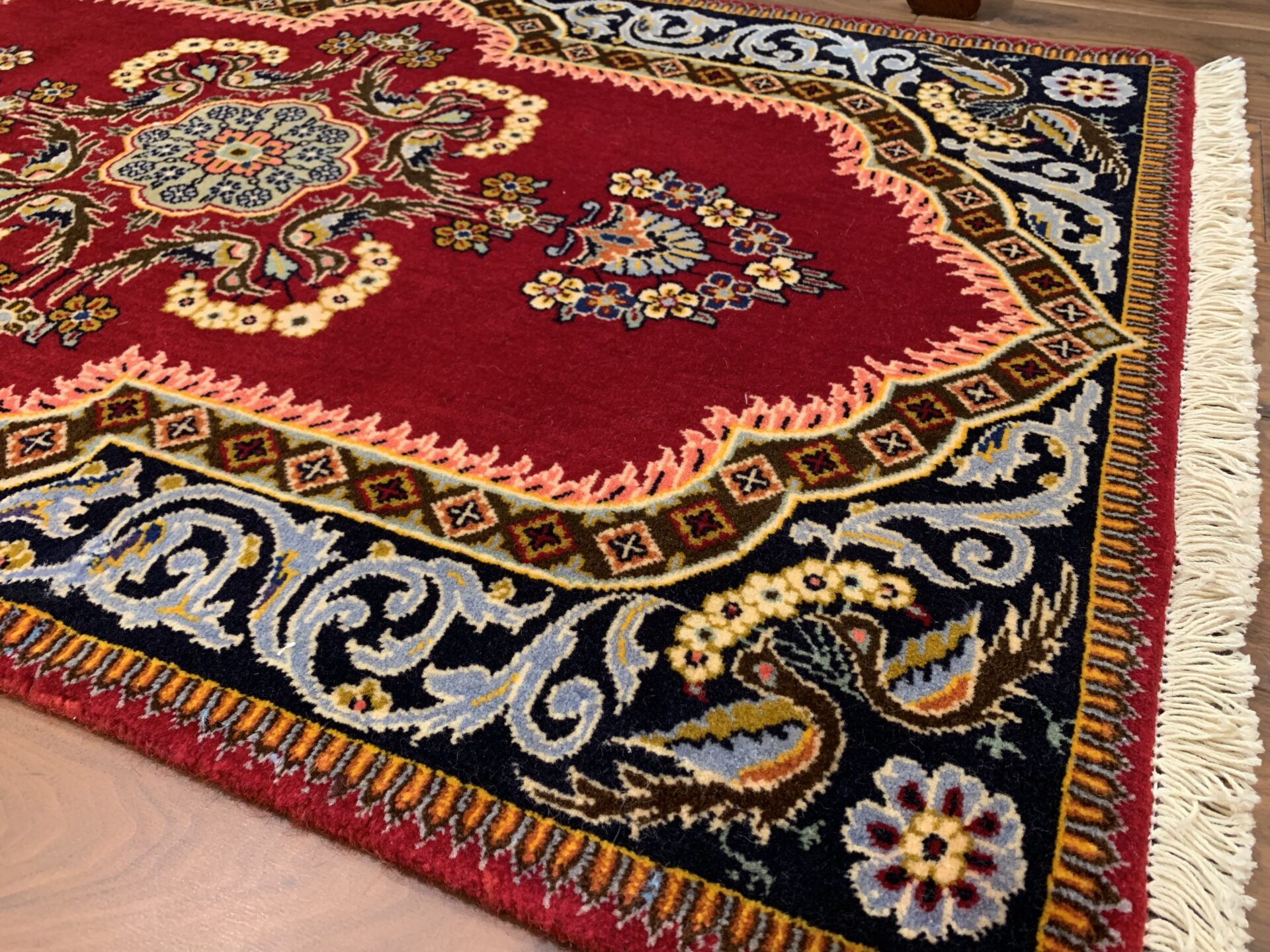 こちらは、イランを代表する絨毯の名産地、カシャーンで織られたペルシャ絨毯。歴史ある宮廷様式の伝統を受け継いだ、クラシカルな美と気品が光る一枚です。