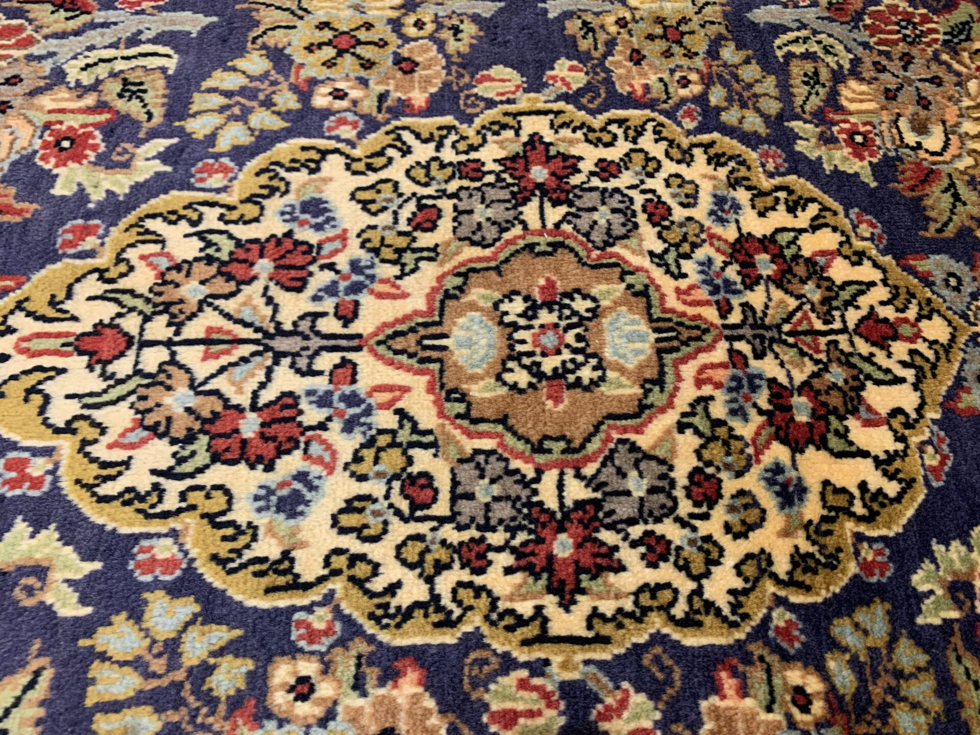 中央には、細密な花々で構成されたメダリオンモチーフ。