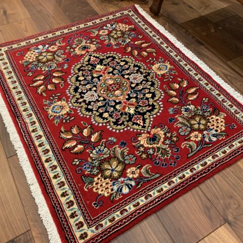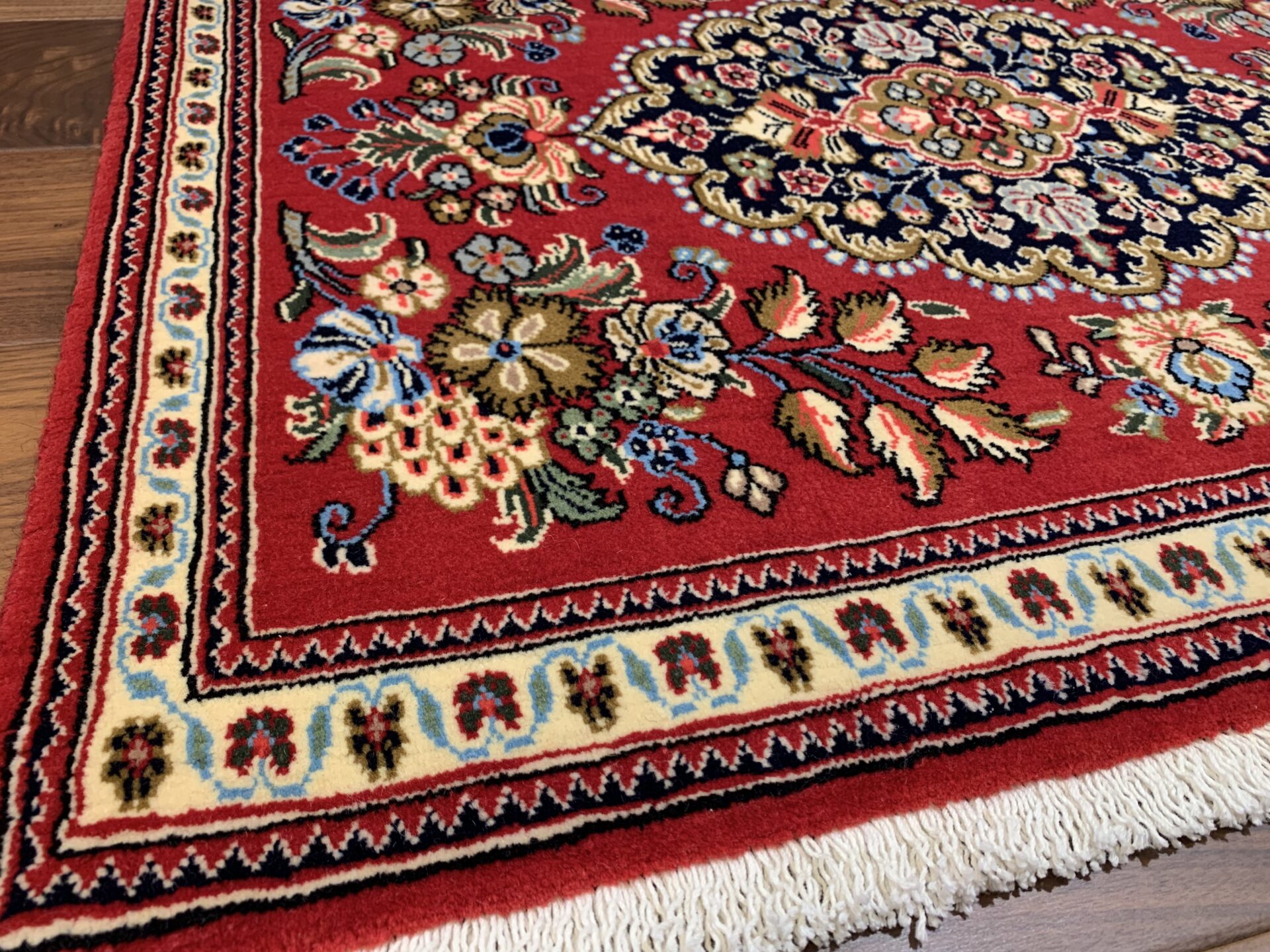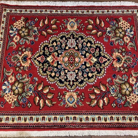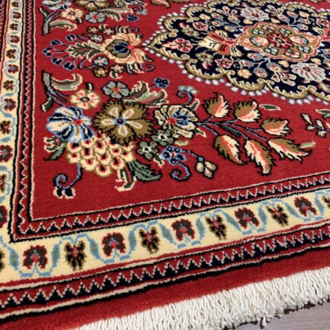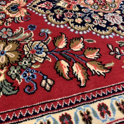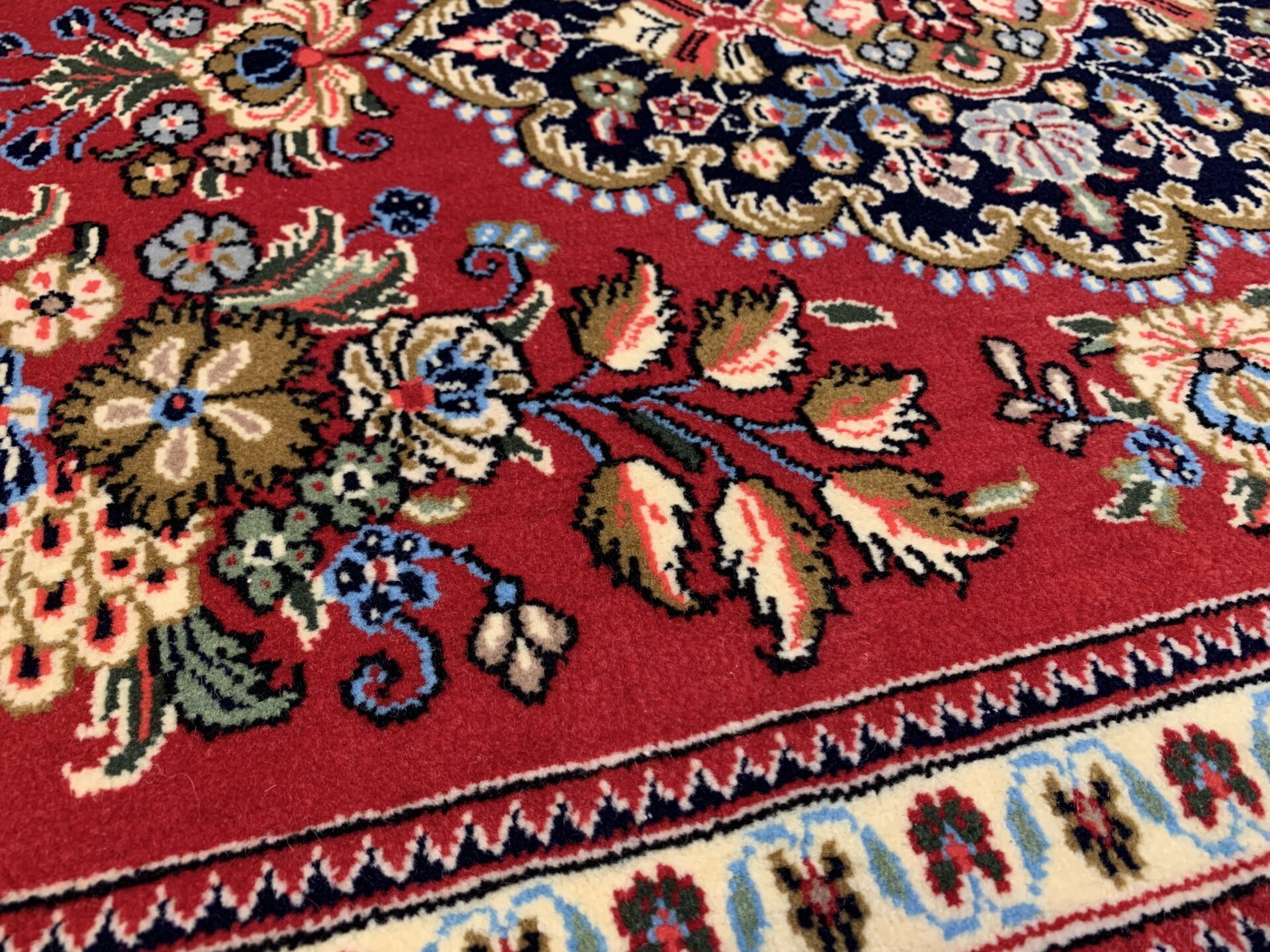 イラン・クム産のペルシャ絨毯。たて糸に綿を使用したしっかりとした織り上がりと軽やかな風合いが魅力です。
