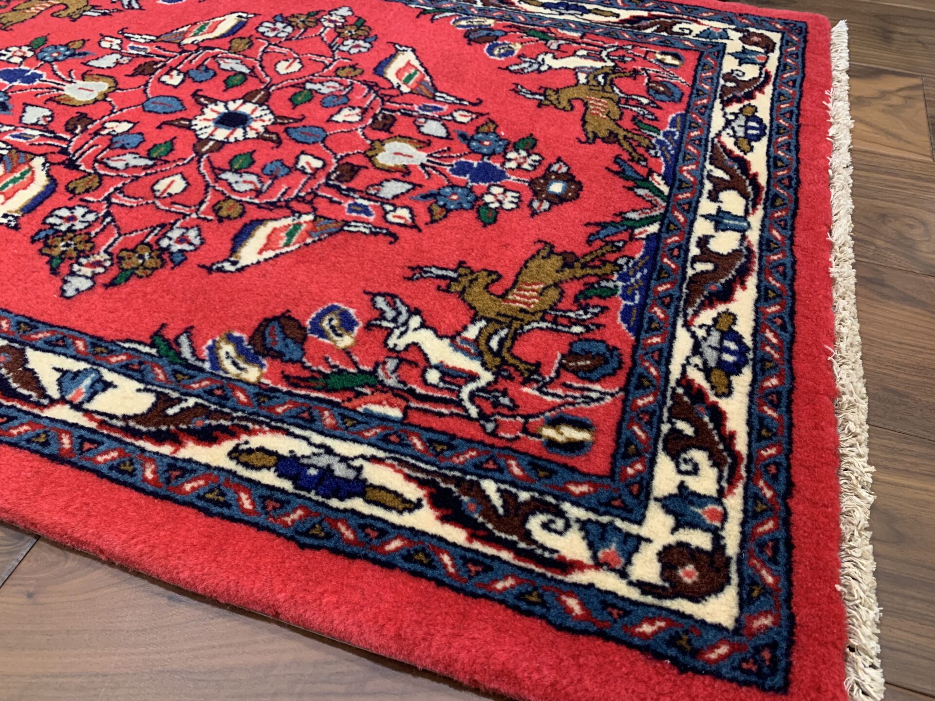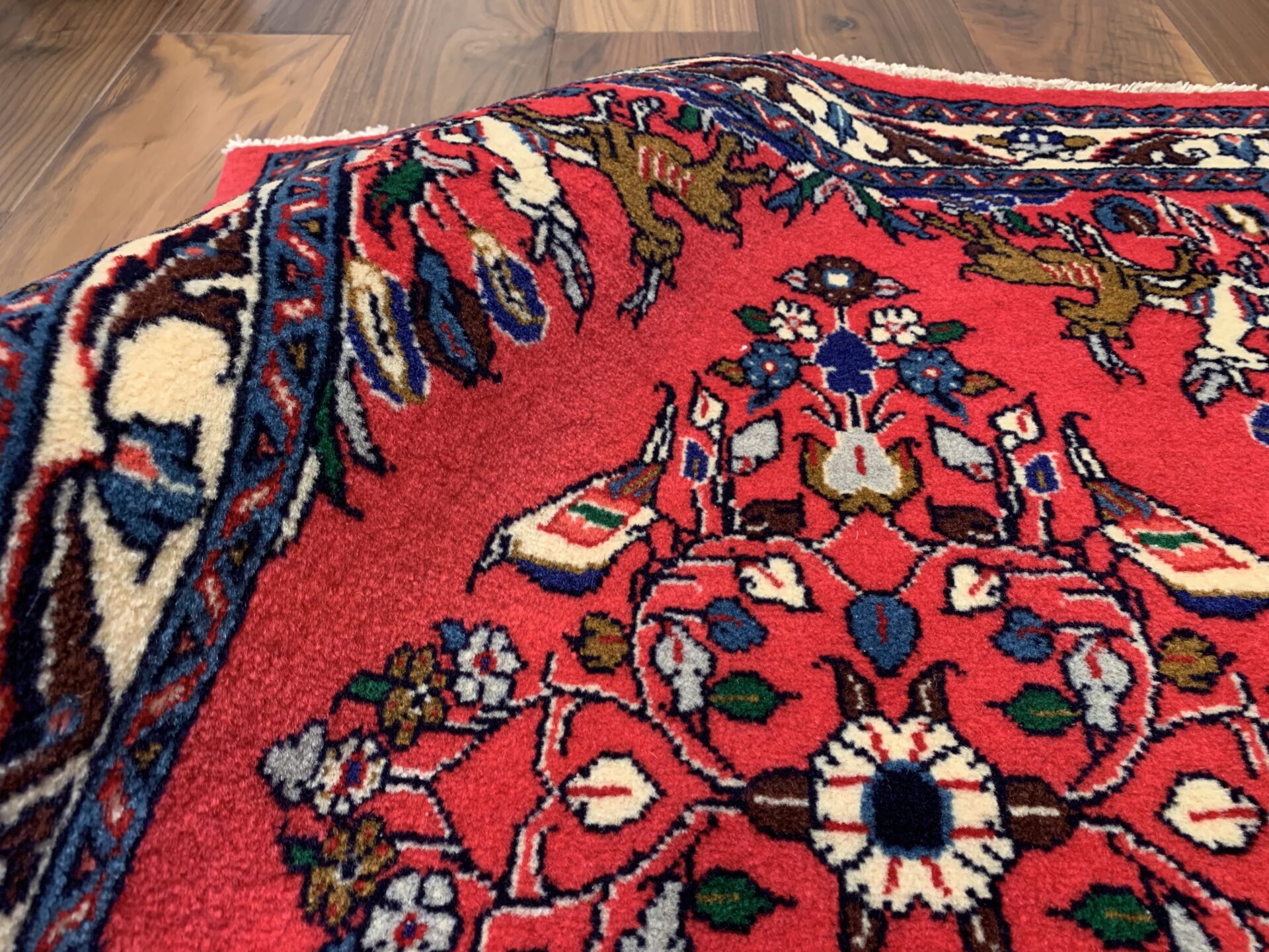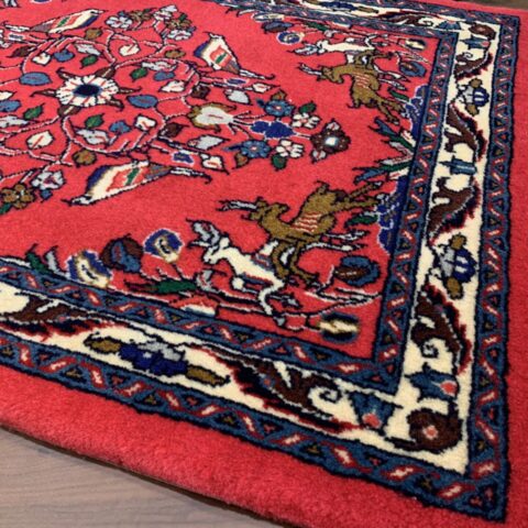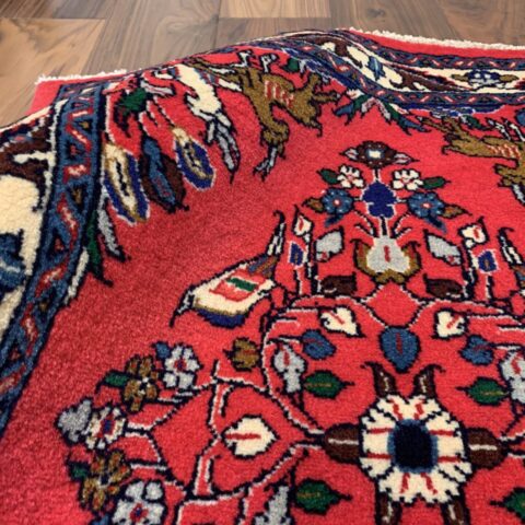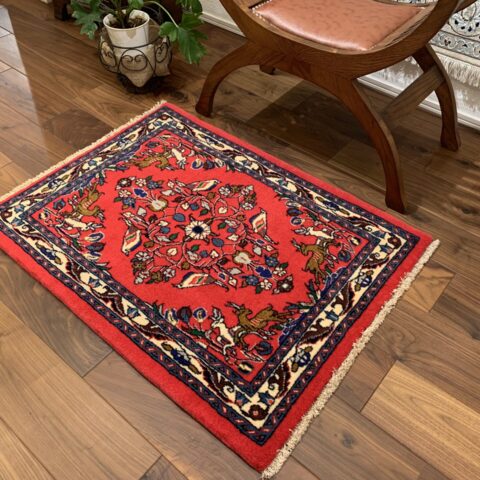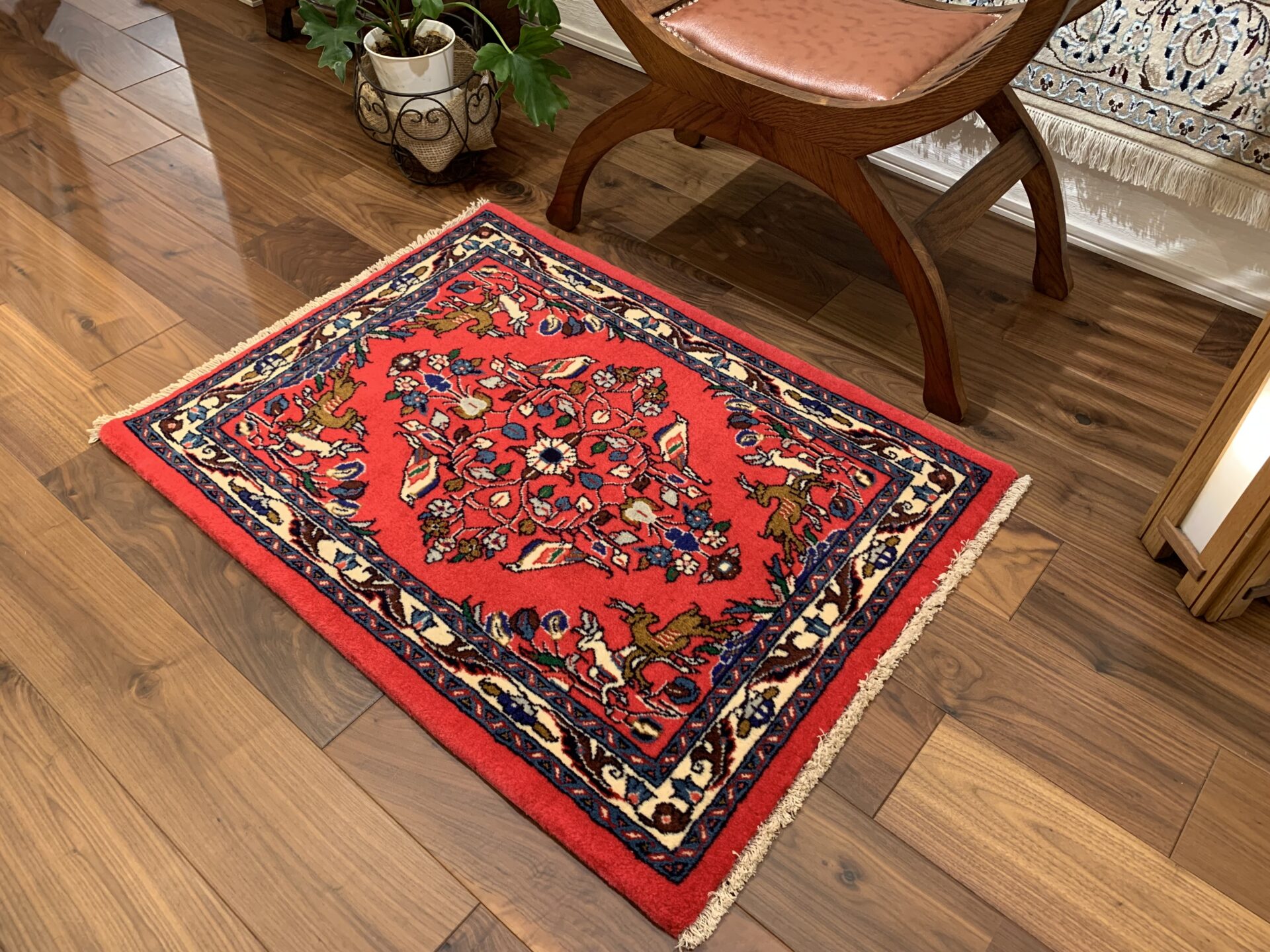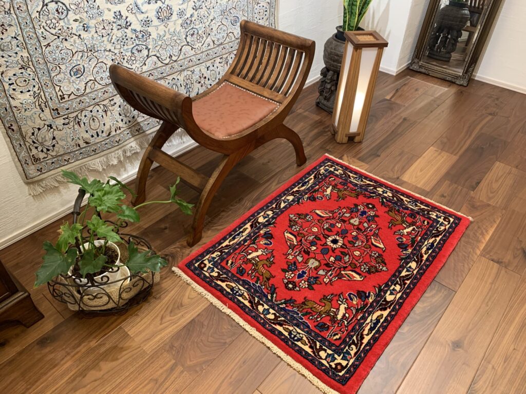 こちらは、イラン西部・ハマダン地方のジョーザン村で織られたペルシャ絨毯。この地域の絨毯は、しっかりとしたウールの厚みと素朴な色合い、そしてどこか親しみやすい花柄モチーフが特徴です。