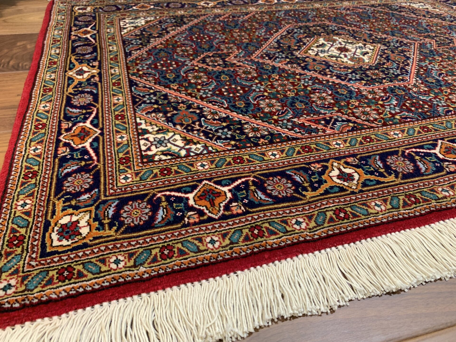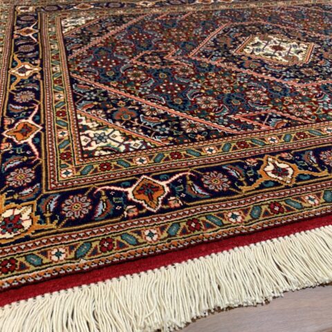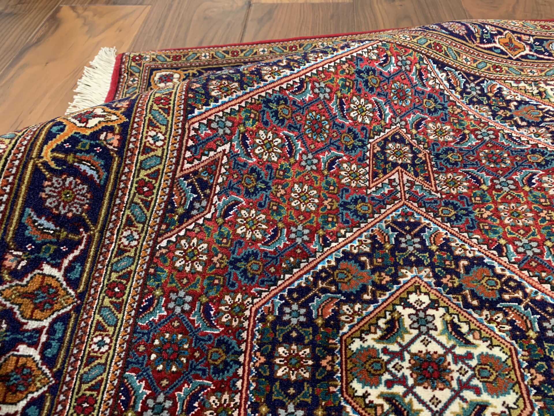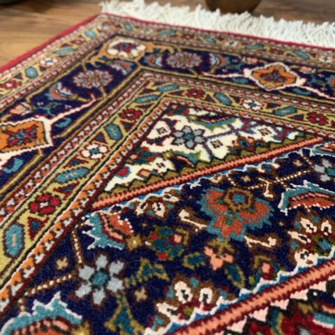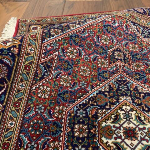 こちらは、イラン北西部の古都 タブリーズで織られた、ペルシャ絨毯の中でも最高峰と称される「タブリーズ絨毯」。非常に高い織密度と、精巧な図案構成、そして絵画のように美しい色彩の調和が魅力の一枚です。