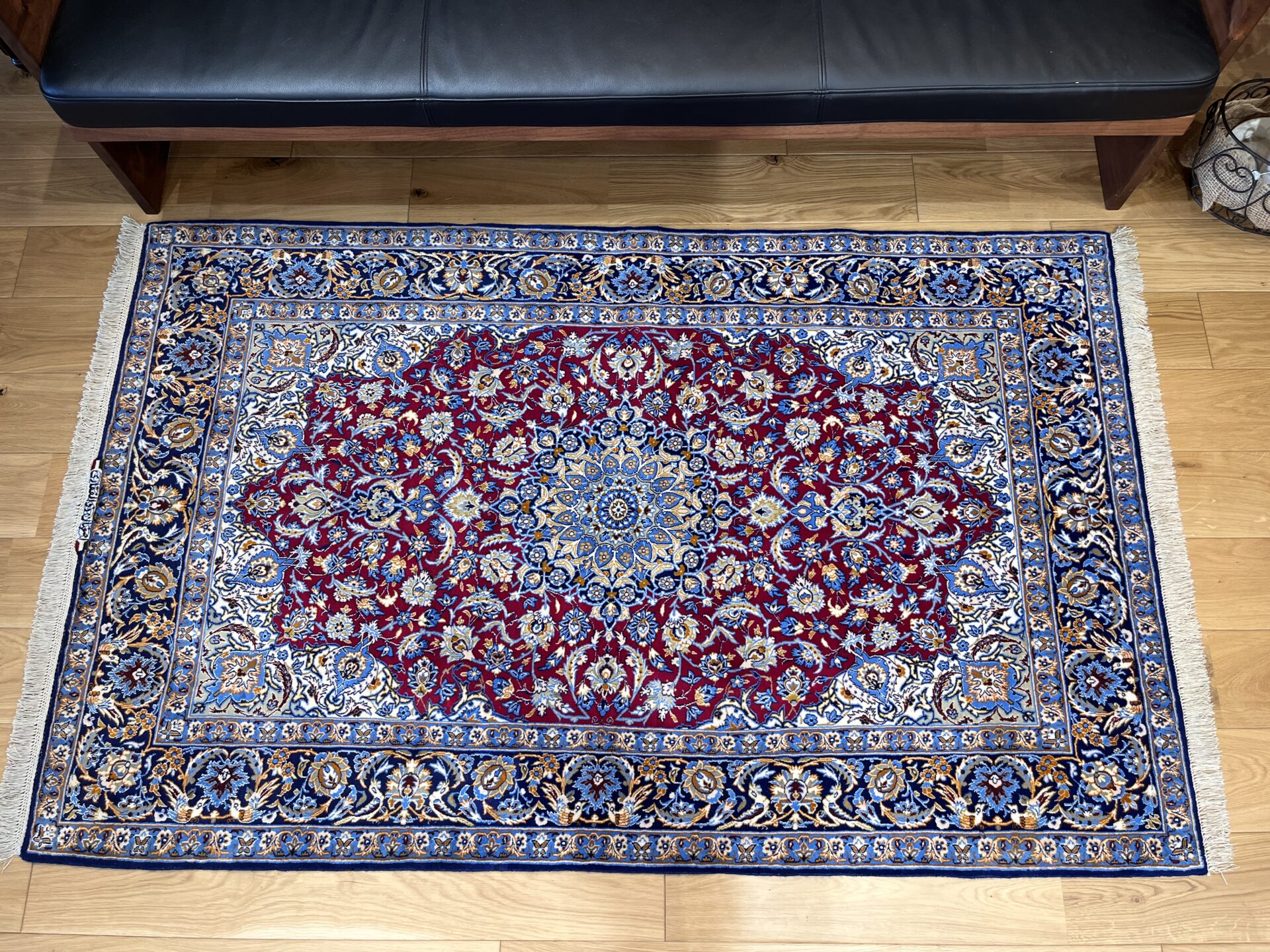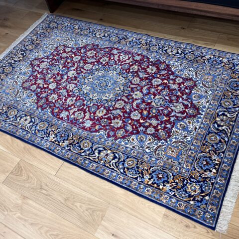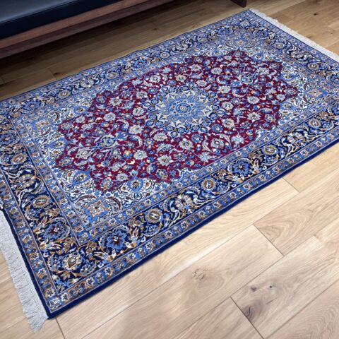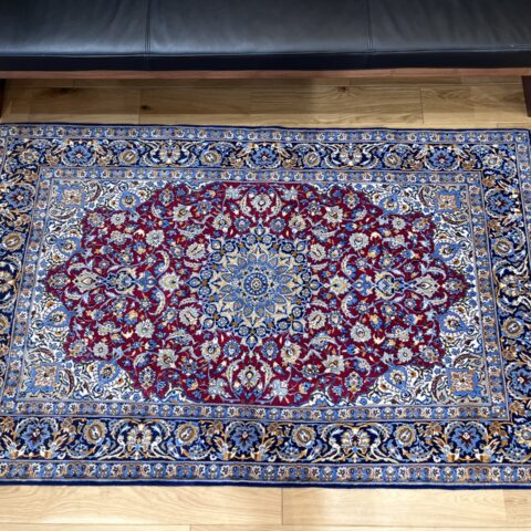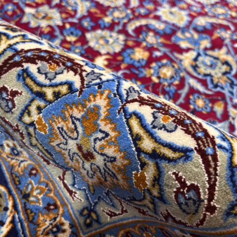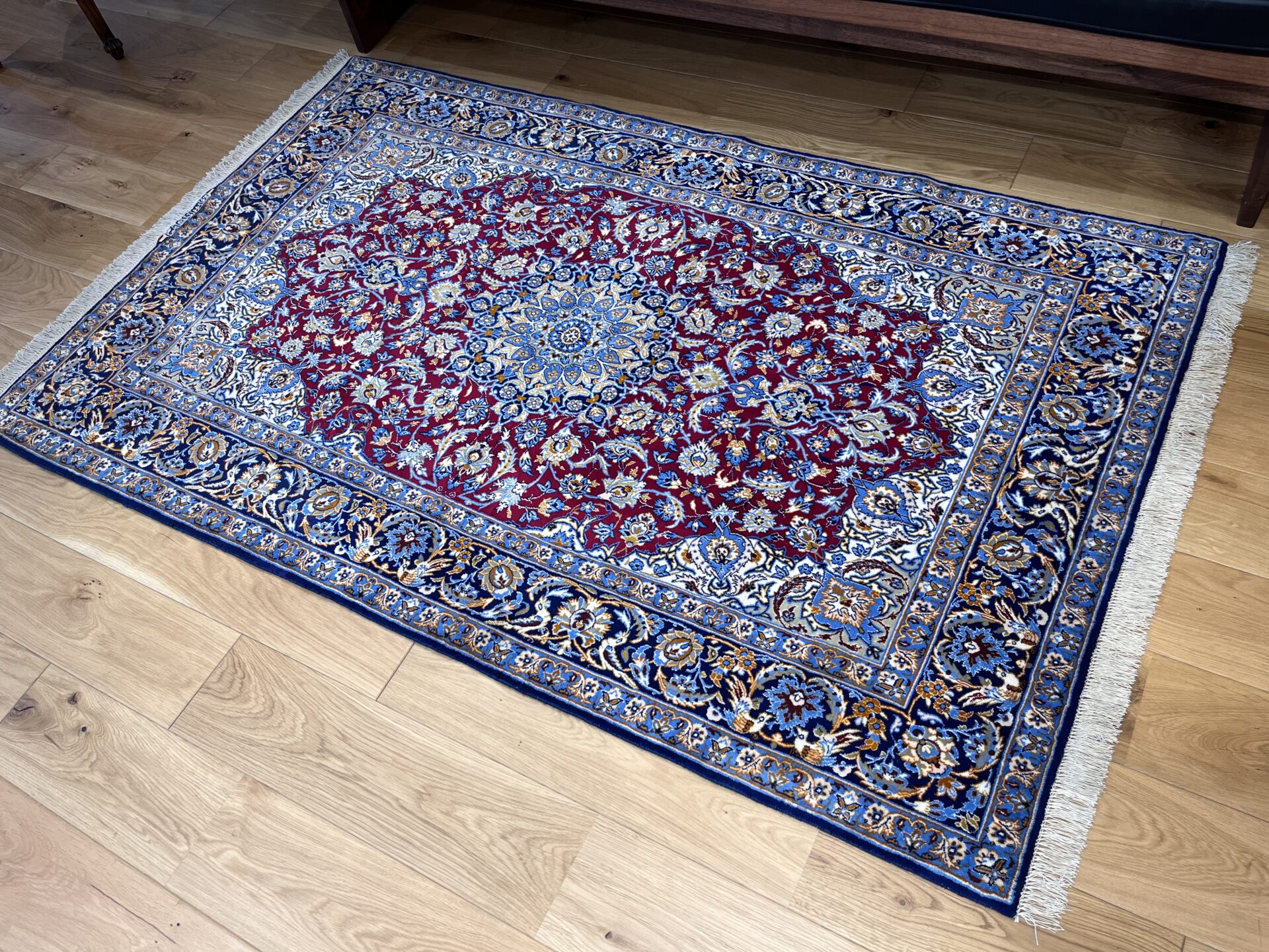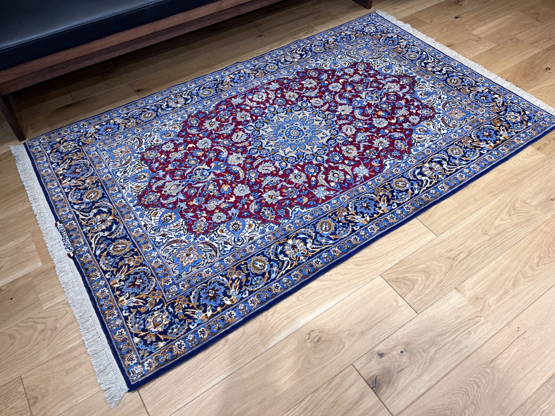 イラン・イスファハーンで織り上げられた本作は、168×107cmという幅広い空間に調和するサイズ感ながら、まるで芸術作品のような緻密な織りと鮮やかな色彩が際立つ逸品です。