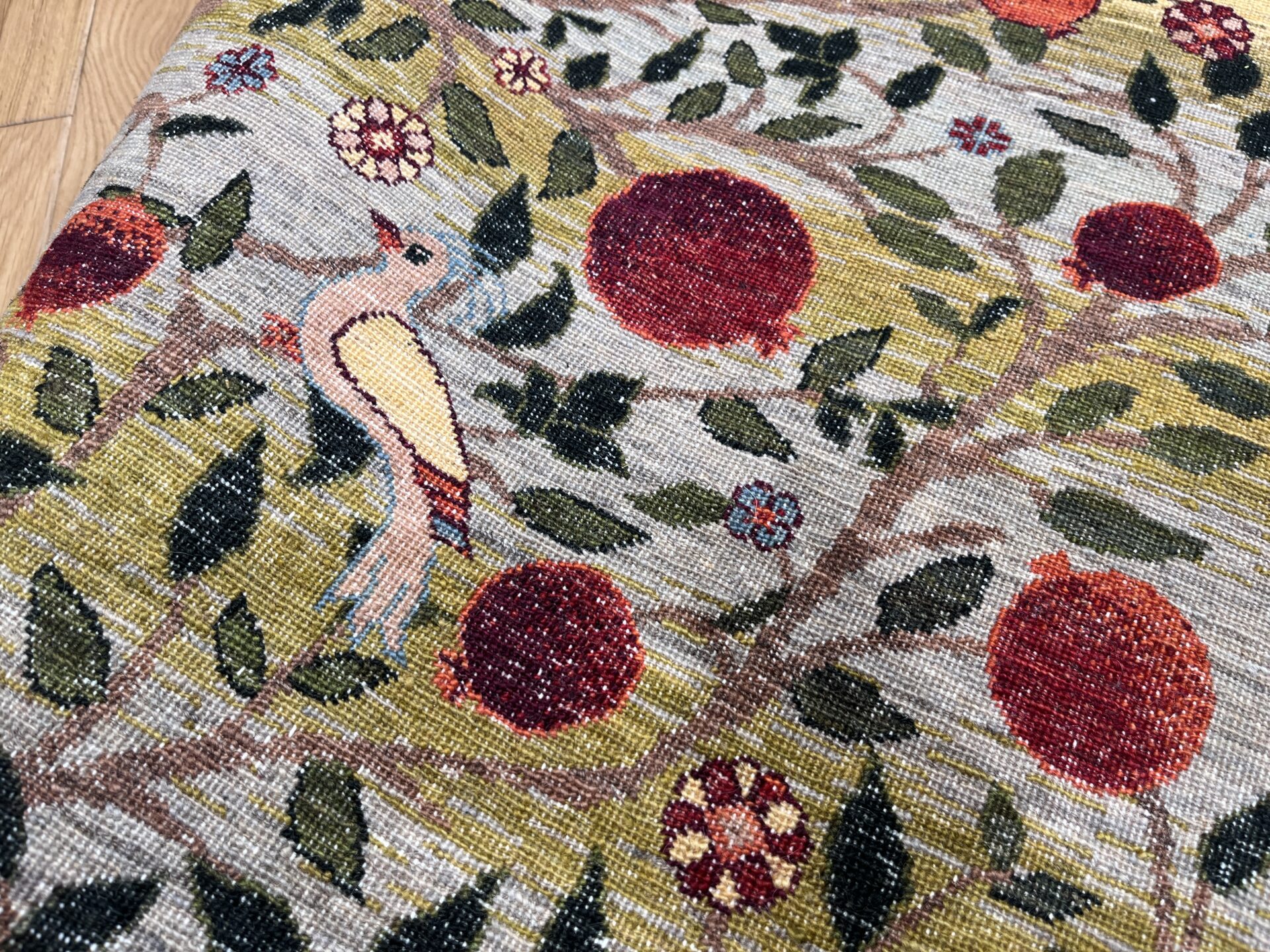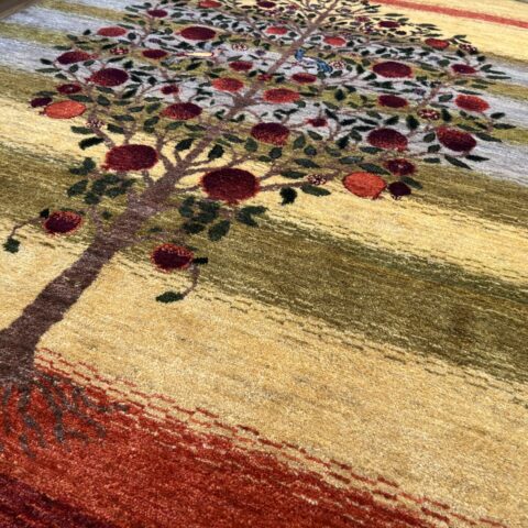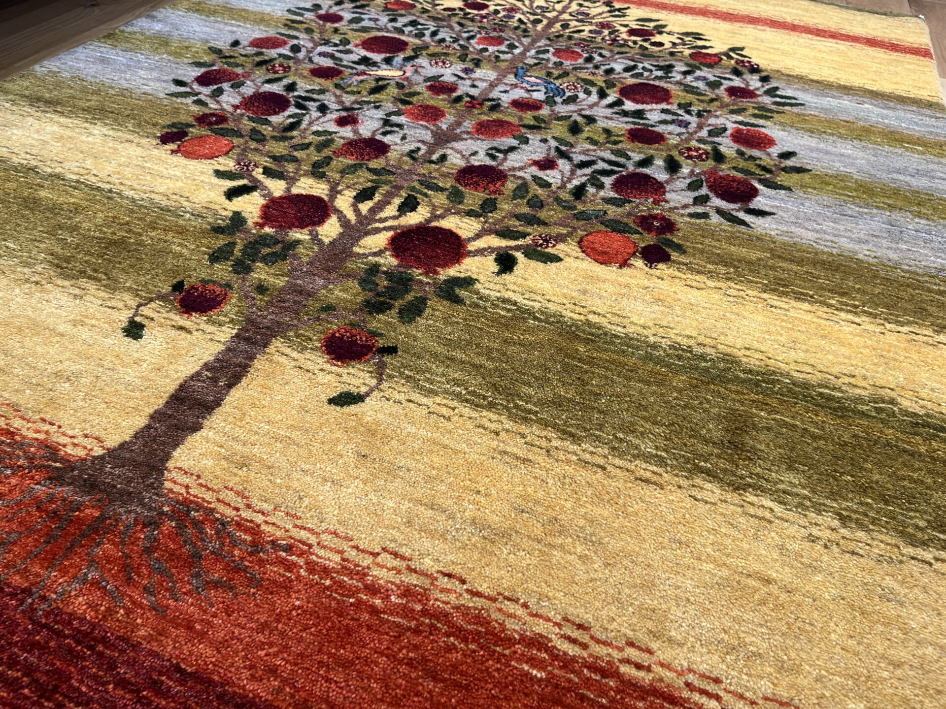 中央にはザクロの樹が描かれ、大小の実がたわわに実っています。
